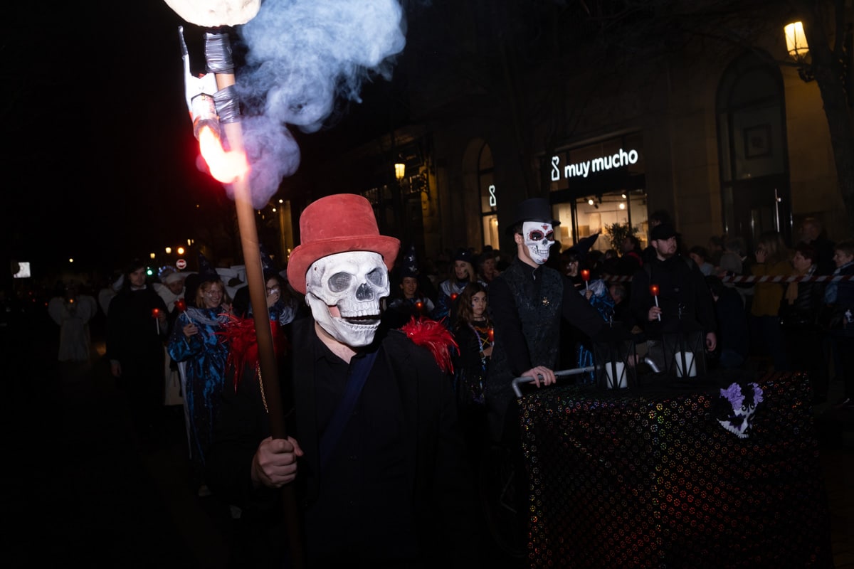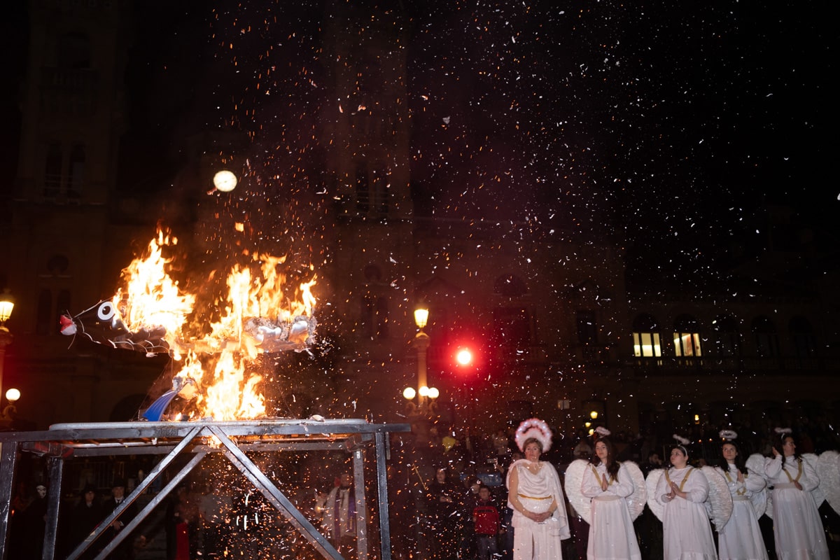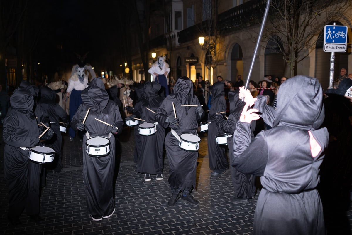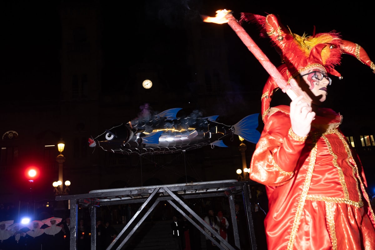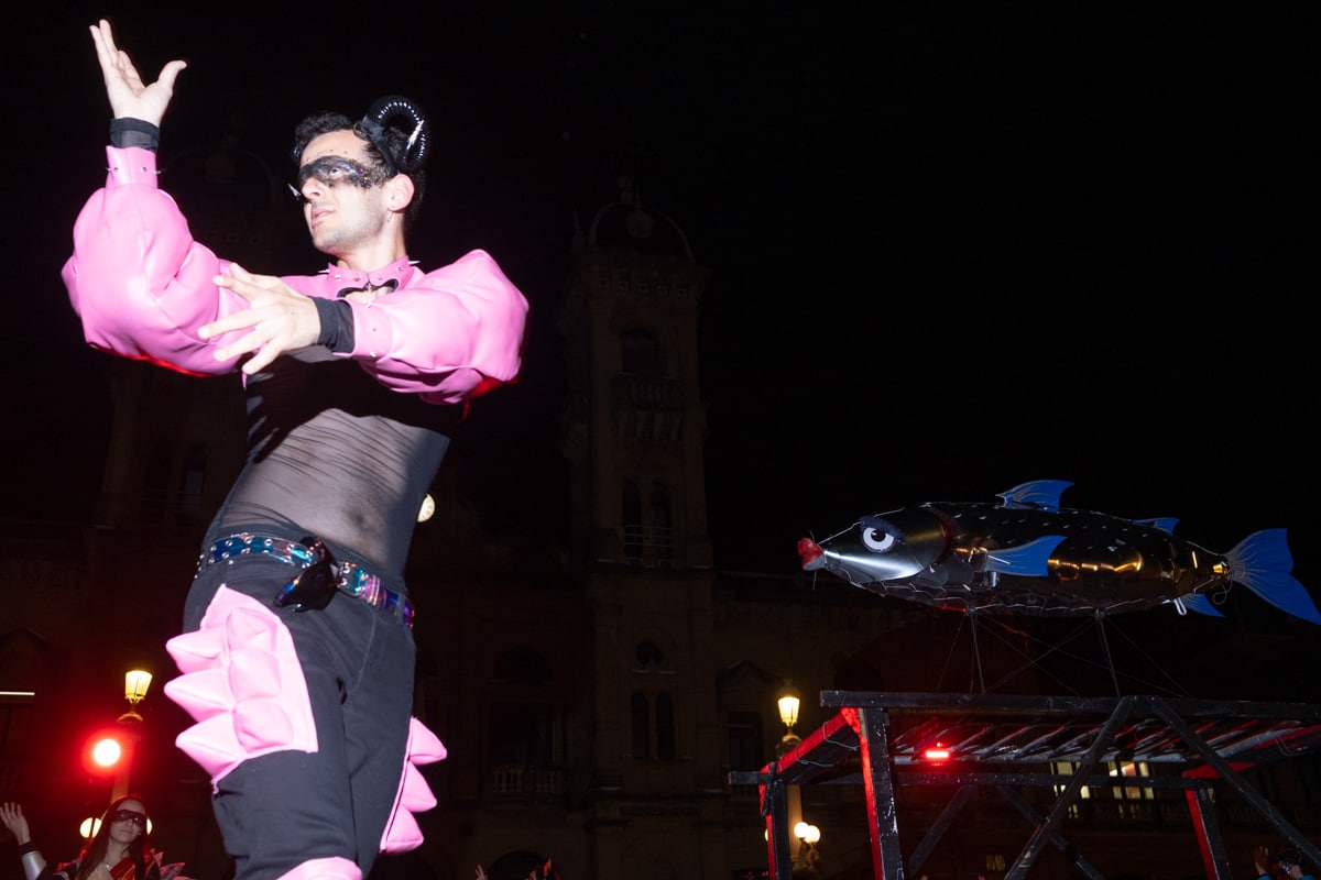 Un nutrido cortejo fúnebre ha partido de la Plaza Bilbao esta tarde en Donostia en dirección a Alderdi Eder, donde oficialmente se despide el Carnaval con la tradicional quema de la sardina.