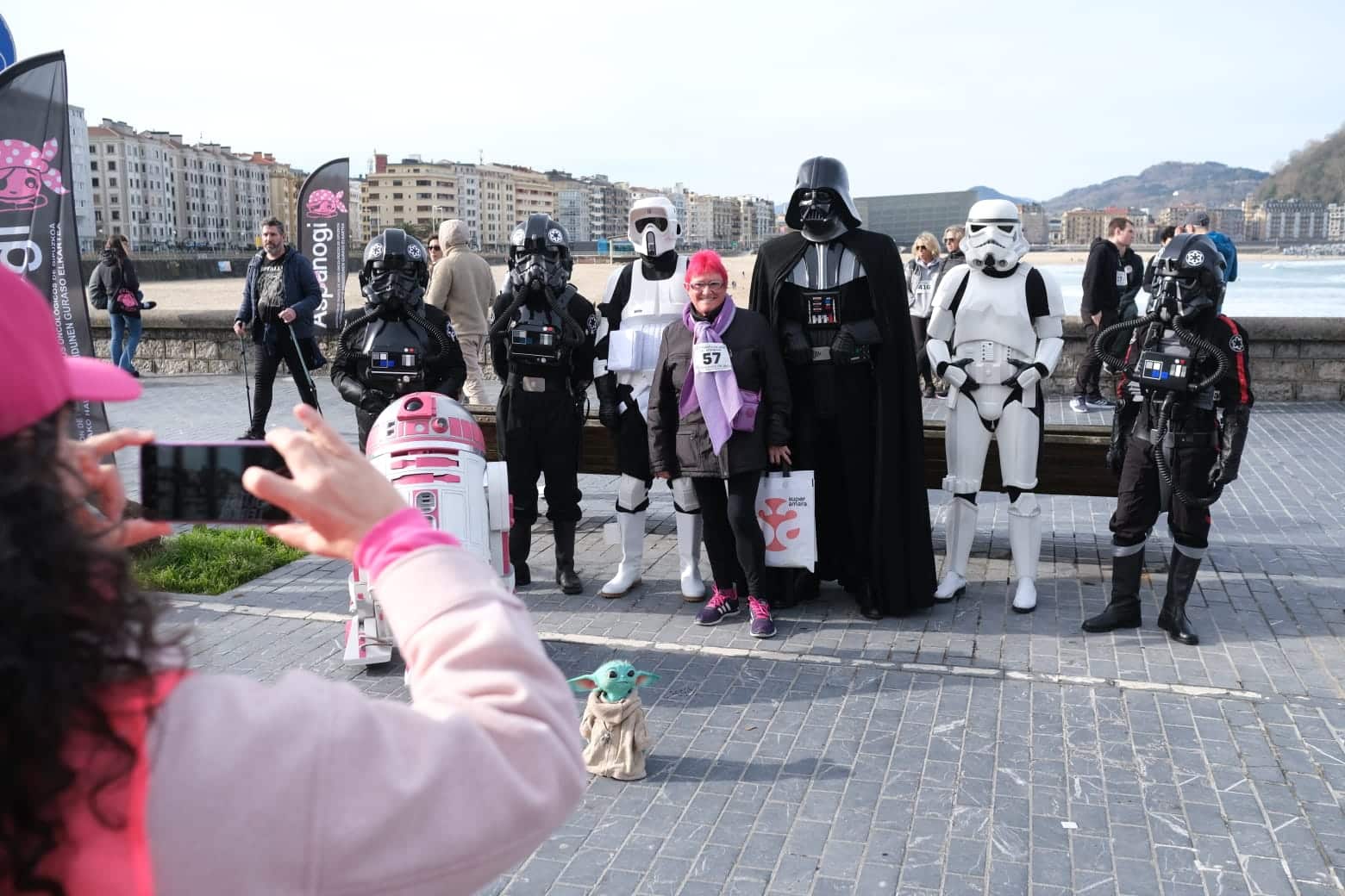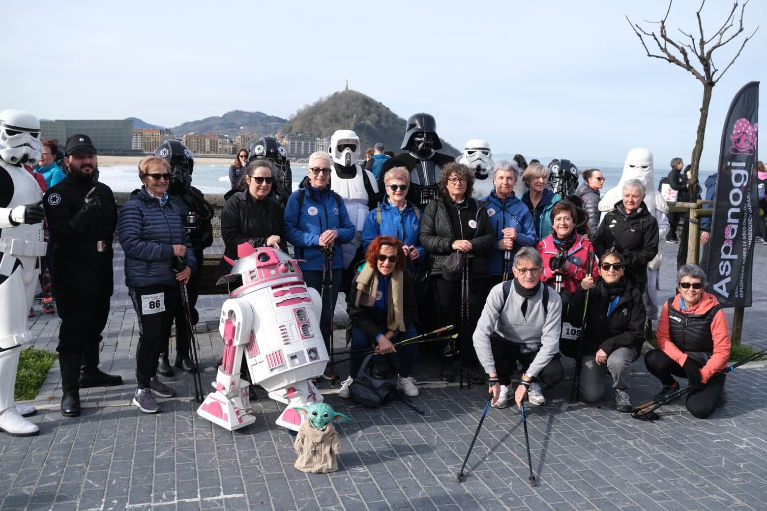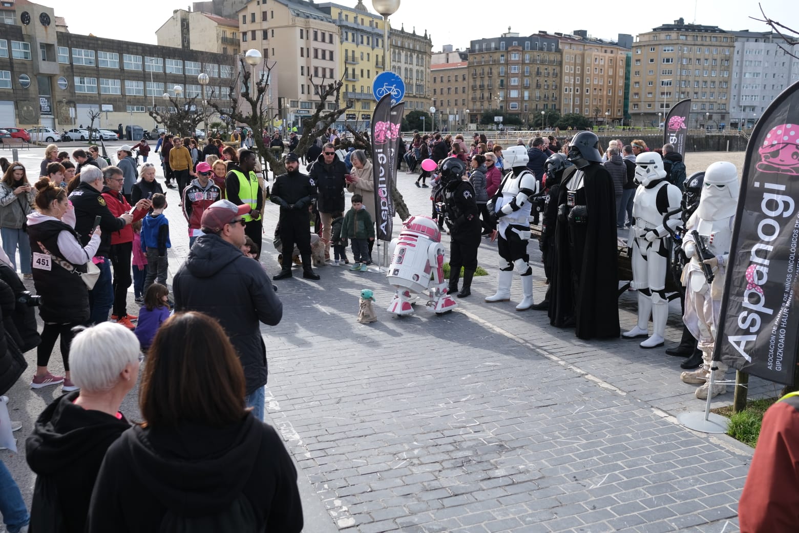 La asociación que engloba a afectados y sus familias ha cumplido de nuevo con el rito este domingo: a las 11 horas las familias y cuadrillas inscritas se han reunido en Gros, han recogido los dorsales, se han hecho los sorteos correspondientes y han echado a andar por el Paseo de la Zurriola en dirección a Ondarreta. Todo con la animación de algunos personajes que no faltan a las citas cuando de solidaridad y concienciación social se trata.