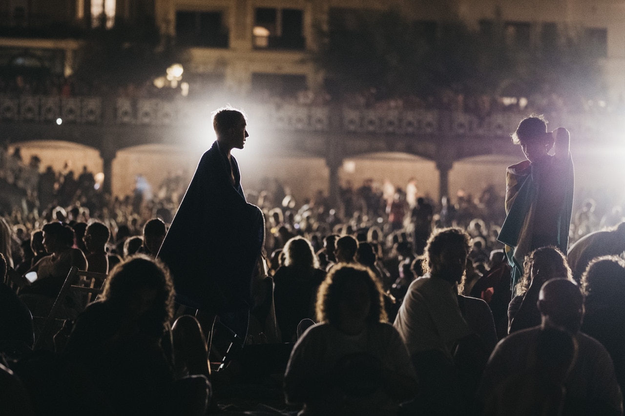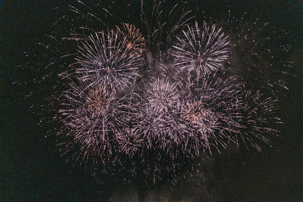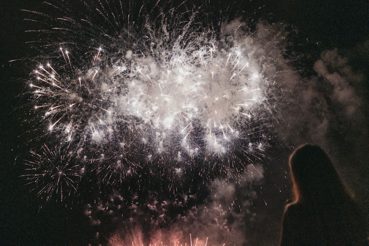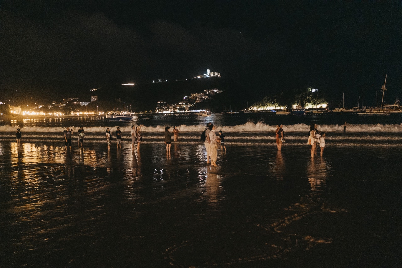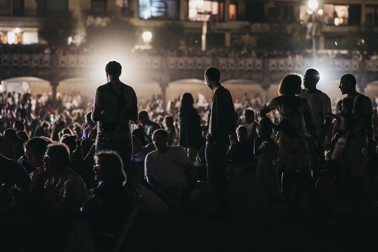 Era la última noche festiva, la del sábado, y la lluvia perdonó y reunió a miles de donostiarras en las calles y en la playa para disfrutar del espectáculo de fuegos y música con la pirotecnia portuguesa Oleirense.