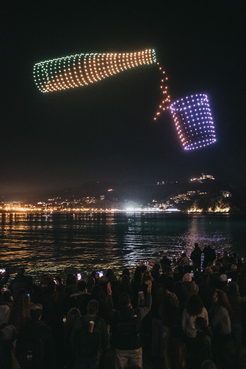 Un multitudinario acto de encendido de la iluminación festiva, a cargo del periodista Iñaki Gabilondo, ha dado la bienvenida a la Navidad donostiarra con un espectáculo de 500 drones sobre la bahía de La Concha y la actuación de la cantante Izaro.