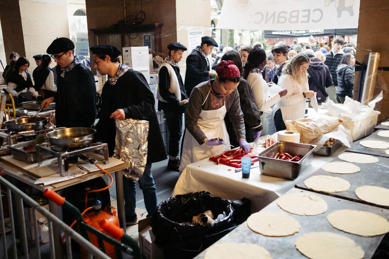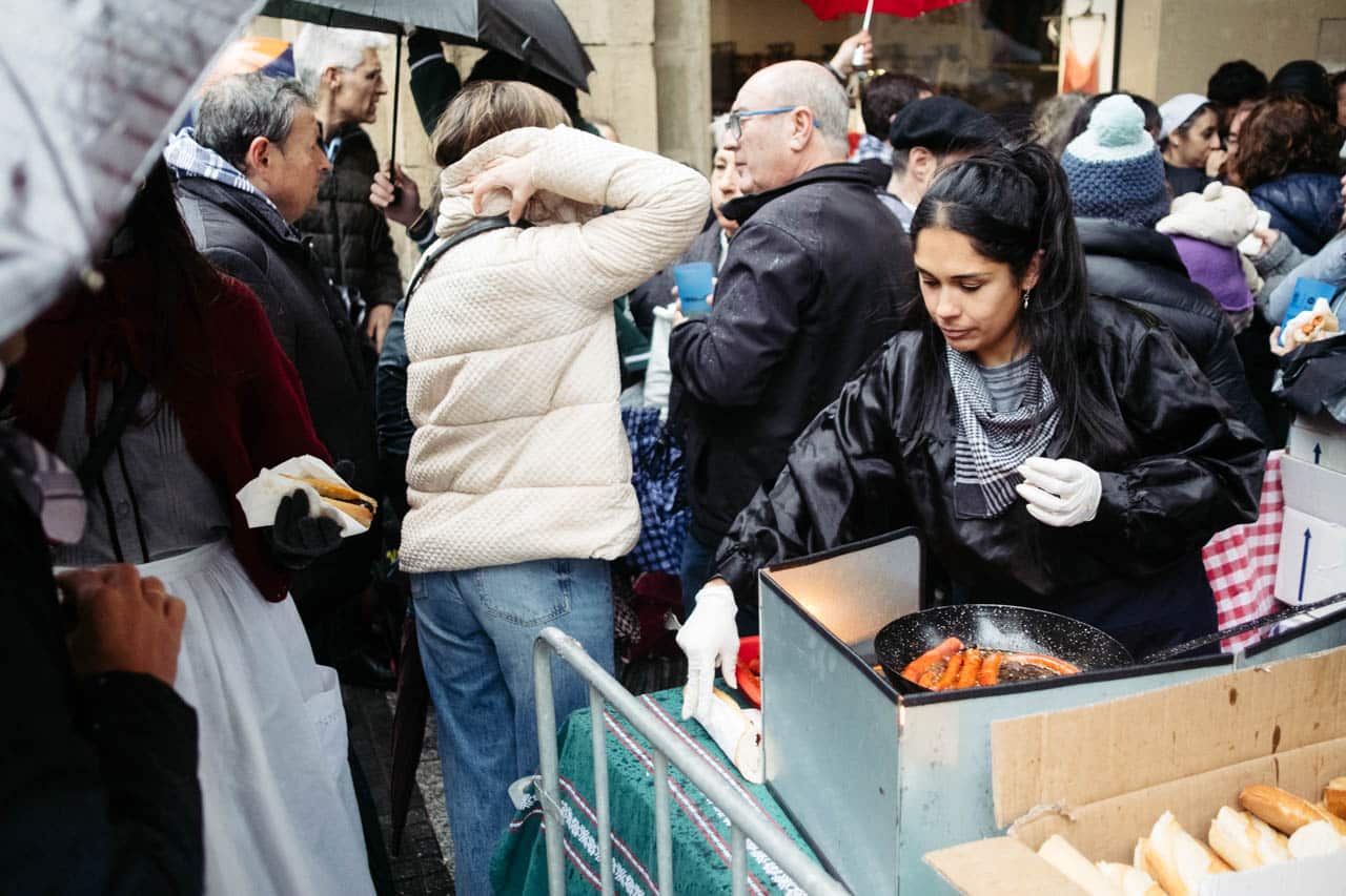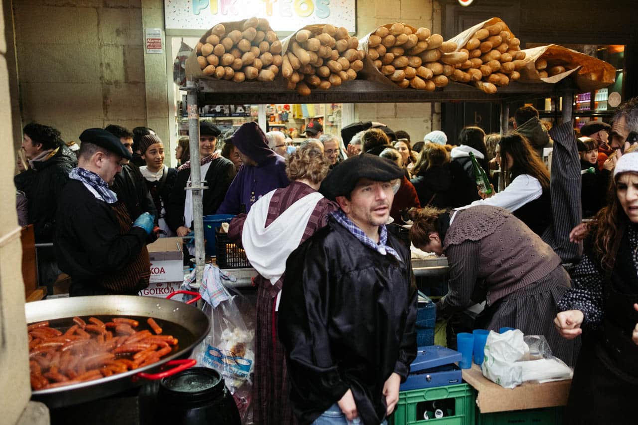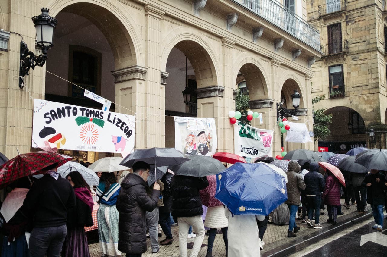 Aun así no faltaron a la cita los trajes de baserritarra, ni las txistorras, ni las largas colas que, incluso bajo la lluvia, siguieron marcando el pulso de la fiesta. Además por la tarde mejoró el panorama: llovío mucho menos, pero se notó más el frío. Pese a todo la mayoría de la ciudadanía donostiarra estuvo en las calles.