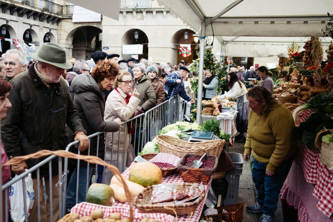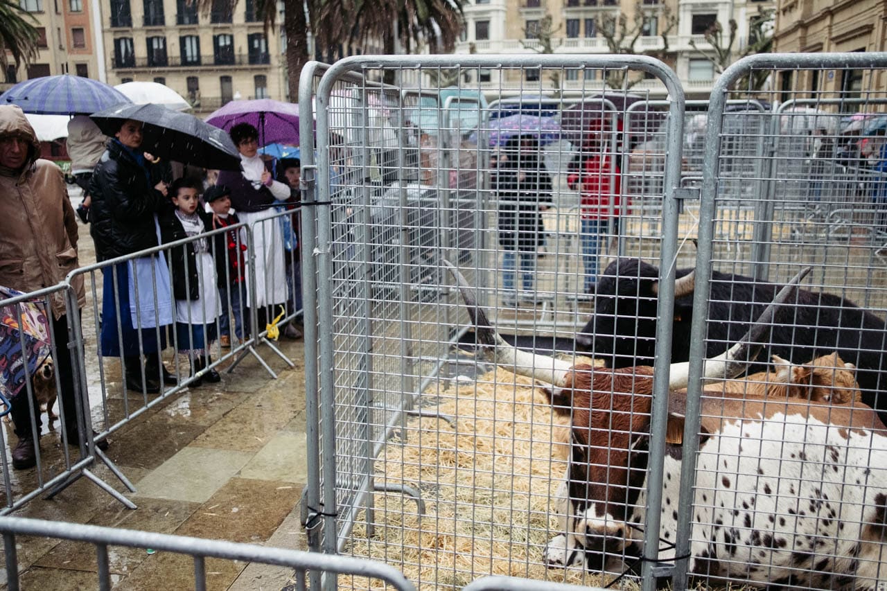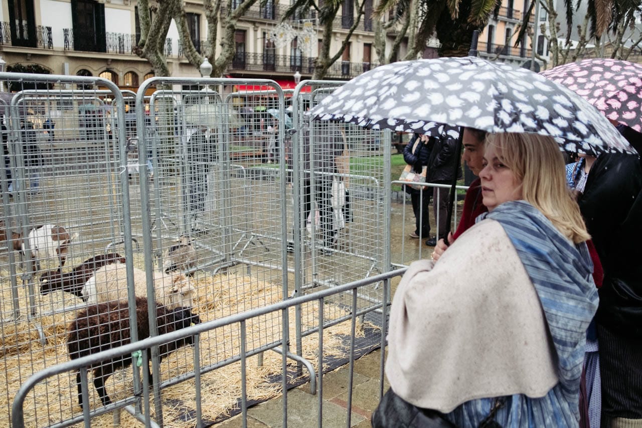 Estaba sobradamente anunciado que este Santo Tomás sería pasado por agua y, por ello, el ambiente de este domingo fue más madrugador de lo habitual. Para las once de la mañana muchas familias habían recorrido ya la feria, con parada obligada en la cerda de la Plaza de la Constitución, y en la Plaza Okendo, donde los animales lanudos y cornudos son siempre el principal reclamo infantil.