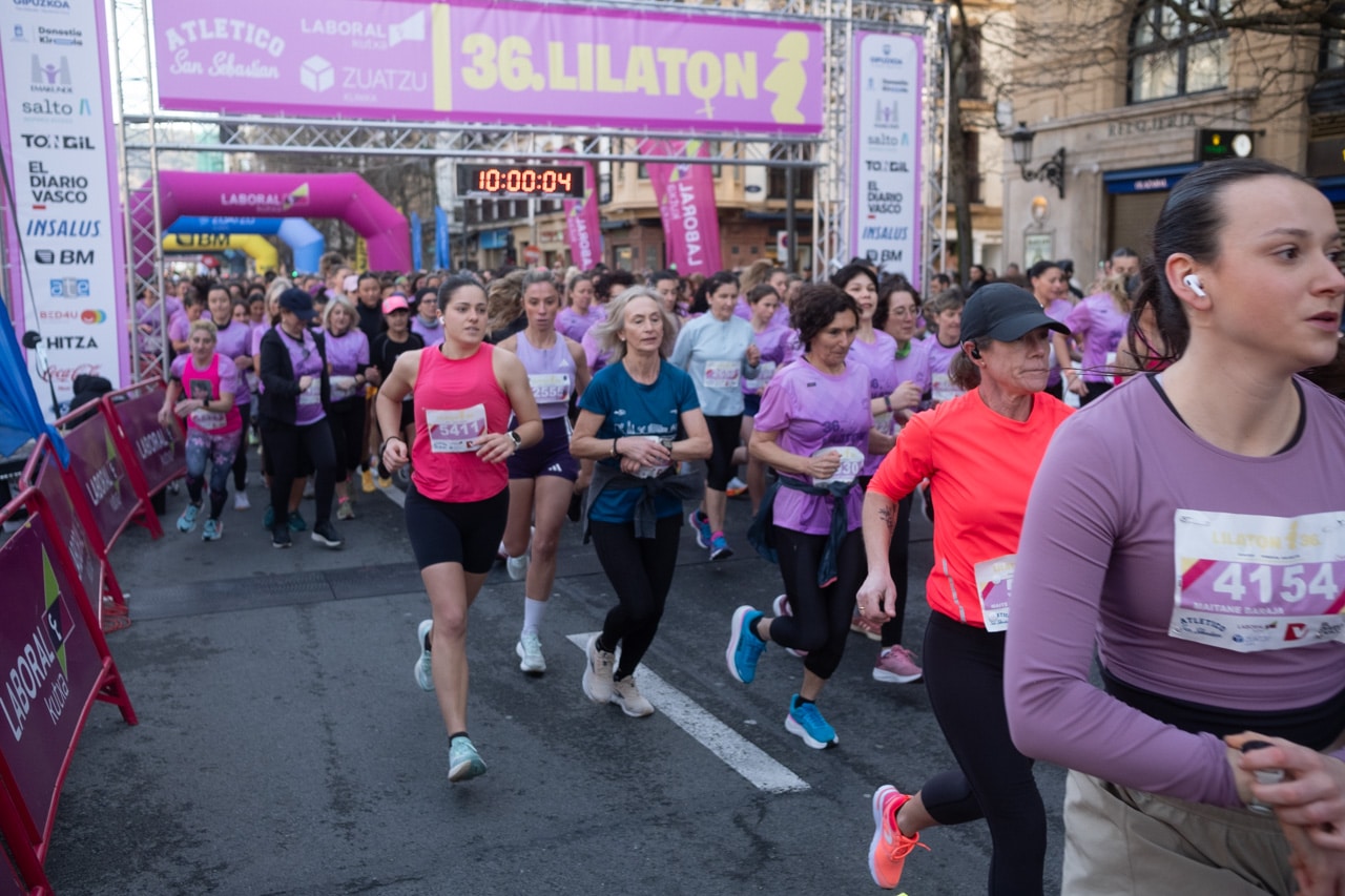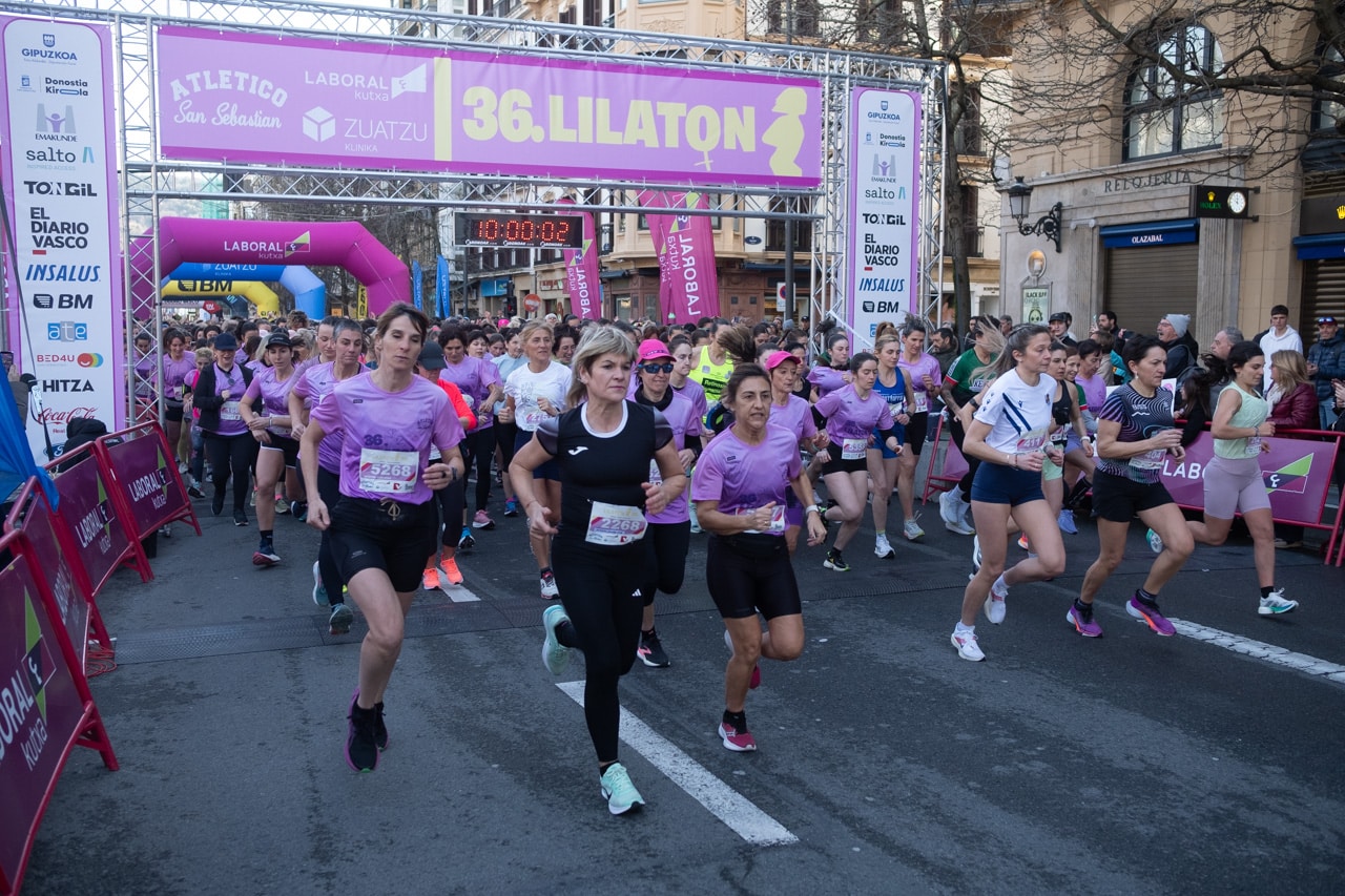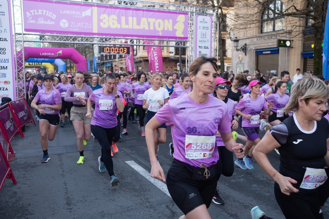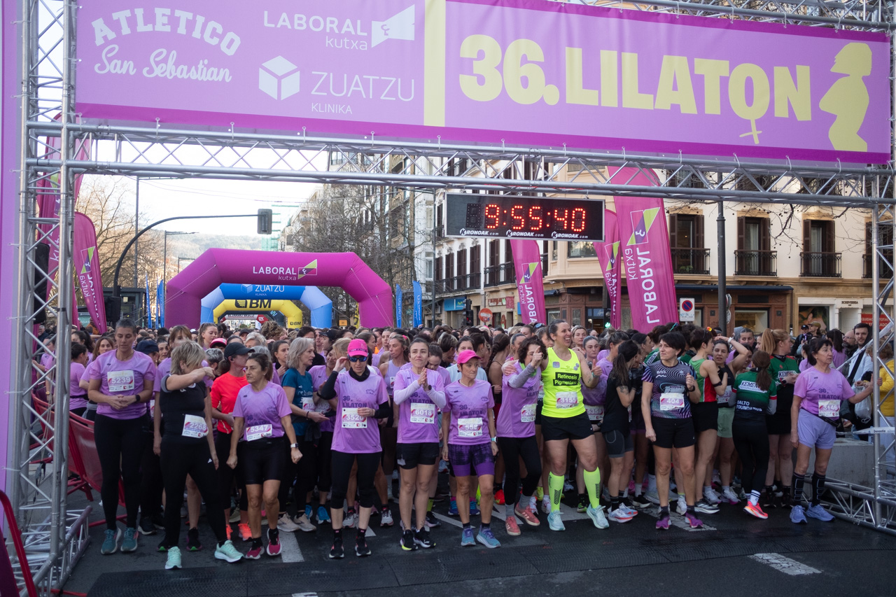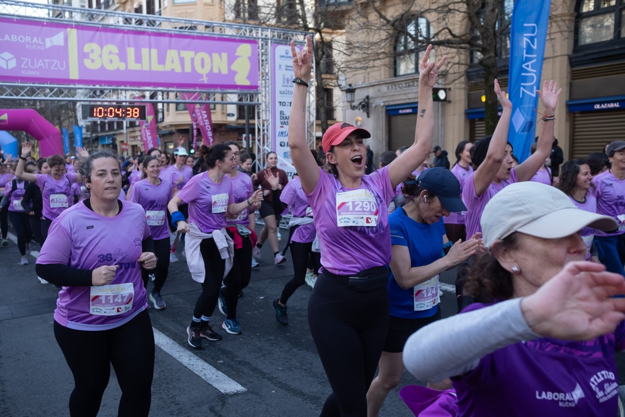 Donostia ha amanecido este domingo con un sol espléndido y una temperatura casi primaveral para acompañar a las 6.500 participantes de la Lilatón. Desde primera hora el Boulevard se ha llenado de camisetas lilas, estiramientos, risas nerviosas y fotografías de grupo antes de la salida. El buen tiempo ha contribuido a que la cita se viva como una auténtica fiesta del deporte al aire libre.