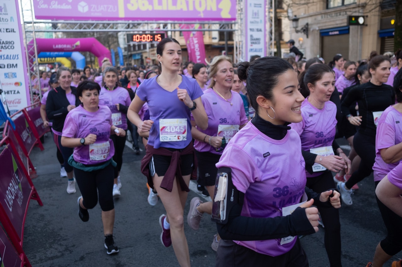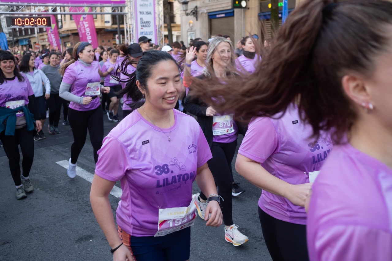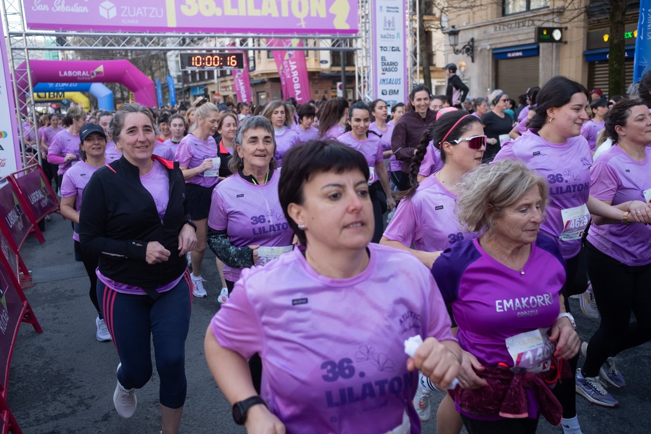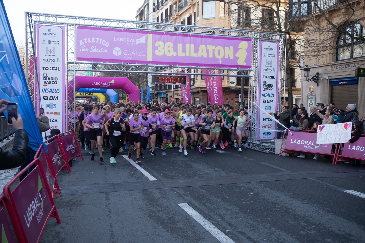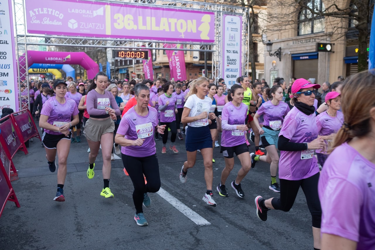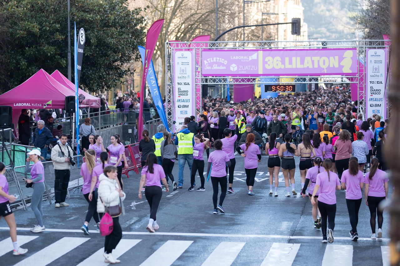 Donostia ha amanecido este domingo con un sol espléndido y una temperatura casi primaveral para acompañar a las 6.500 participantes de la Lilatón. Desde primera hora el Boulevard se ha llenado de camisetas lilas, estiramientos, risas nerviosas y fotografías de grupo antes de la salida. El buen tiempo ha contribuido a que la cita se viva como una auténtica fiesta del deporte al aire libre.