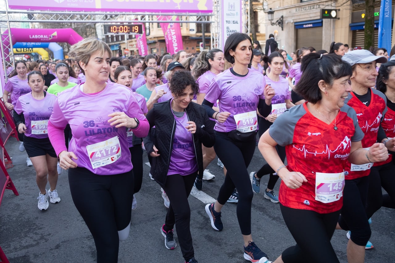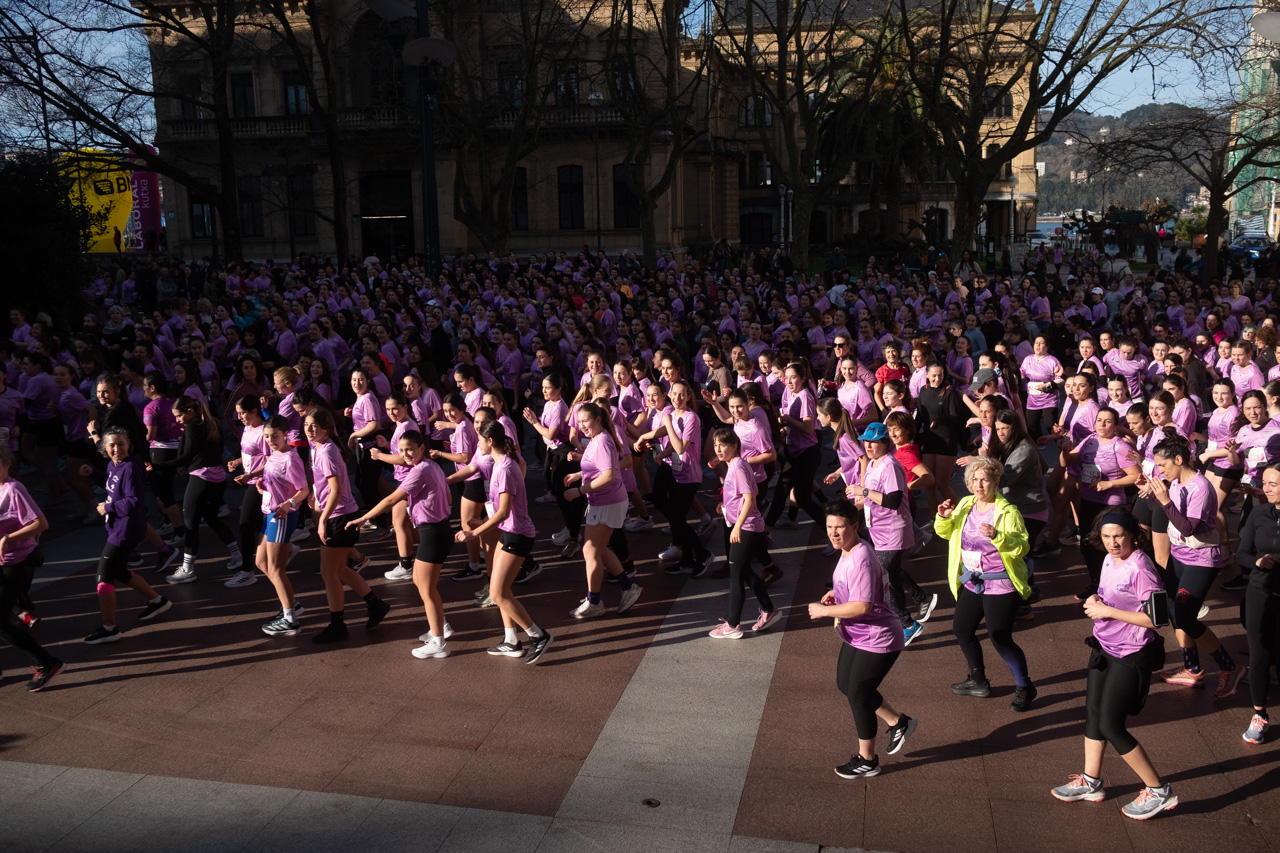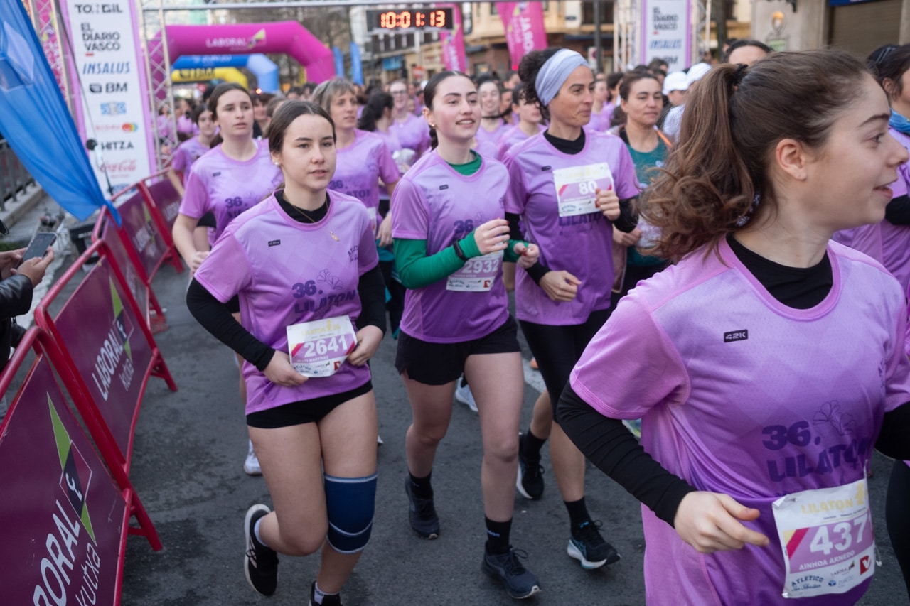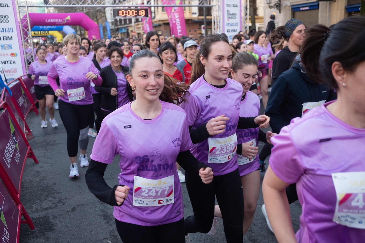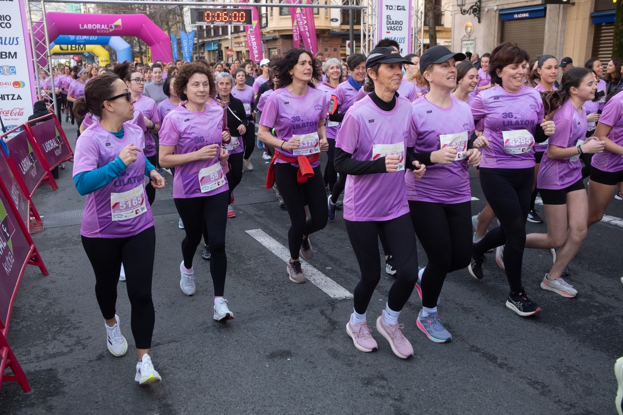 Donostia ha amanecido este domingo con un sol espléndido y una temperatura casi primaveral para acompañar a las 6.500 participantes de la Lilatón. Desde primera hora el Boulevard se ha llenado de camisetas lilas, estiramientos, risas nerviosas y fotografías de grupo antes de la salida. El buen tiempo ha contribuido a que la cita se viva como una auténtica fiesta del deporte al aire libre.