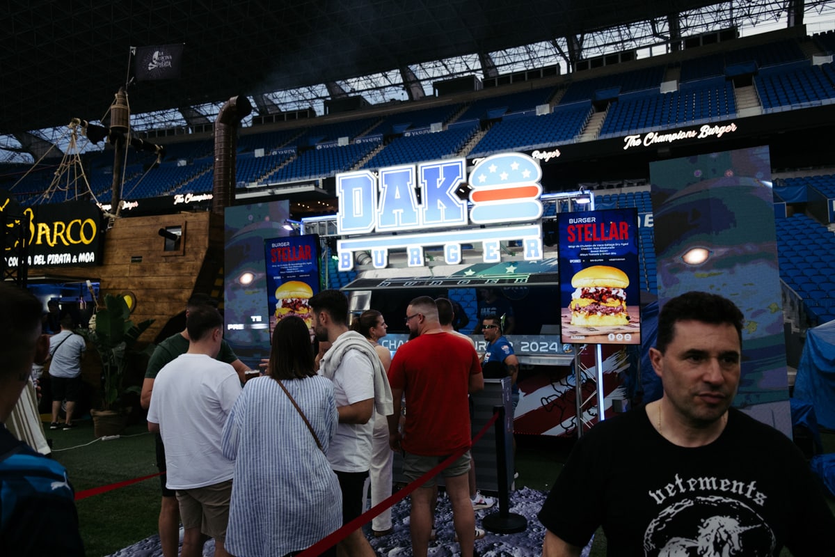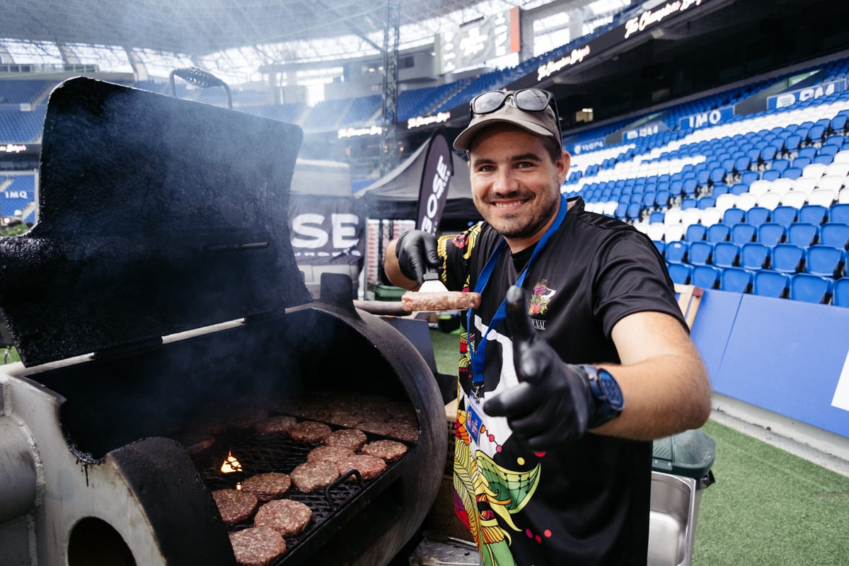 Fernández, que acaba de cursar un máster en Basque Culinary Center, se ha acercado hoy al Reale Arena para cocinar en directo su propuesta. Para los curiosos: la ‘Guinness Burger’ lleva pan brioche, 180 gramos de carne de vacuno, salsa barbacoa especial Guinness, queso chédar, beicon y cebolla caramelizada reducida con cerveza Guinness.