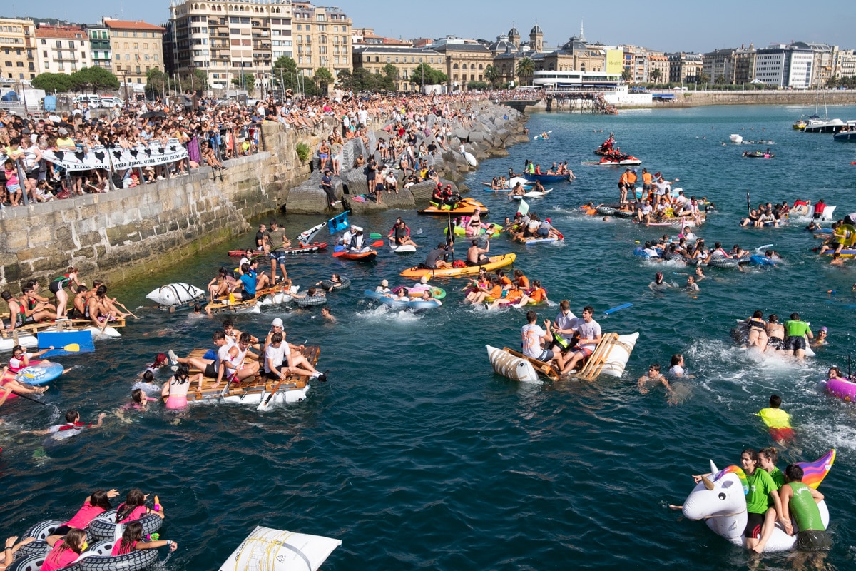 Cientos de piratas en embarcaciones de lo más variopintas han abandonado hoy el muelle donostiarra en dirección a la playa de la Concha a las 17 horas en lo que sin duda es uno de los hitos de la Semana Grande.