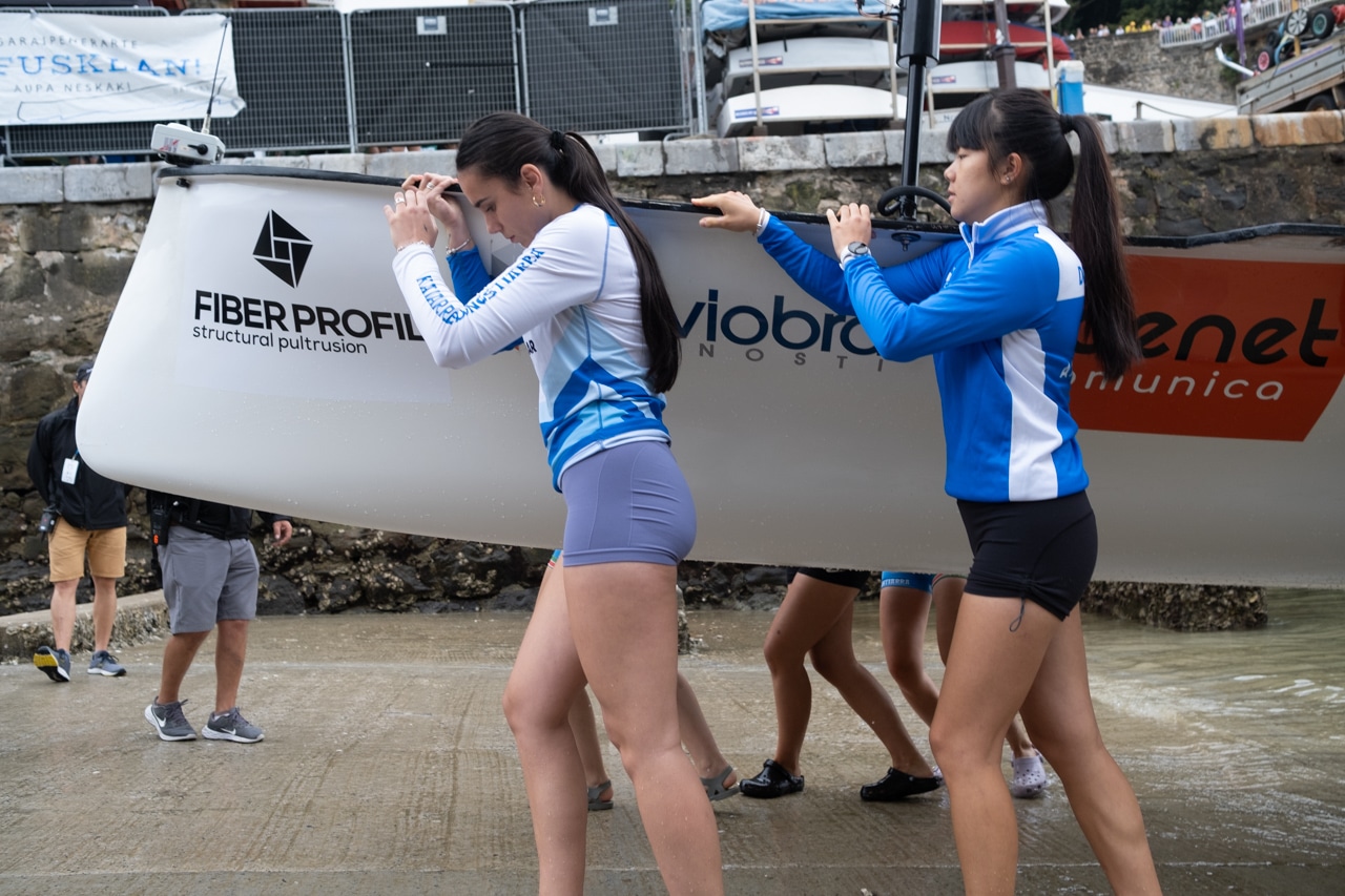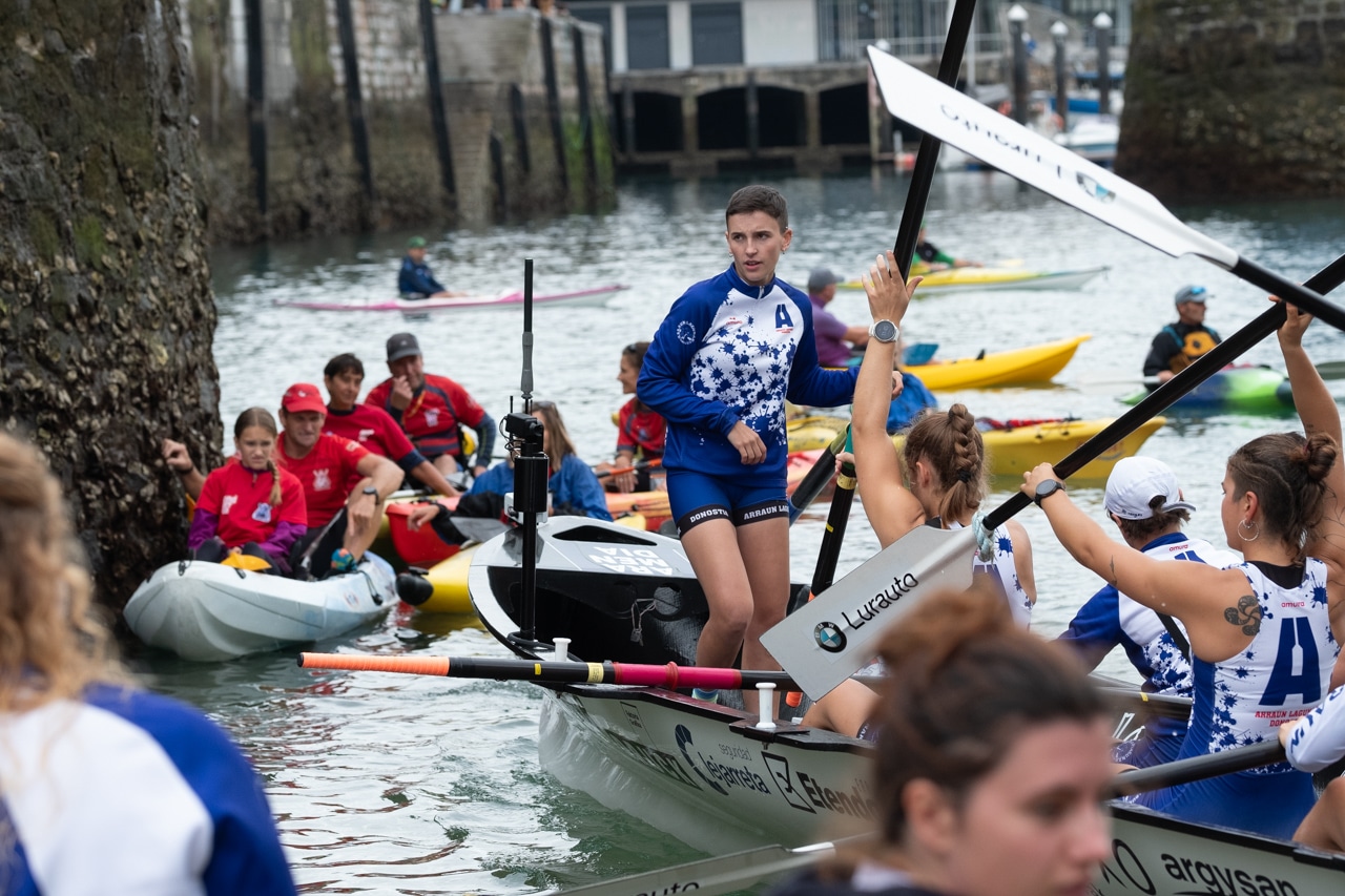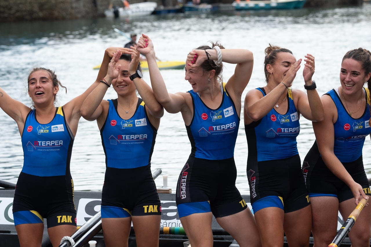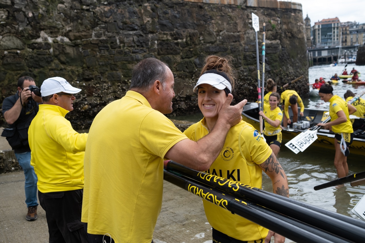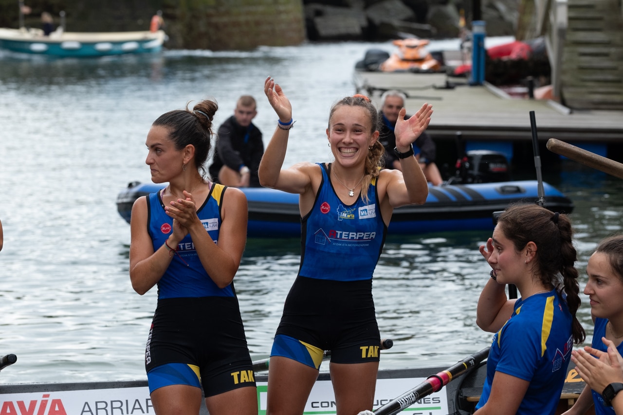 Palada a palada las remeras oriotarras fueron haciendo brecha, a mitad de prueba solo Hibaika seguía de lejos su estela, y el bote amarillo se concentró, sobre una buena mar para las regatas, en intentar un crono insuperable para las embarcaciones que seguidamente bogarían en la segunda de las tandas, algo que no logró aunque estuvo cerca.