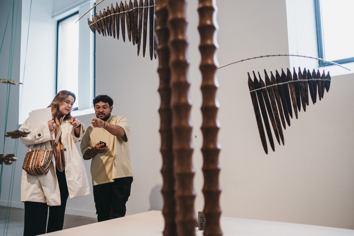 ‘Con las palmas de las manos, con las palmas de los pies’ es el título de la serie de piezas creadas por el costarricense Christian Salablanca para las que utiliza instrumentos musicales tradicionales que funcionan como objetos escultóricos.