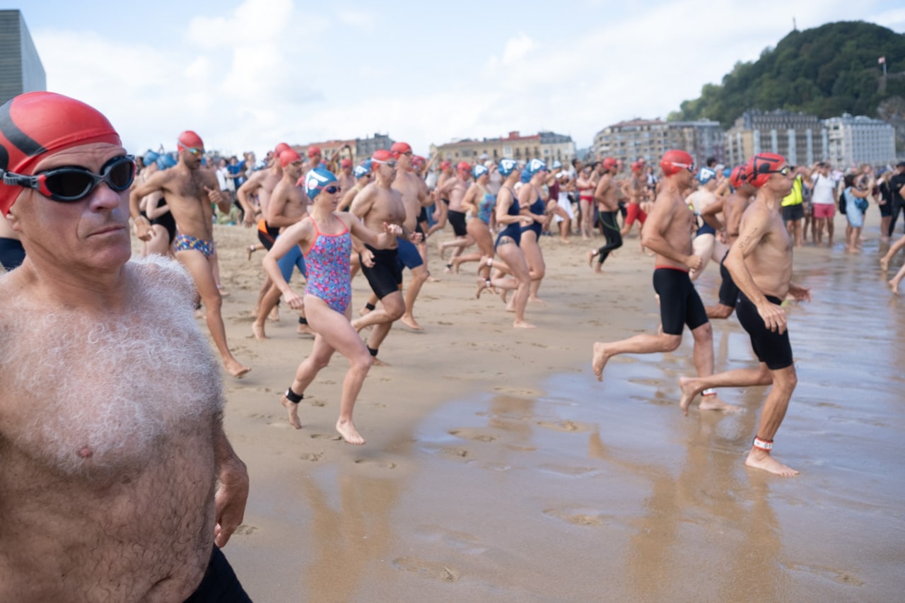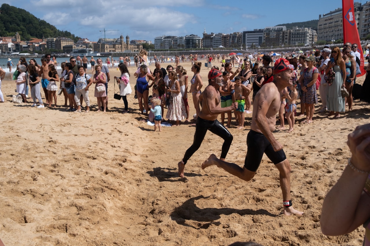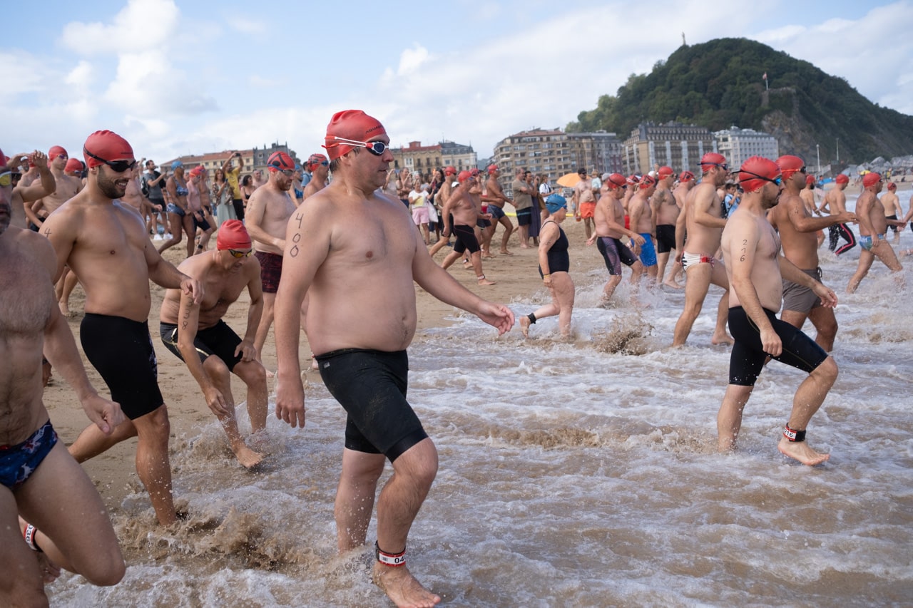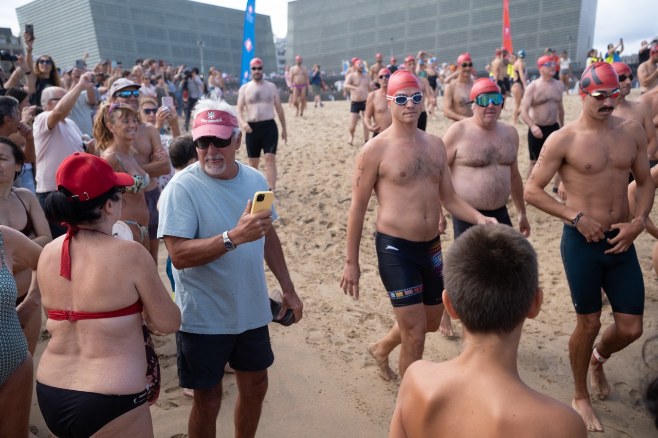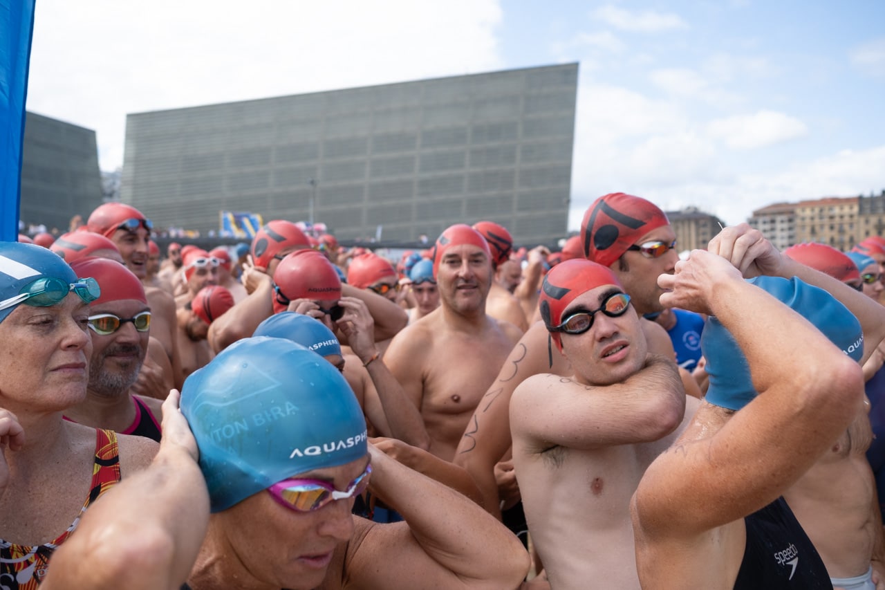 El sexto día de la Semana Grande donostiarra este 15 de agosto ha comenzado con mejor tiempo del previsto para acompañar la Travesía a Nado al Paseo Nuevo. A las 11 horas han salido los pequeños, la categoría infantil, desde el espigón del muelle para llegar a la playa de la Concha. A las 12 horas el resto de las categorías. Esta vez la salida ha sido desde la playa de la Zurriola en dirección a la bahía.