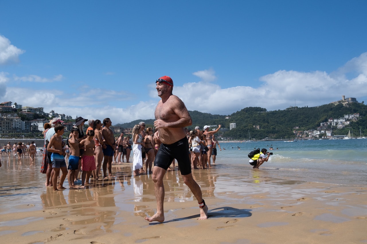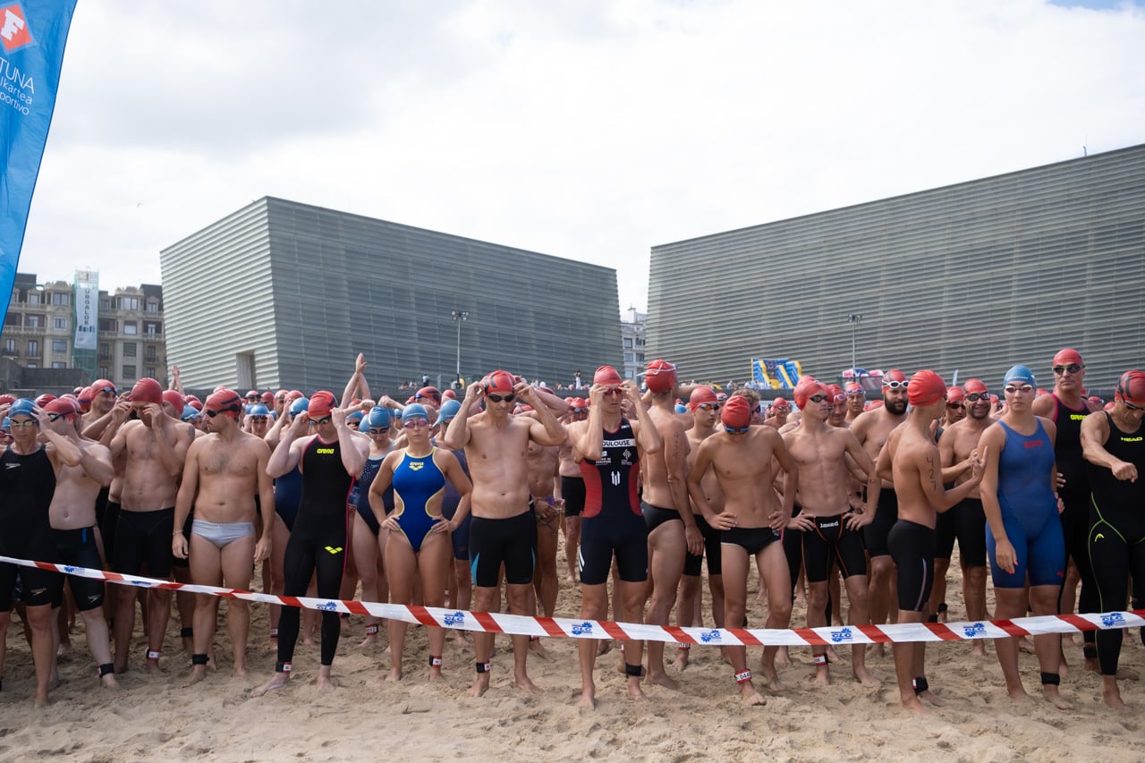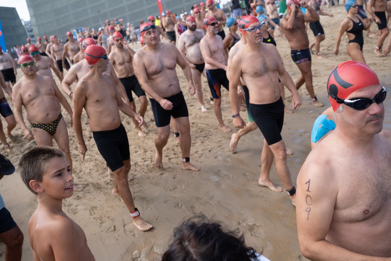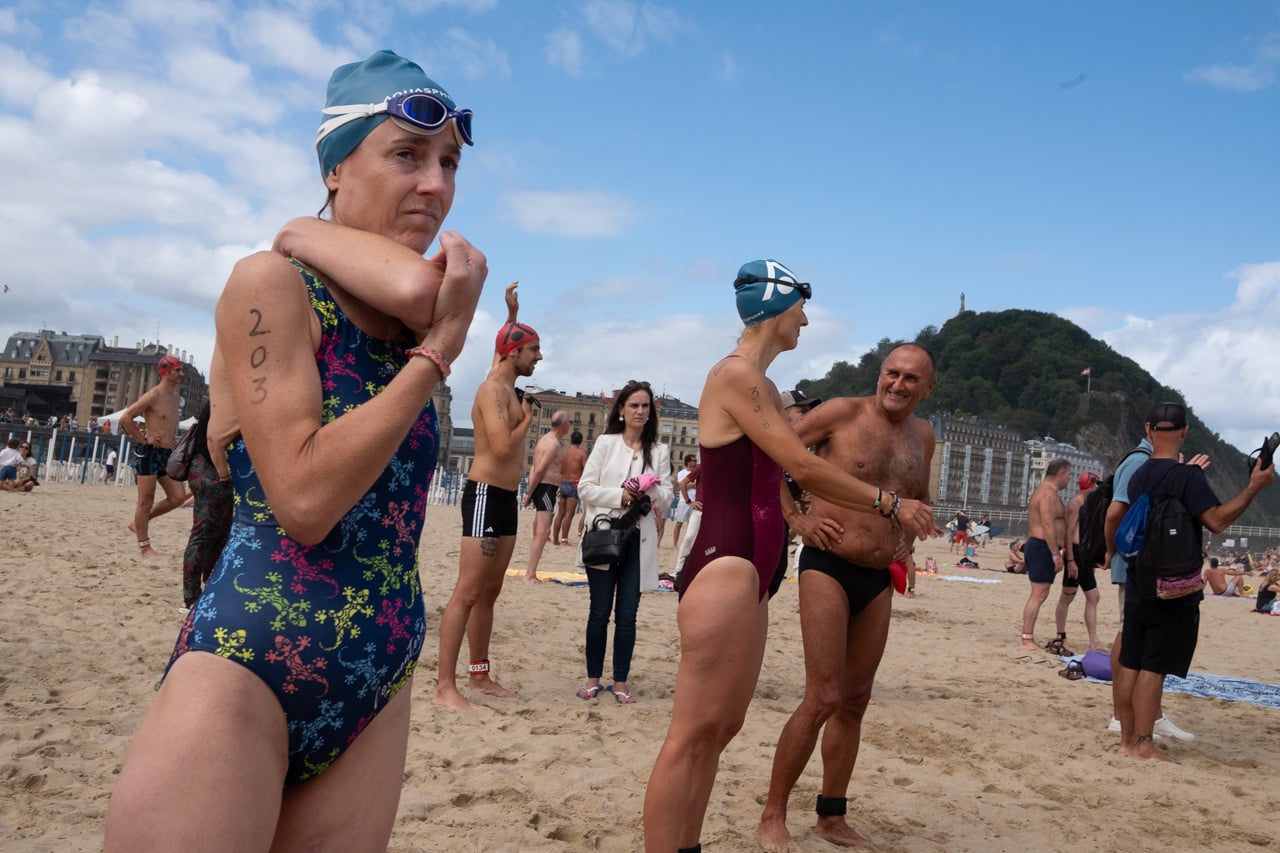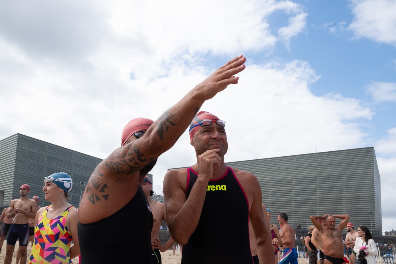 El sexto día de la Semana Grande donostiarra este 15 de agosto ha comenzado con mejor tiempo del previsto para acompañar la Travesía a Nado al Paseo Nuevo. A las 11 horas han salido los pequeños, la categoría infantil, desde el espigón del muelle para llegar a la playa de la Concha. A las 12 horas el resto de las categorías. Esta vez la salida ha sido desde la playa de la Zurriola en dirección a la bahía.