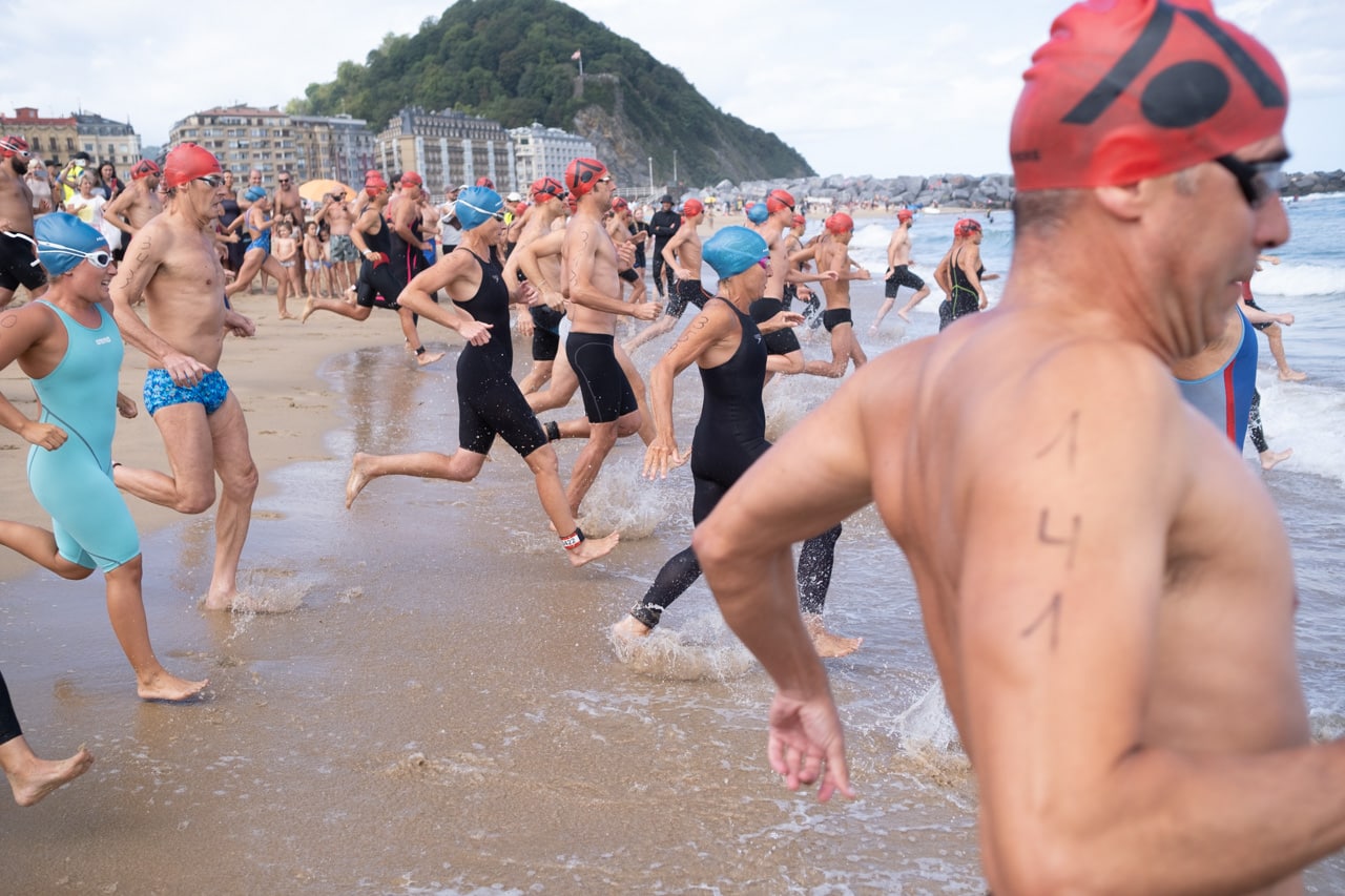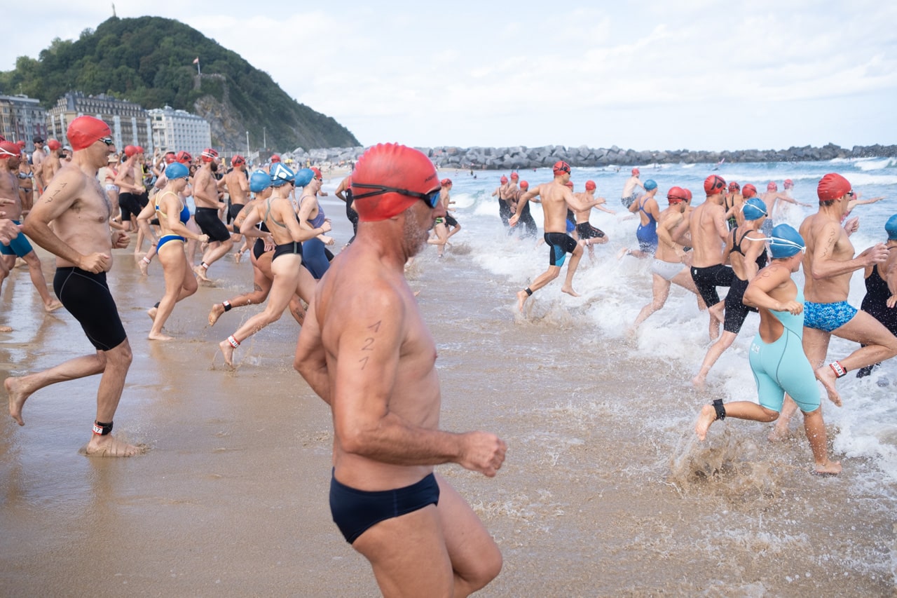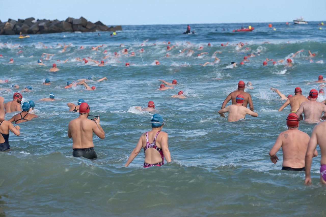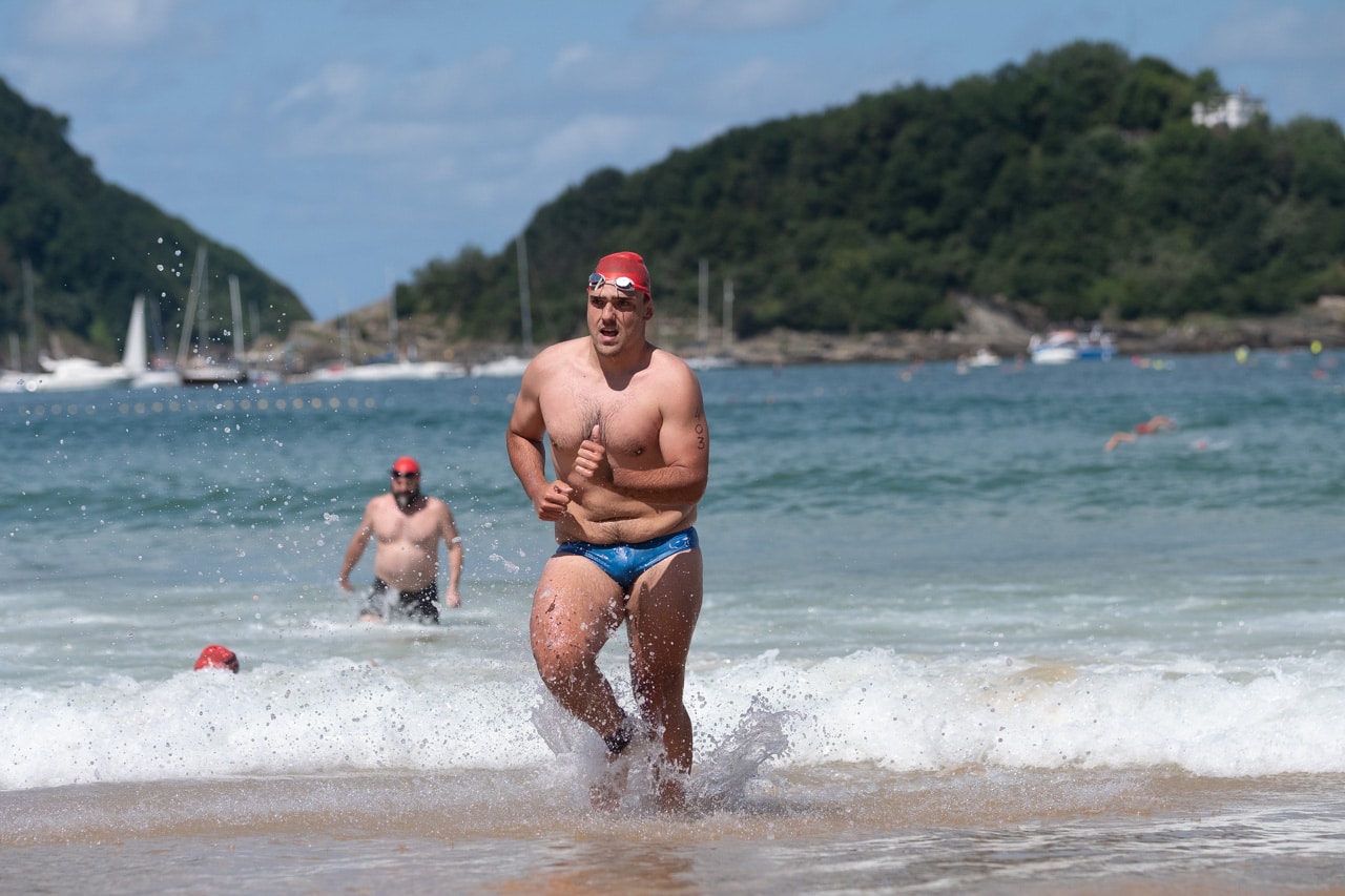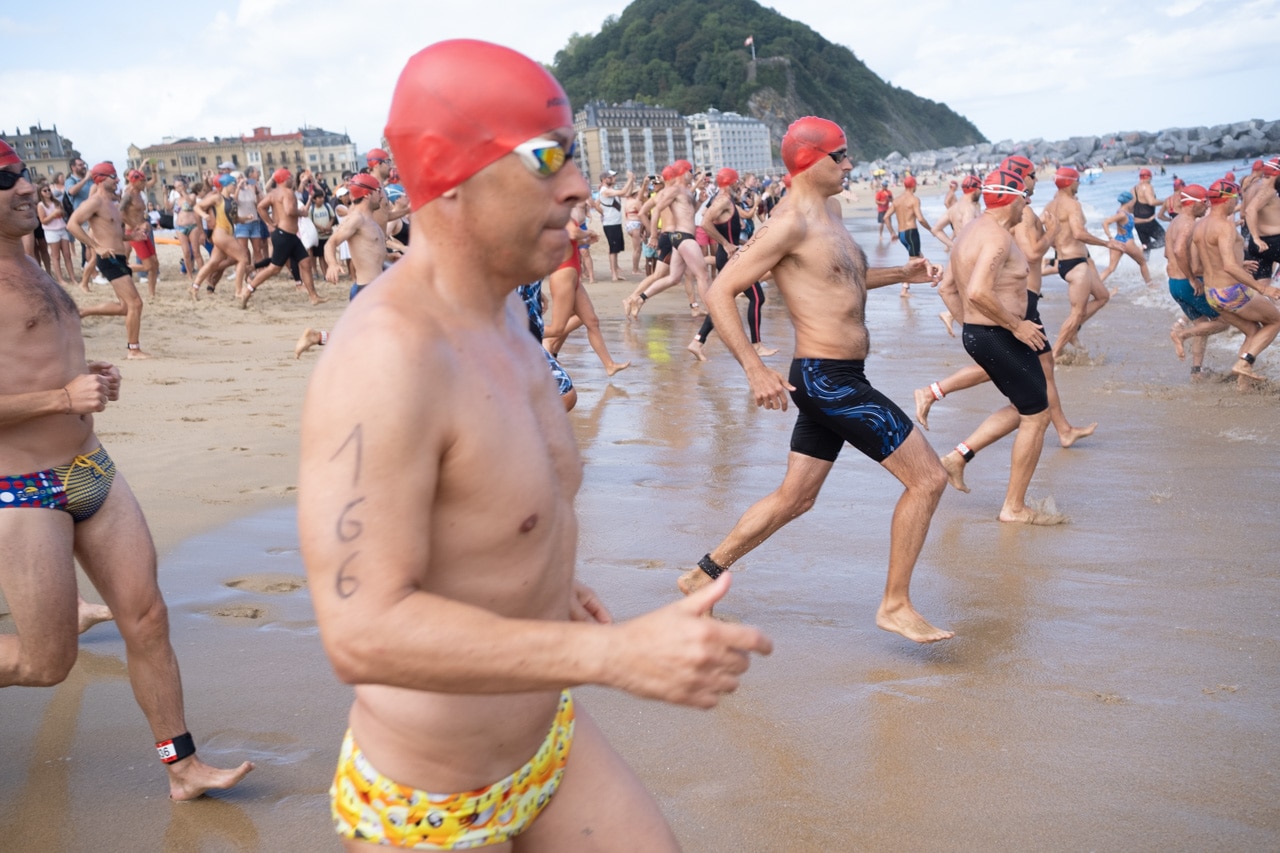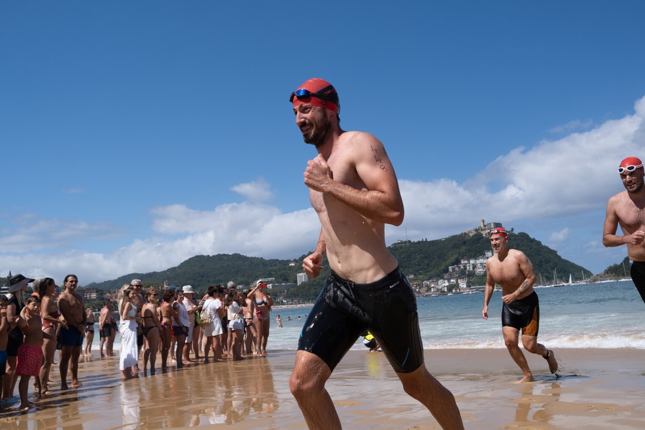El sexto día de la Semana Grande donostiarra este 15 de agosto ha comenzado con mejor tiempo del previsto para acompañar la Travesía a Nado al Paseo Nuevo. A las 11 horas han salido los pequeños, la categoría infantil, desde el espigón del muelle para llegar a la playa de la Concha. A las 12 horas el resto de las categorías. Esta vez la salida ha sido desde la playa de la Zurriola en dirección a la bahía.