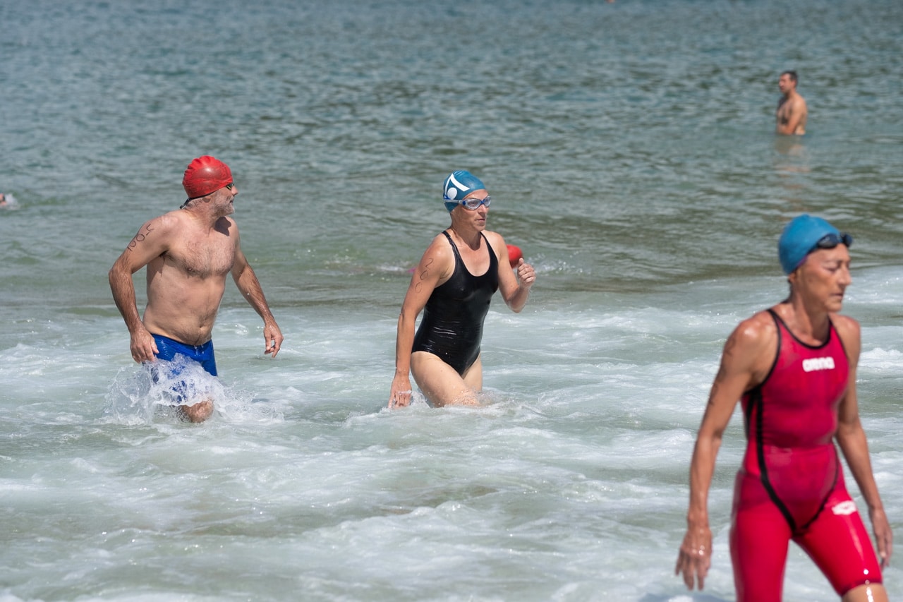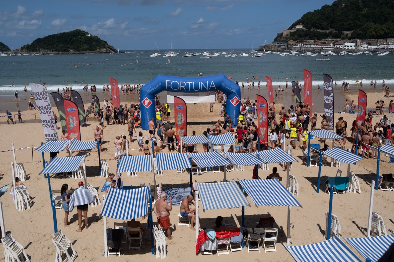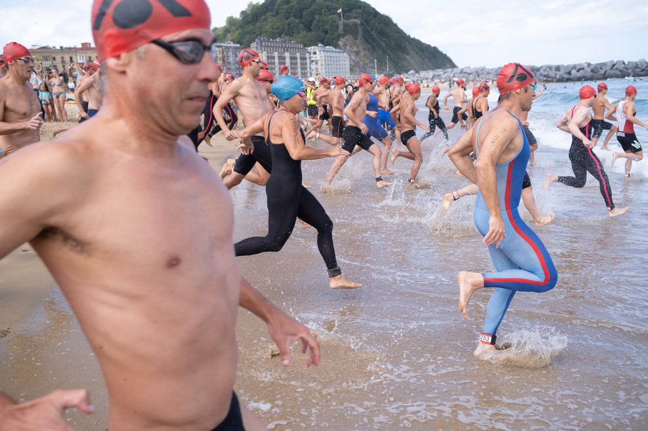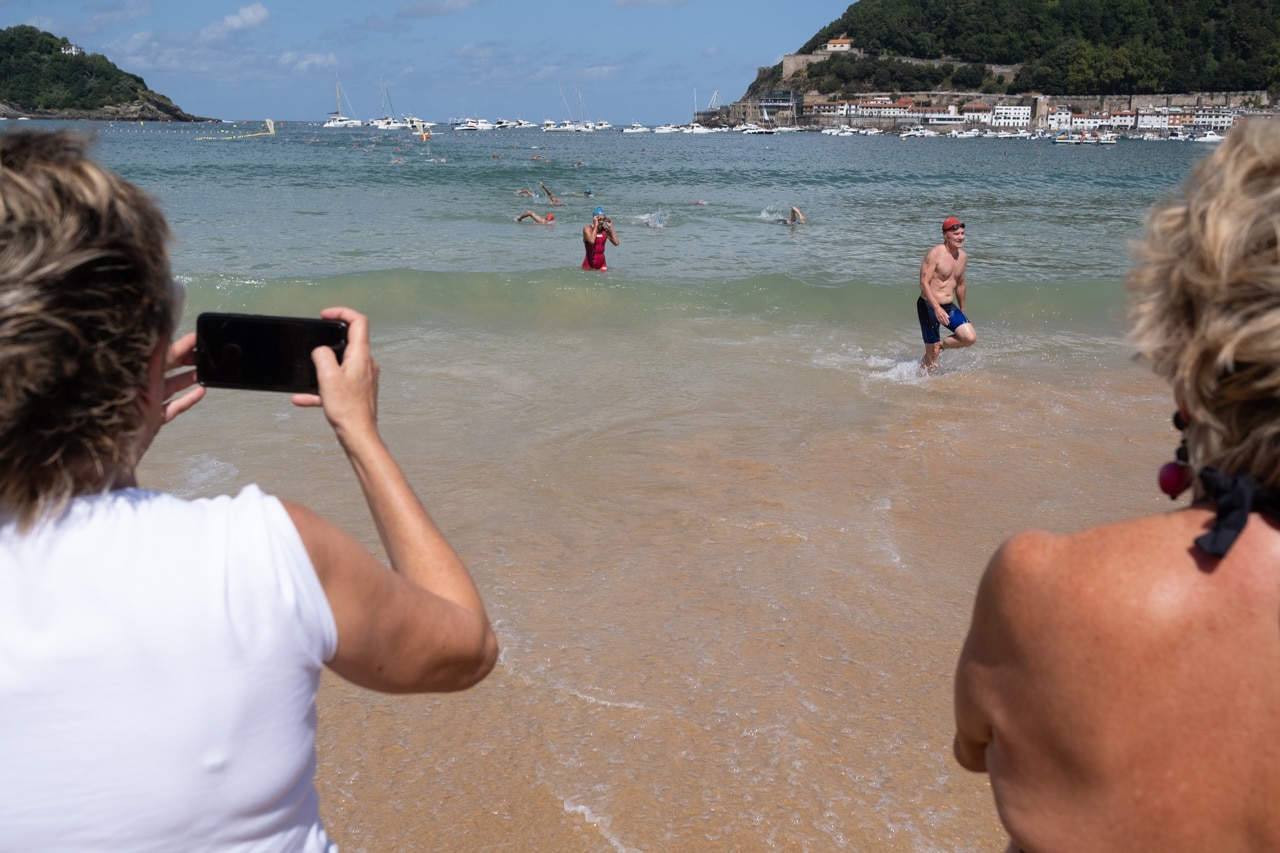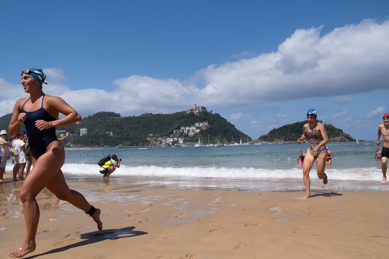 El sexto día de la Semana Grande donostiarra este 15 de agosto ha comenzado con mejor tiempo del previsto para acompañar la Travesía a Nado al Paseo Nuevo. A las 11 horas han salido los pequeños, la categoría infantil, desde el espigón del muelle para llegar a la playa de la Concha. A las 12 horas el resto de las categorías. Esta vez la salida ha sido desde la playa de la Zurriola en dirección a la bahía.