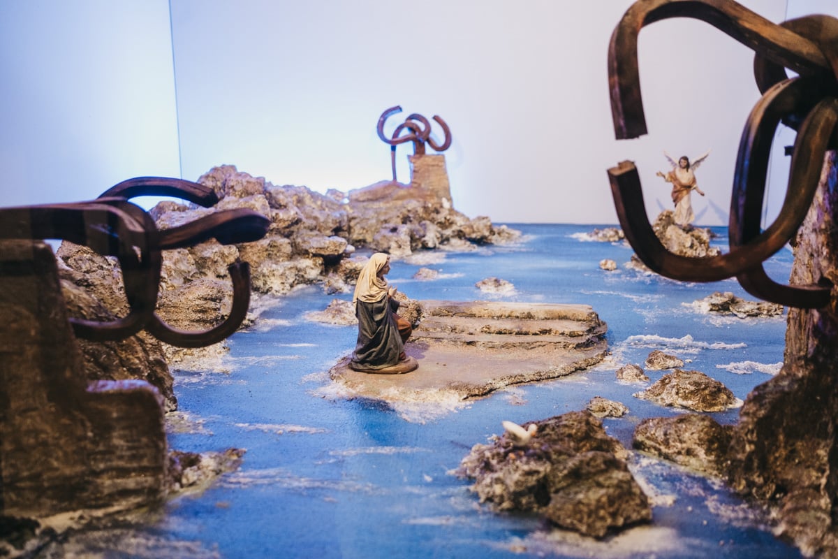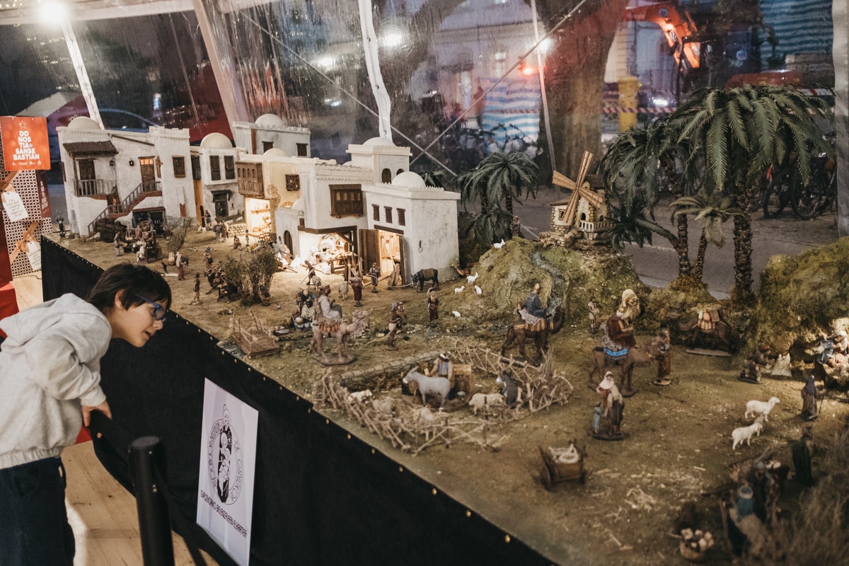 ¿Un ejemplo?, el centenario de Chillida, que se ha celebrado a lo largo de todo este 2024, tiene su propio reflejo en uno de los dioramas del iglú de Gabonetako Azoka. En el primero, concretamente. Allí los motivos religiosos se introducen en el Peine del Viento con total naturalidad. «Generalmente nosotros fabricamos de cero todas las estructuras y usamos las figuras que tenemos en el almacén, pero en este caso las gaviotas también están hechas por nosotros para la ocasión», contó Lamy.