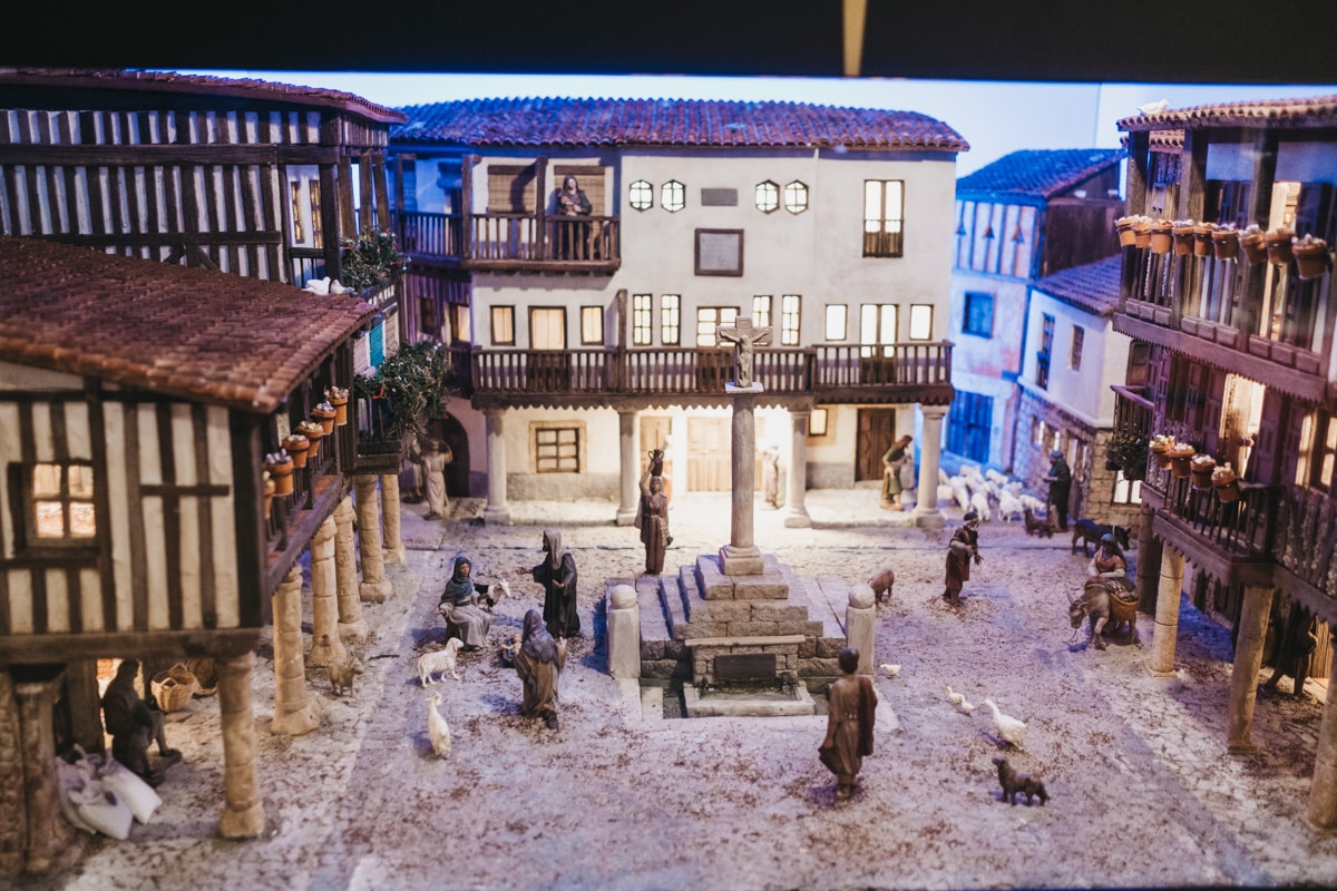 Lamy explicó que hay socios belenistas que hacen un viaje, por ejemplo, y se inspiran para diseñar una escena. Ponen en común su iniciativa a primeros de año y, si cuaja, adelante. Como ejemplo mostró que otro de los dioramas de este año en el iglú (son cuatro, el primero es el ya citado de Chillida) replica la plaza de la Alberca de Salamanca. Y está perfecto.