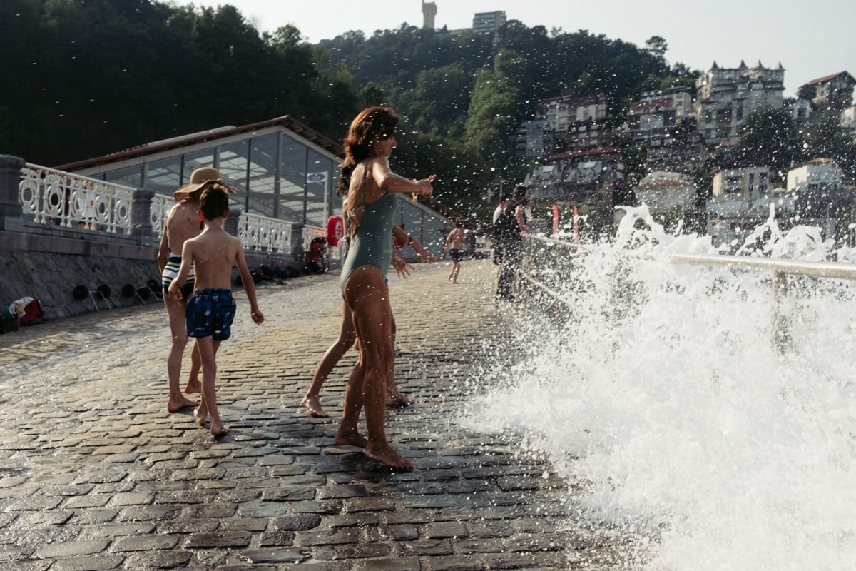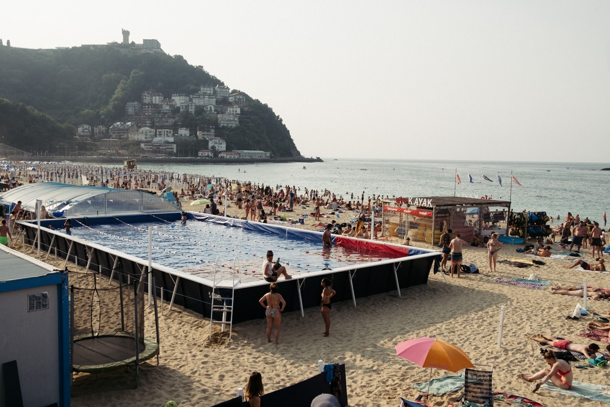 Con temperaturas que superarán los 30º en Donostia este fin de semana y se acercarán a los 40º en el interior, con peligro de incendio y advertencias del Gobierno vasco sobre la necesidad de hidratarse y mantenerse ‘fresco’ dentro de lo posible, cabe esperar que vuelvan a ser muchos los donostiarras que se refugien en las playas cerquita de la orilla. Especialmente apreciada para el baño será, como siempre, la rampa del Tenis al final de Ondarreta. Imágenes del jueves por la tarde.