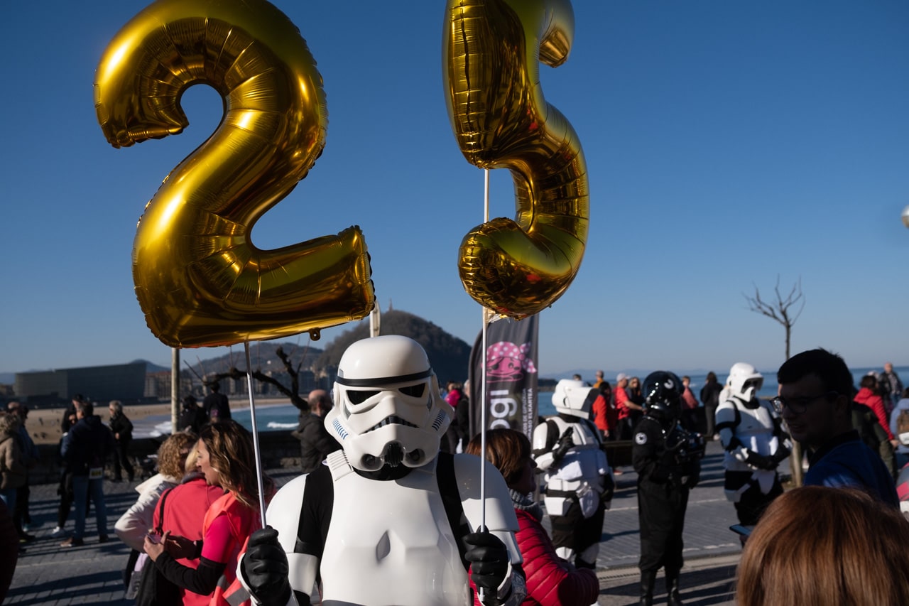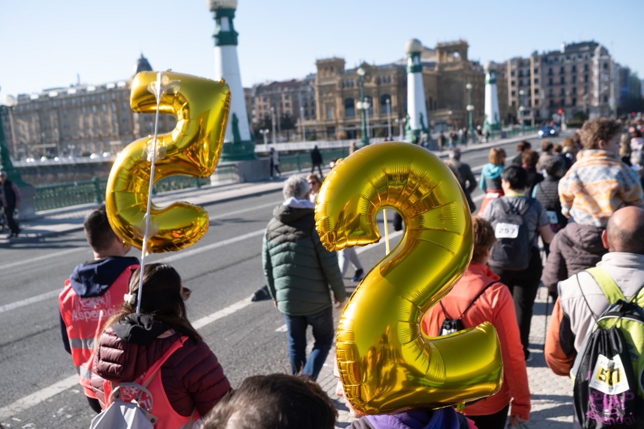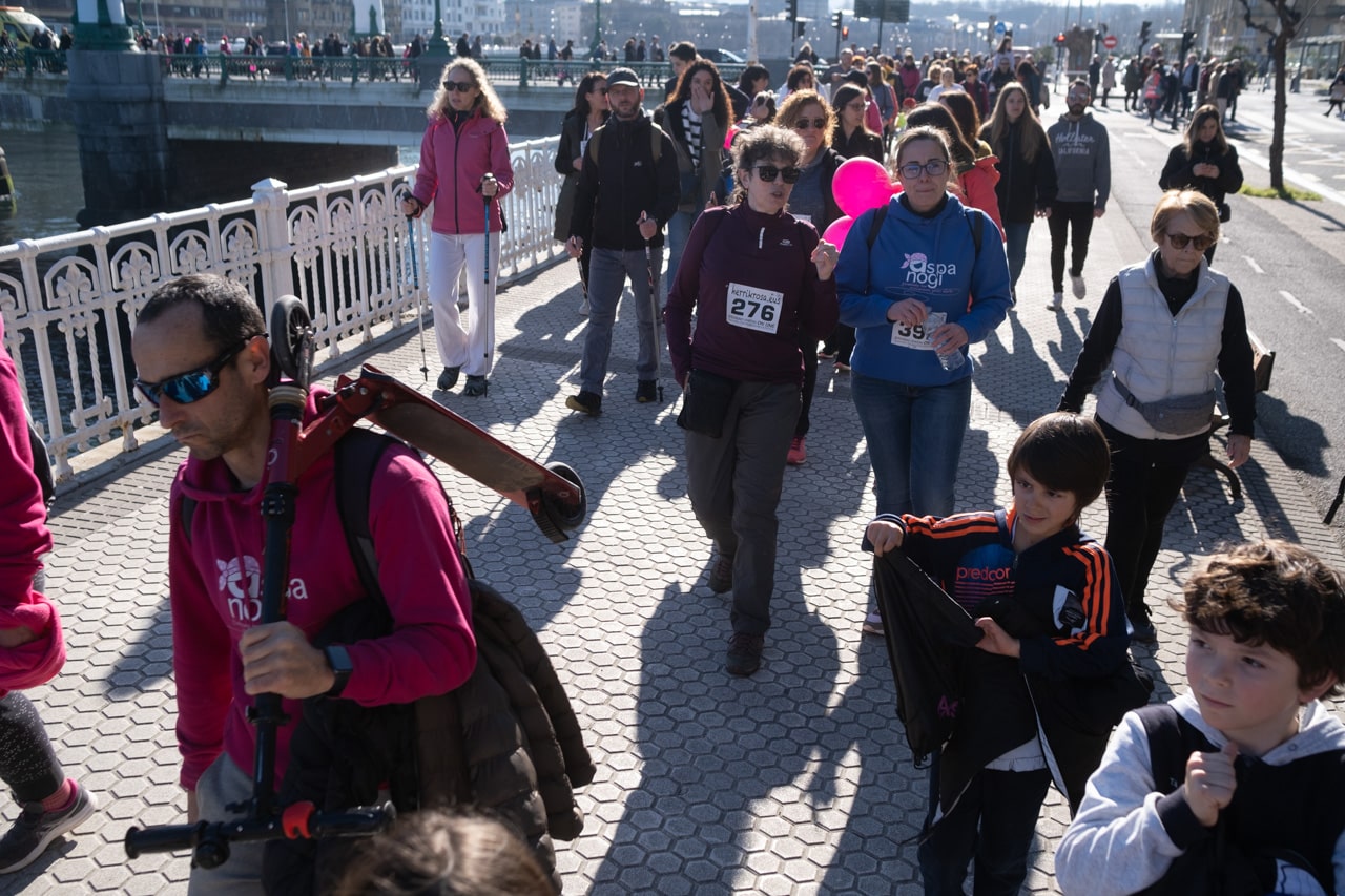 Cerca de un millar de personas ha participado este domingo en la X Marcha Nórdica de ASPANOGI, que ha sido más festiva que nunca con el sol, la batucada y los míticos personajes de Star Wars dando la salida en Sagüés. La asociación de padres de niños oncológicos de Gipuzkoa ha cumplido 25 años con mucho por hacer pero con el respaldo social e institucional y con la mente puesta en la investigación y sus resultados.