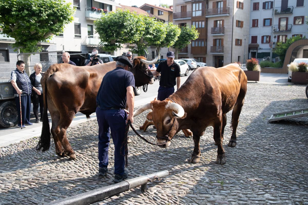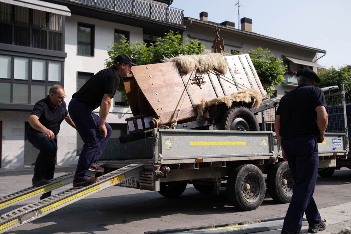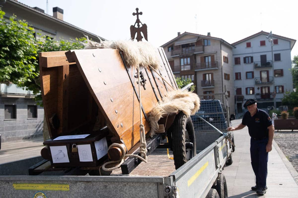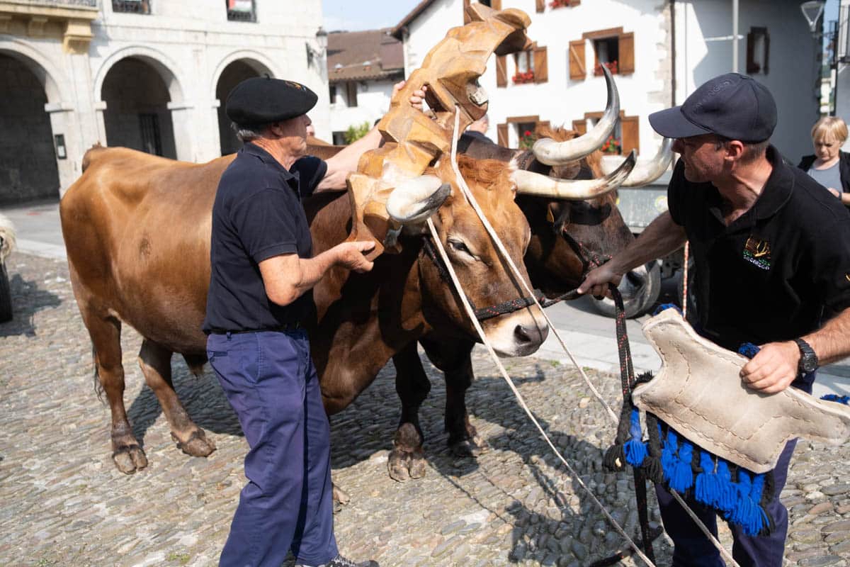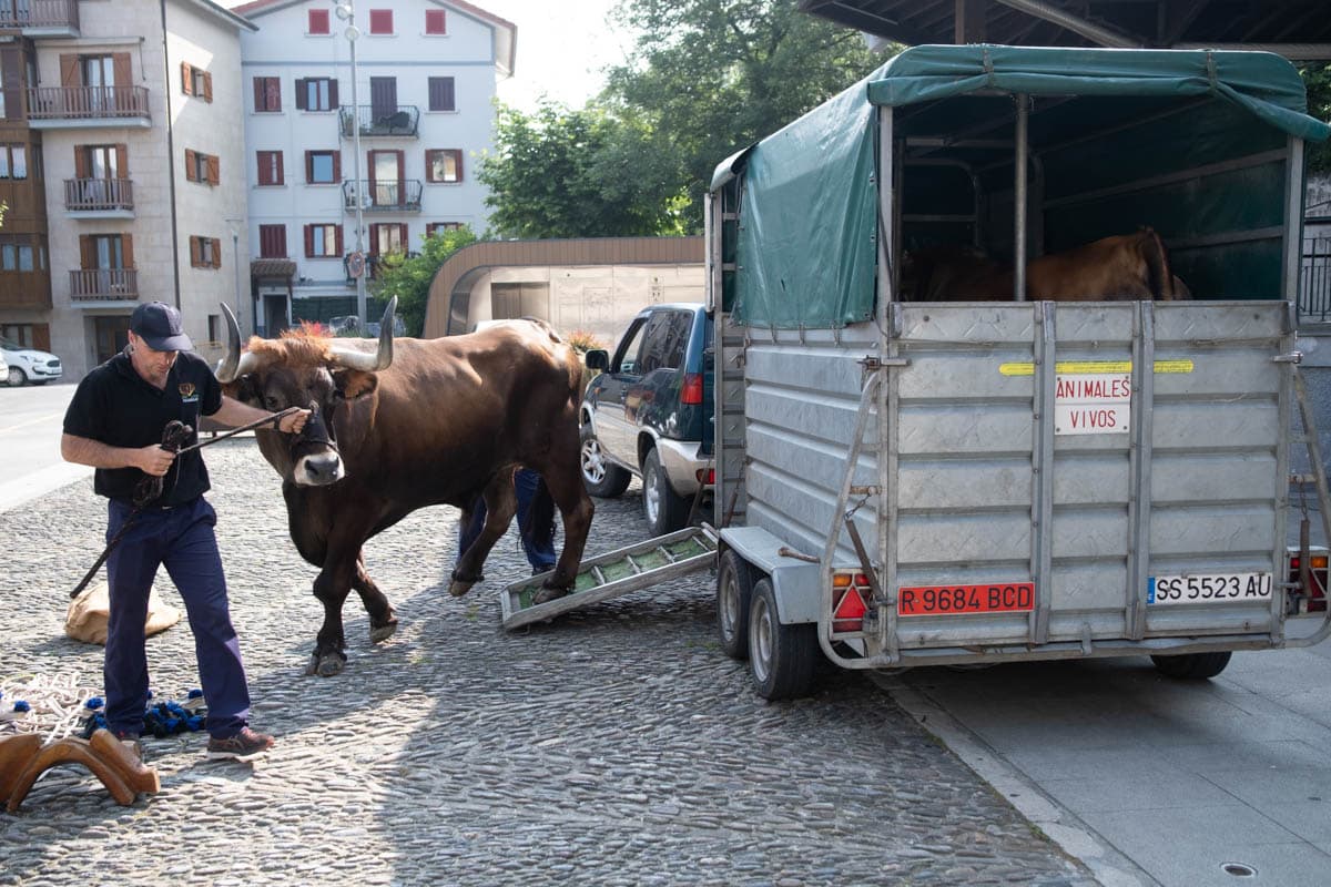 Una carreta tirada por bueyes partió este lunes desde Albaola, en Pasaia, rumbo al Santuario de San Miguel de Aralar, cargada con las réplicas de las puertas quemadas del templo, que fueron destruidas en un ataque el pasado octubre. Las imágenes son del paso hoy por Astigarraga.