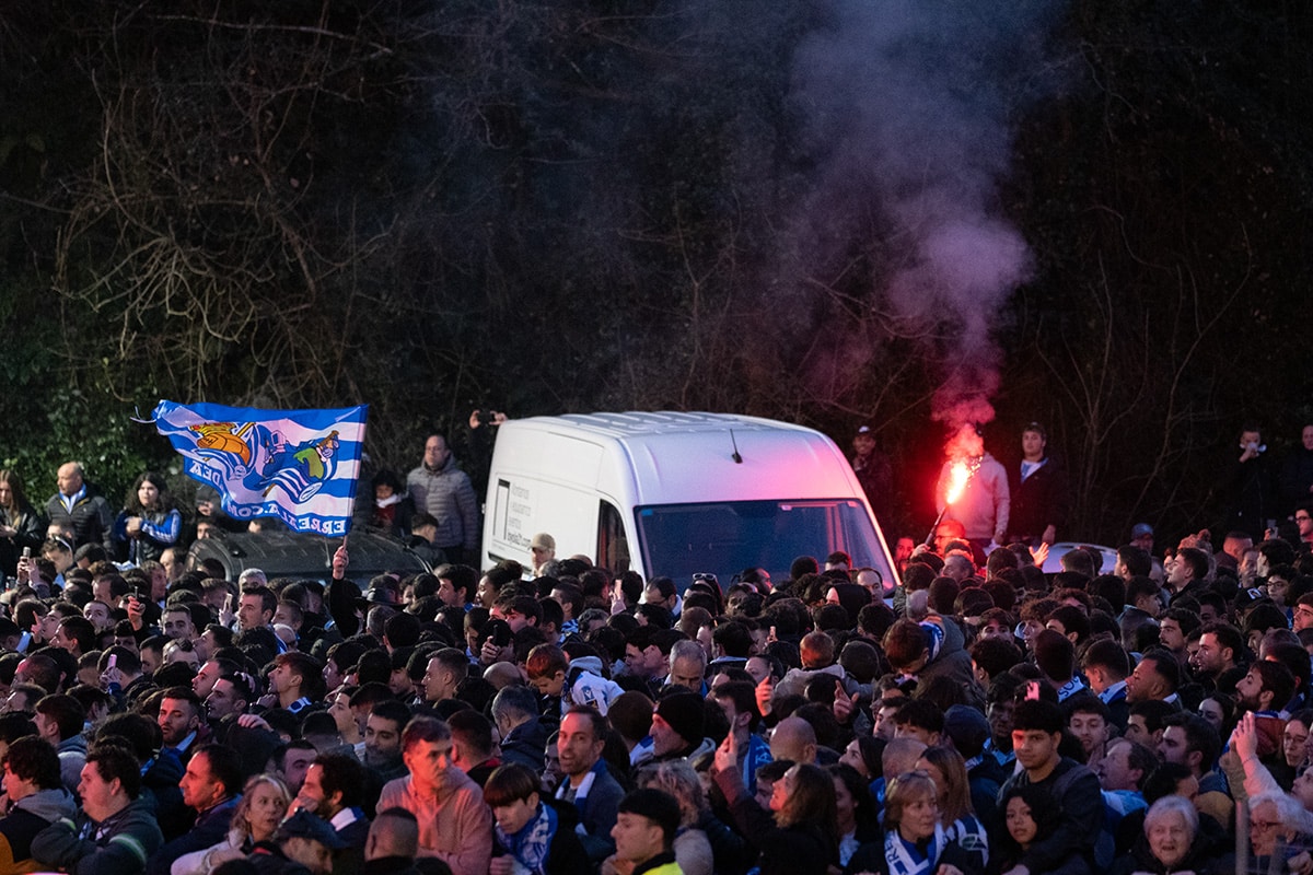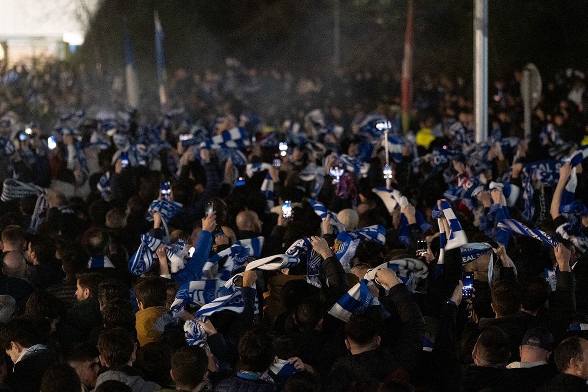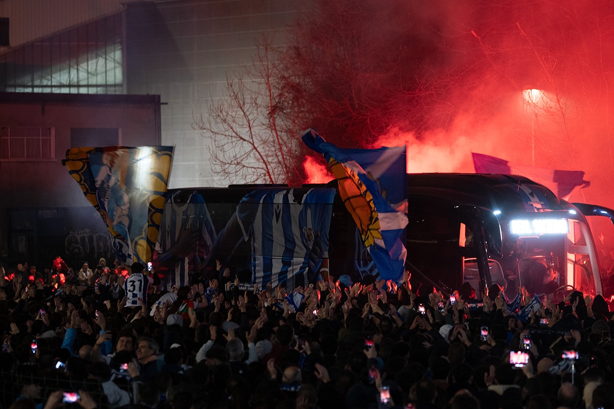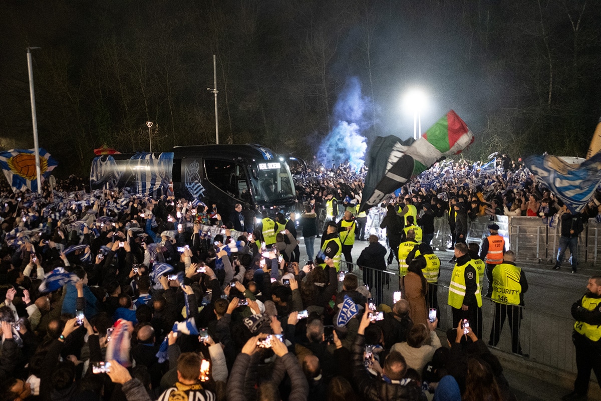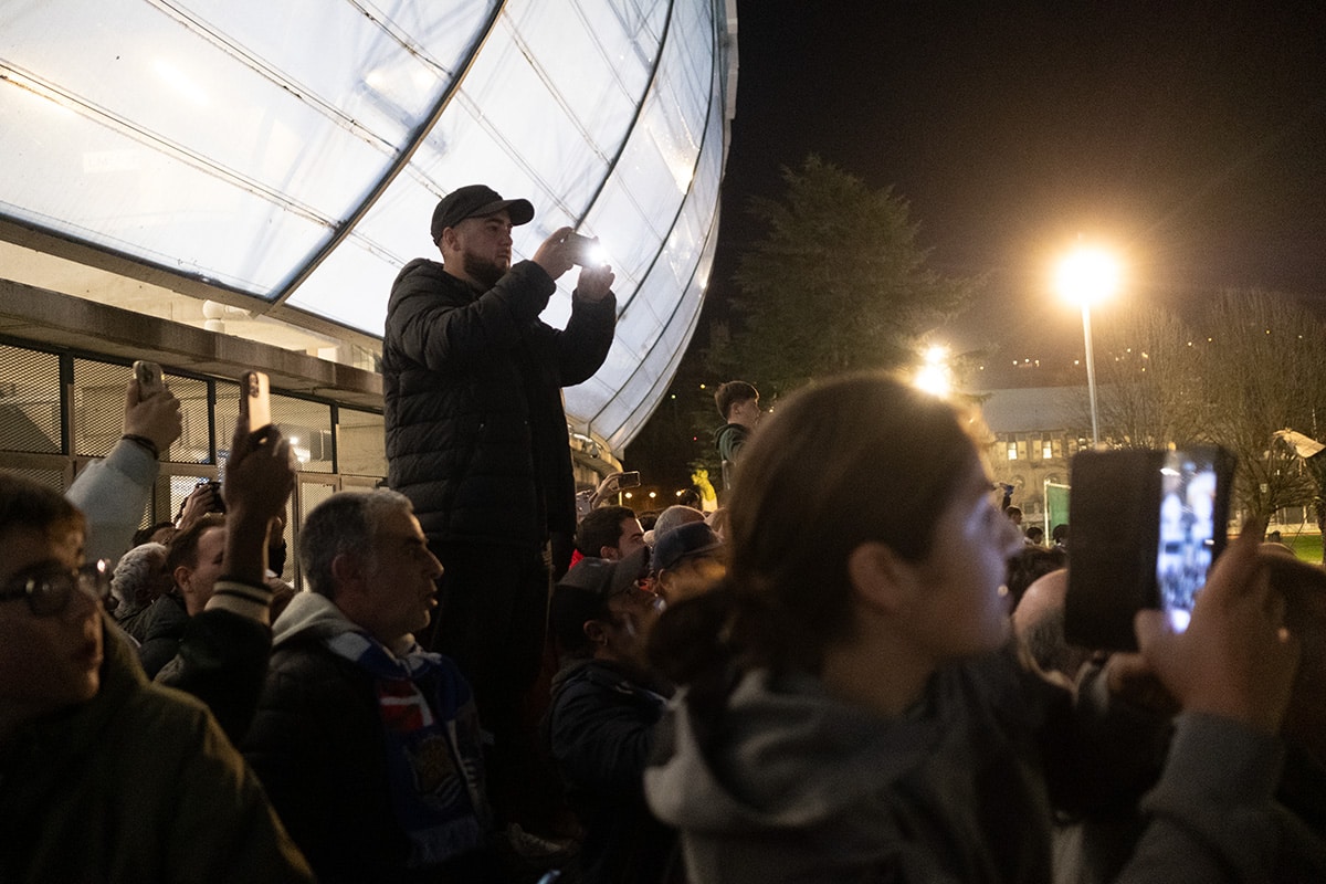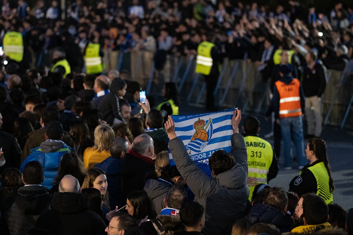 La afición de la Real Sociedad en Anoeta recibiendo al equipo. Foto: Santiago Farizano