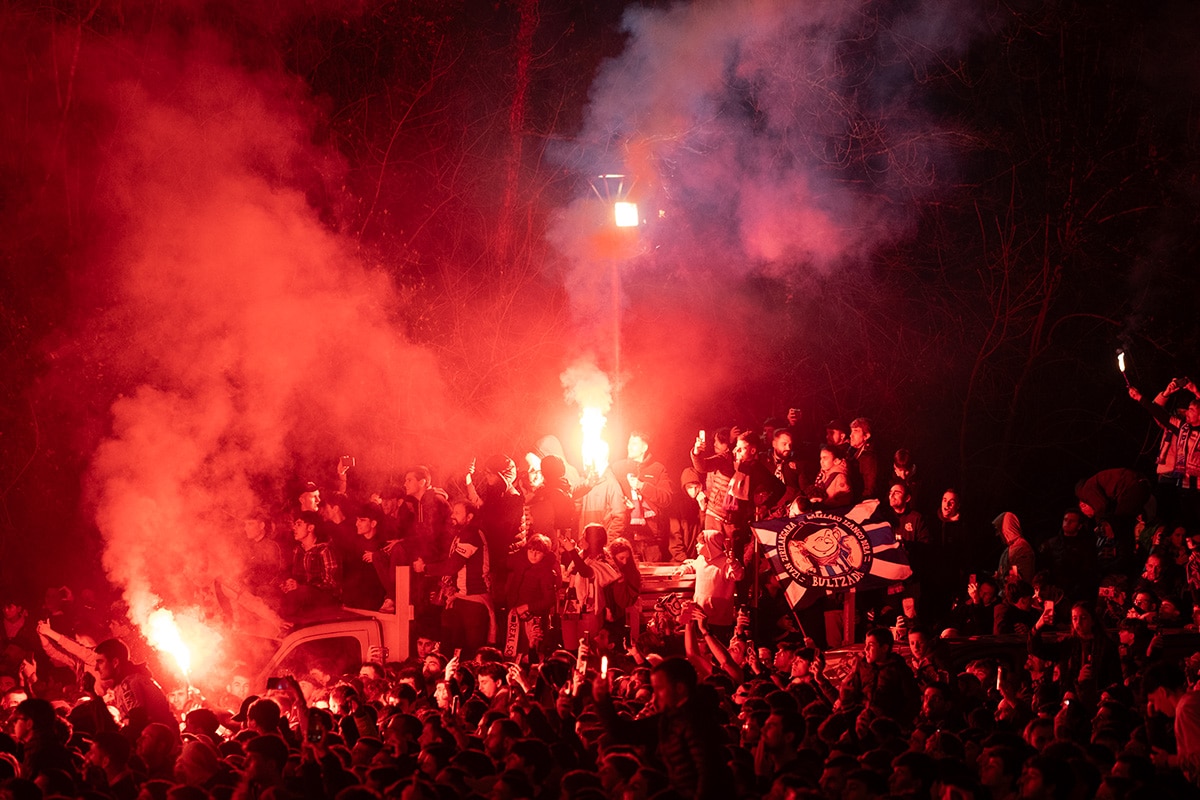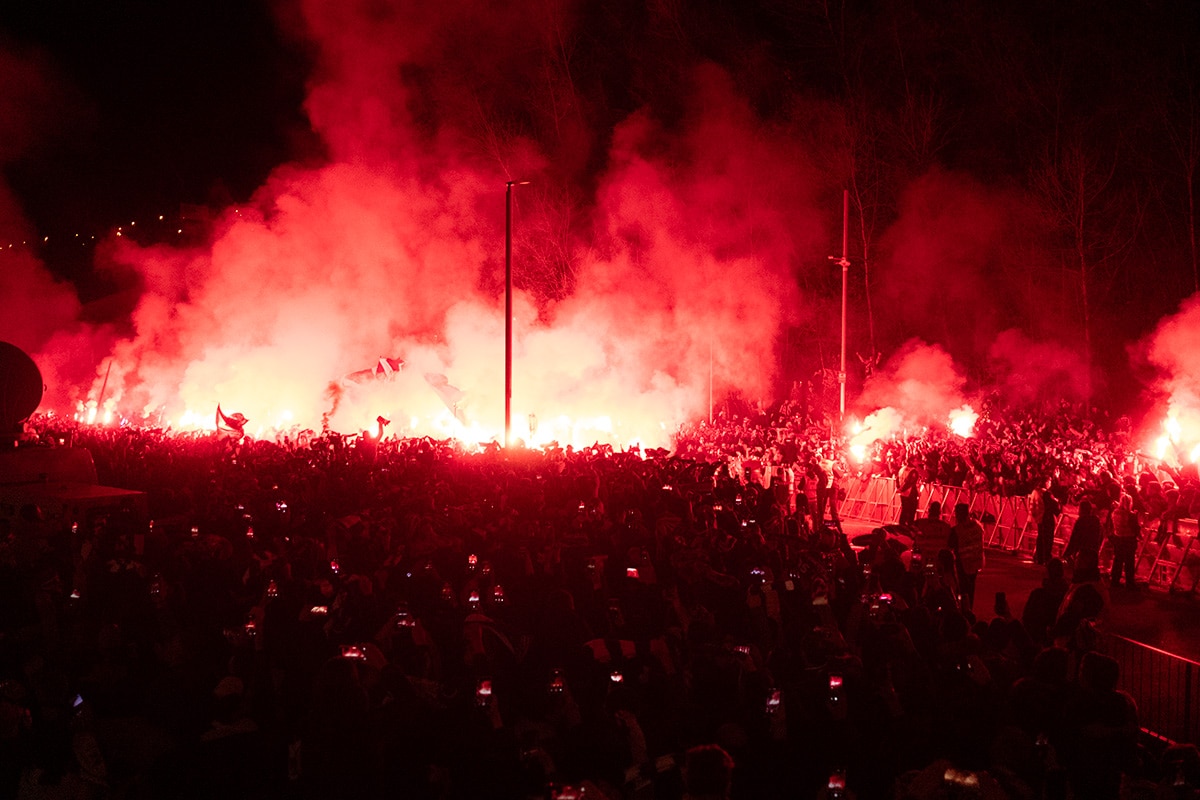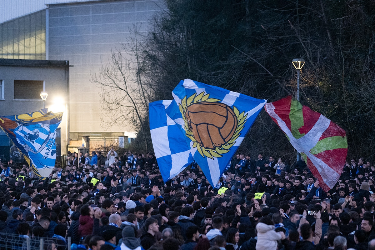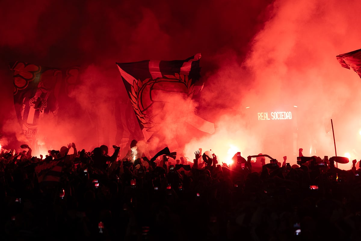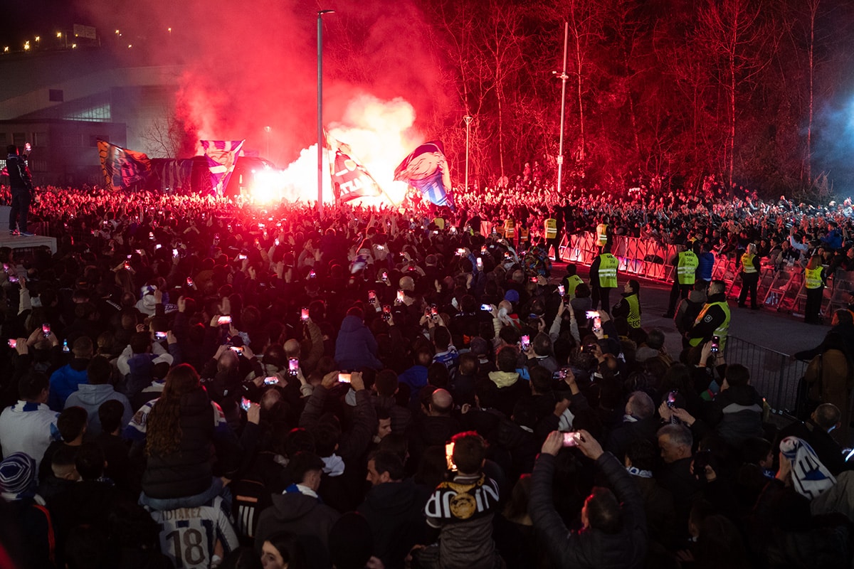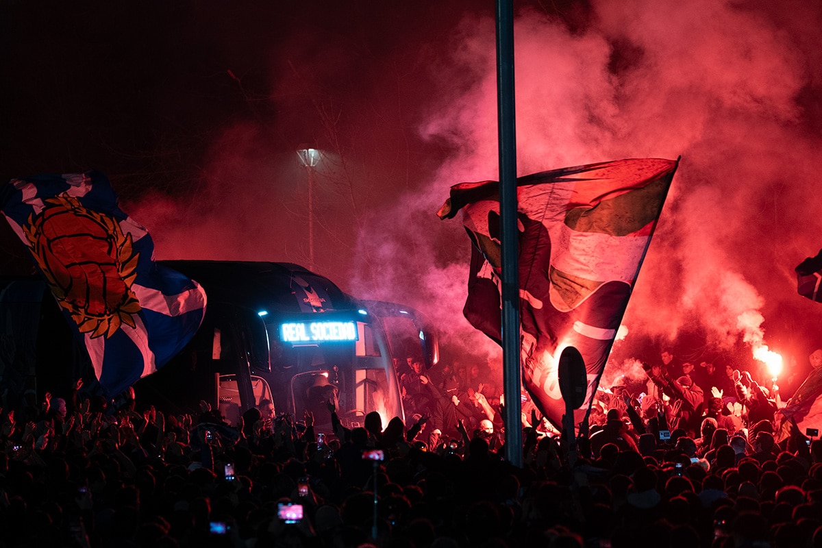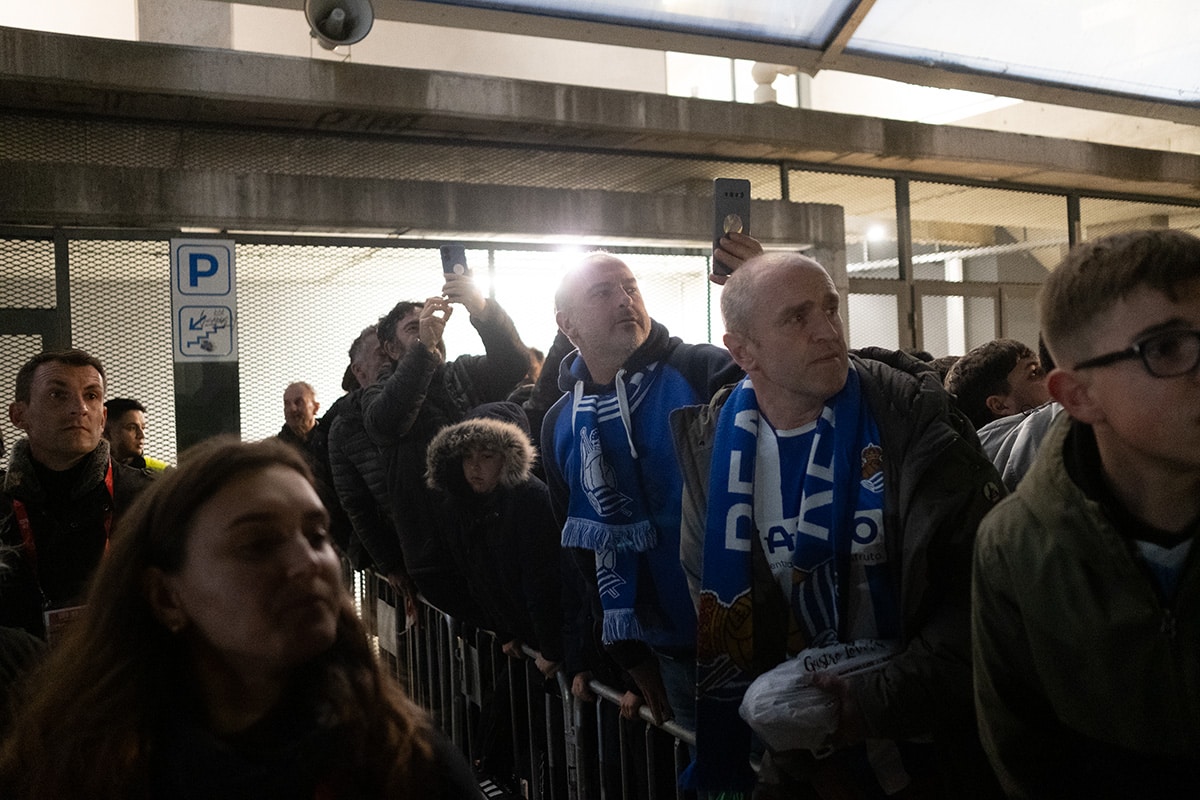 La afición de la Real Sociedad en Anoeta recibiendo al equipo. Foto: Santiago Farizano