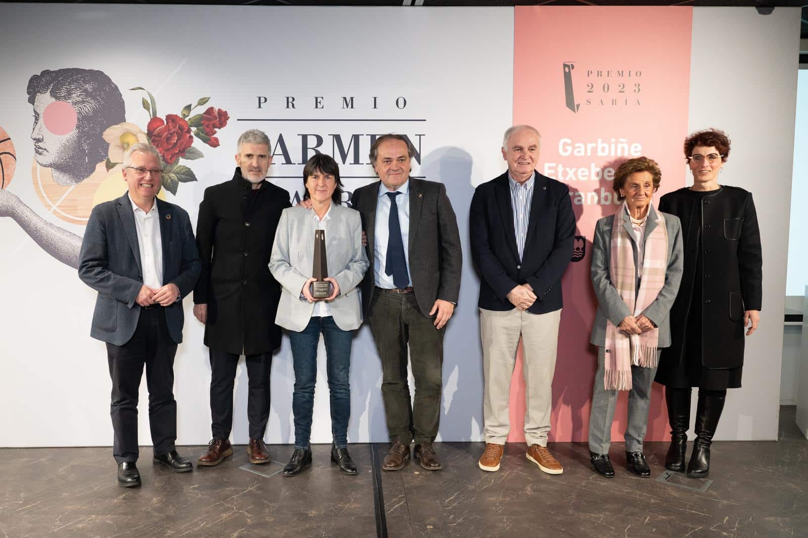 Garbiñe Etxeberria Aranburu se suma así, a la relación de mujeres galardonadas con el Carmen Adarraga: Coro Fuentes, Mari Ayestarán, las Raquetistas, Nieves Alza, Arantza del Puerto, Carmen Diez Mintegui y Azu Muguruza. Todas ellas, mujeres que lideran un movimiento, un estilo de vida y un cambio de rumbo en la historia.