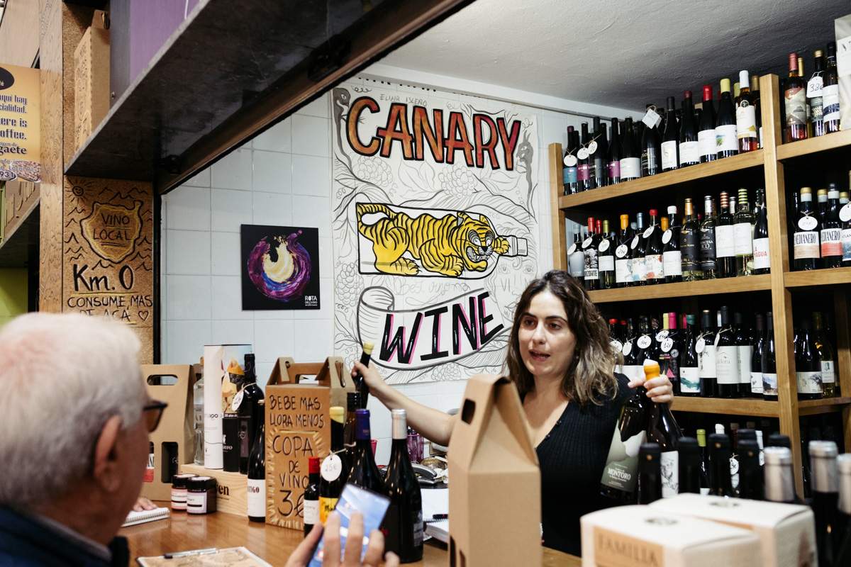 Dos opciones (de las muchas que hay) para acercarnos al vino canario sin salir de Las Palmas: hemos visitado Vinófilos, una vinoteca con restaurante en el barrio de Triana en la que encontramos una enorme variedad de caldos tanto locales como foráneos. Y por lo singular vale la pena Canary Wine, una pequeña vinoteca que vende exclusivamente vino de las islas y que está dentro del imperdible mercado central, en el barrio de Vegueta. Es una experiencia beberse una copa allí mismo mirando a la gente pasar con frutas, carnes y pescados, a los repartidores entrando y saliendo con mercancías y todo el «ruido» de un mercado con mucha vida.