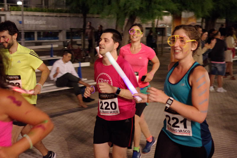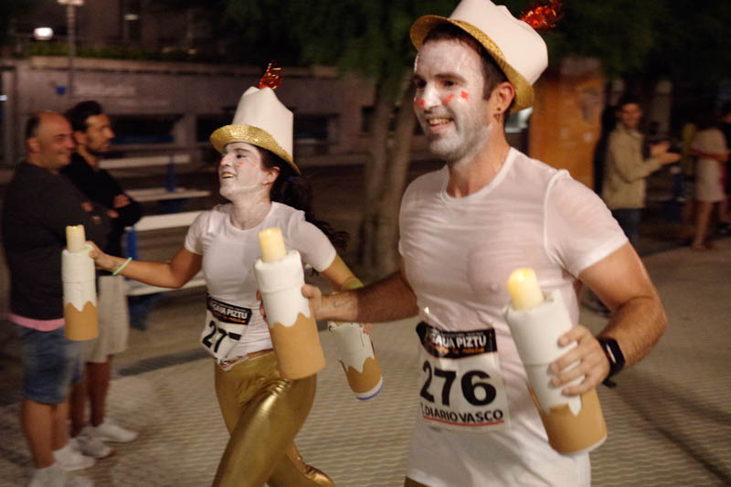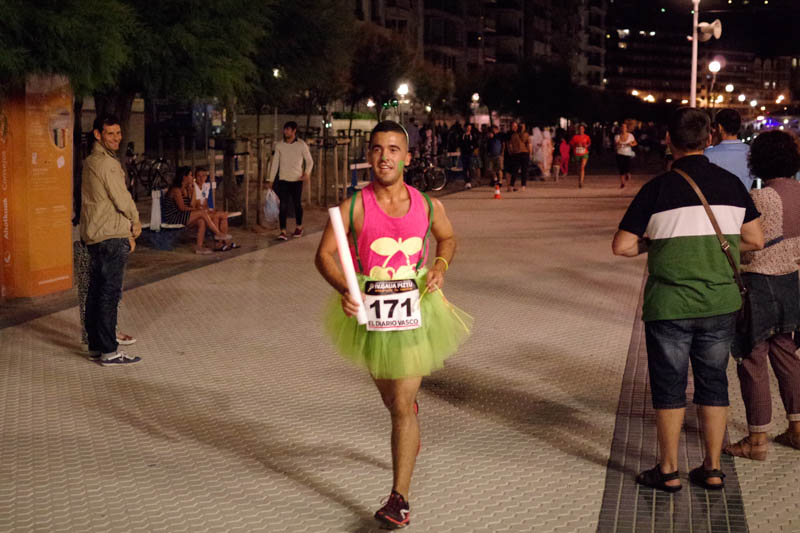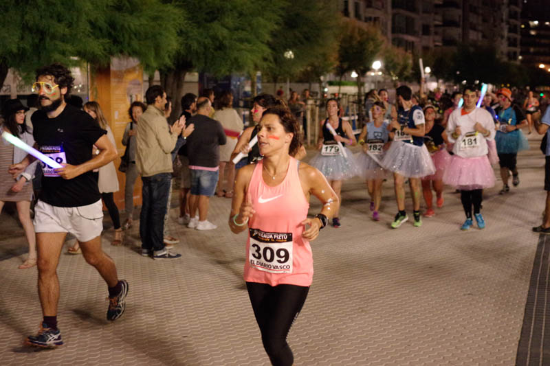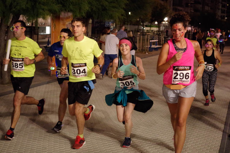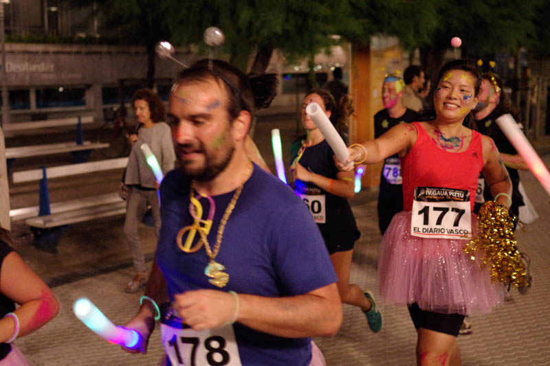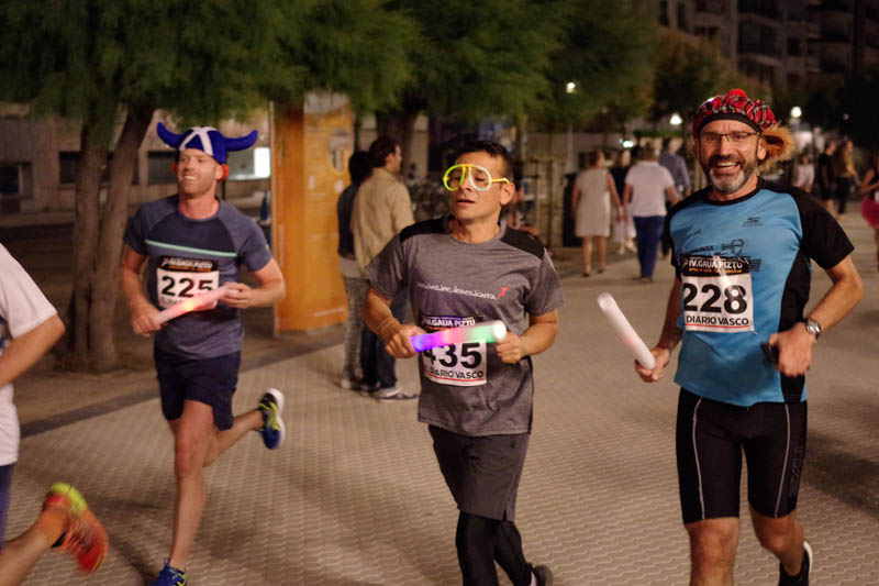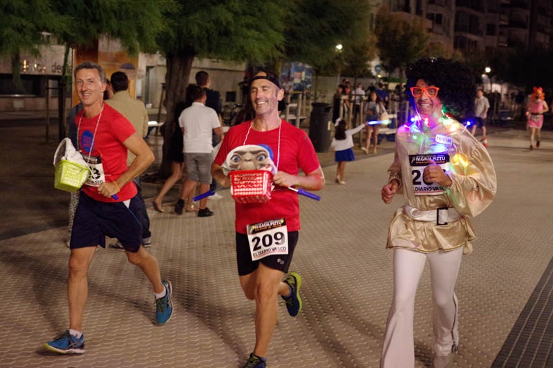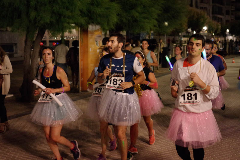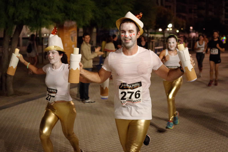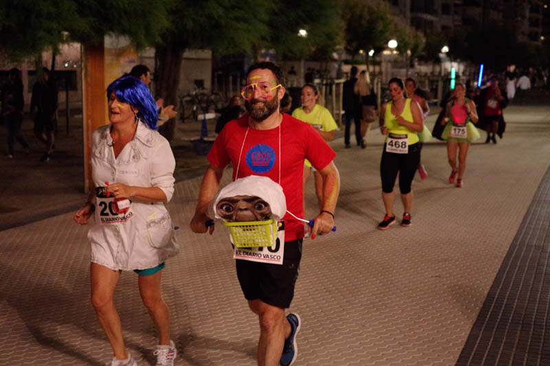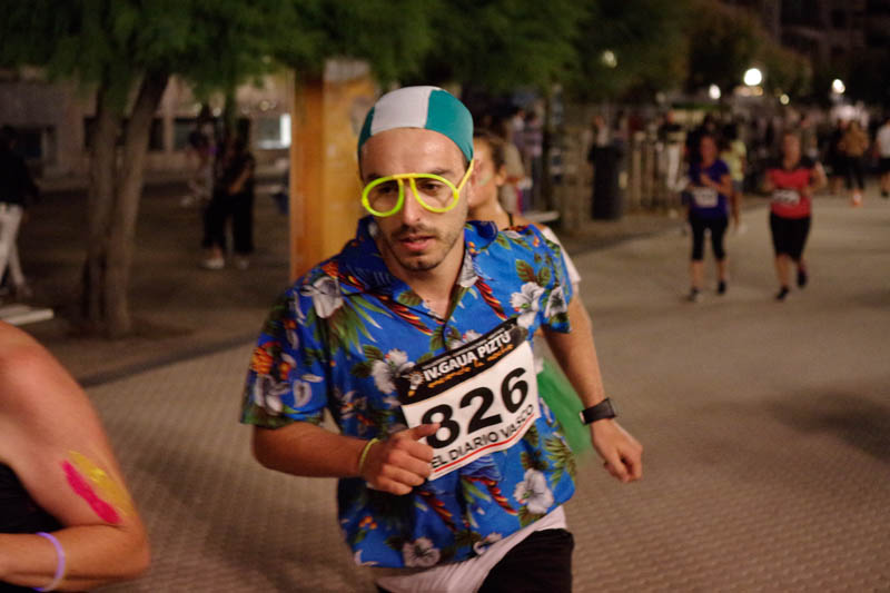 Cientos de personas mezclaron fiesta y deporte anoche en una Gaua Piztu (Enciende la noche) que gana adeptos y en que se vieron ‘atletas’ para todos los gustos: los ‘profesionales’ fieles a toda carrera que se precie, las cuadrillas que terminaron de bares por la Parte Vieja, familias con niños a paso tranquilo y galácticos, ¡claro que sí!, porque cada vez se anima más gente a disfrazarse.