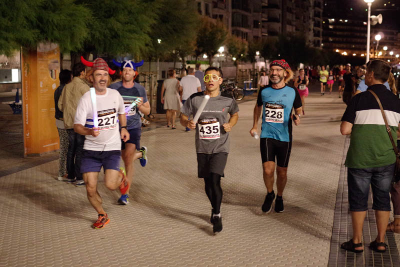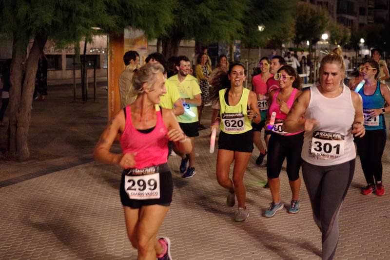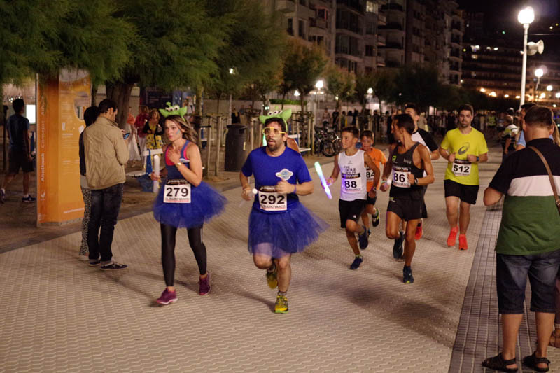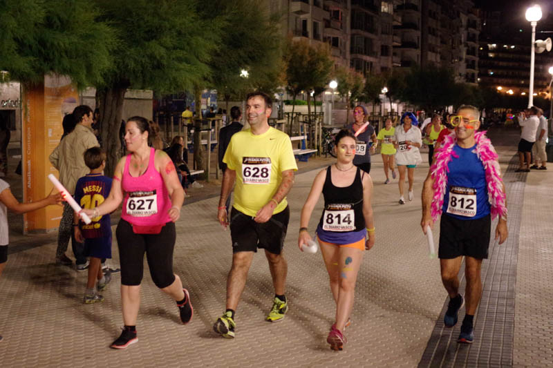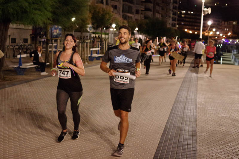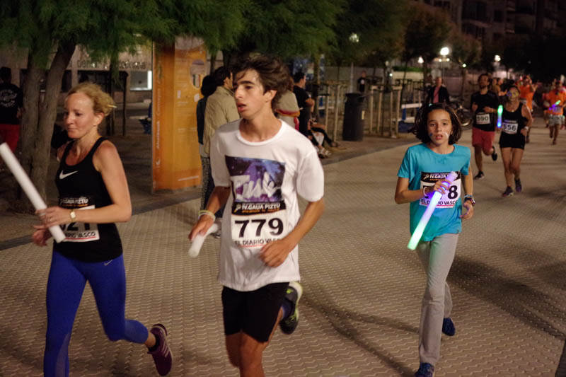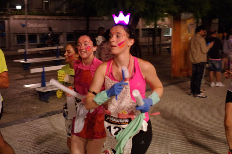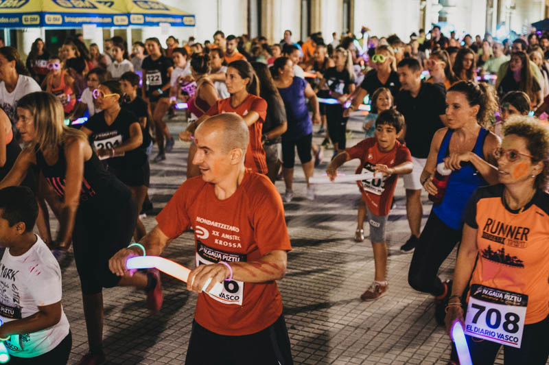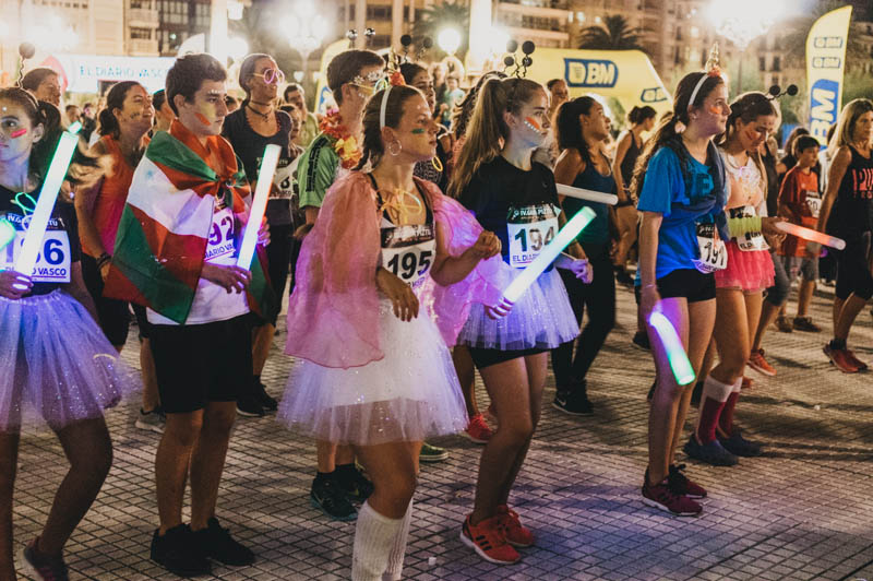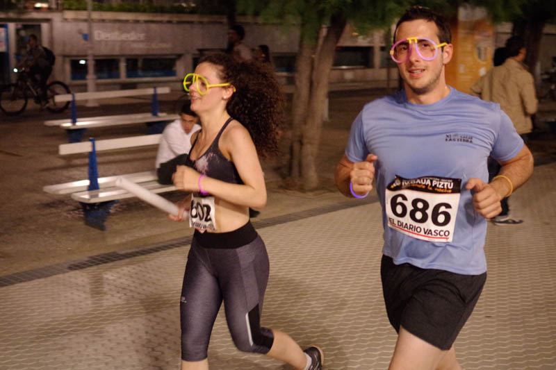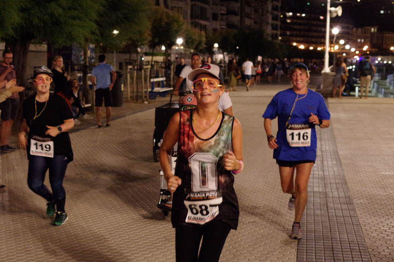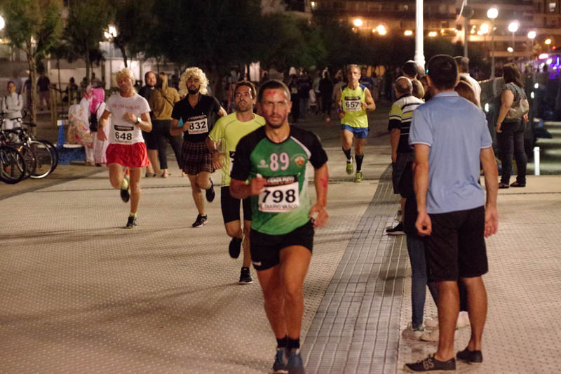 Cientos de personas mezclaron fiesta y deporte anoche en una Gaua Piztu (Enciende la noche) que gana adeptos y en que se vieron ‘atletas’ para todos los gustos: los ‘profesionales’ fieles a toda carrera que se precie, las cuadrillas que terminaron de bares por la Parte Vieja, familias con niños a paso tranquilo y galácticos, ¡claro que sí!, porque cada vez se anima más gente a disfrazarse.