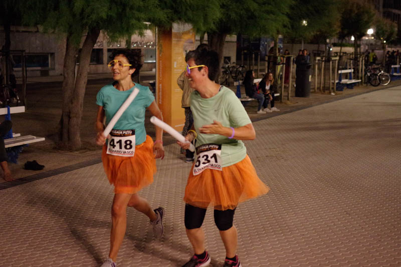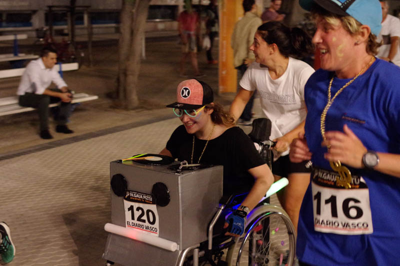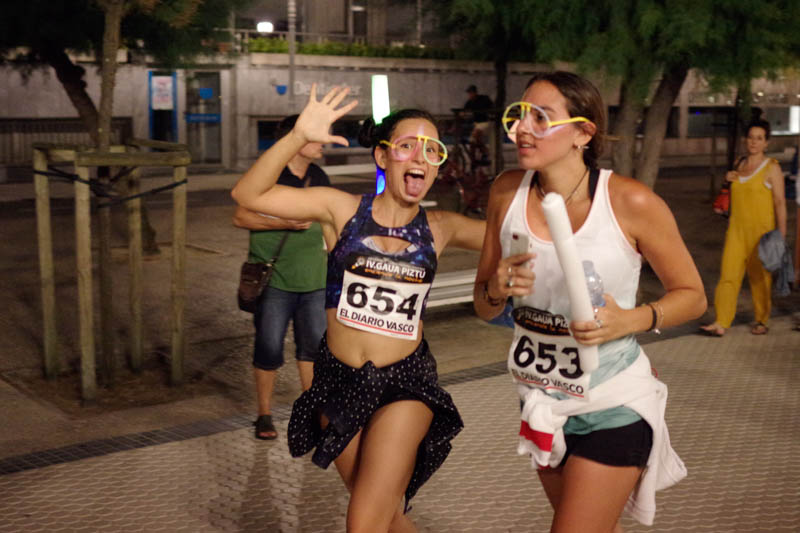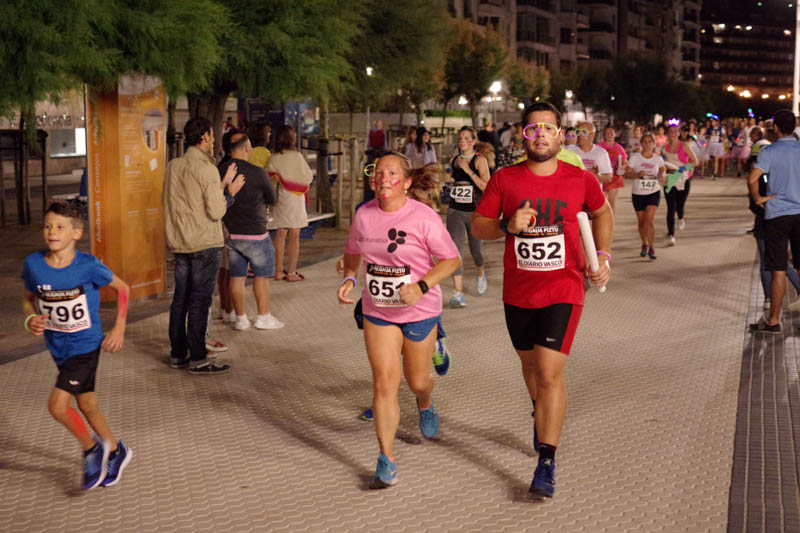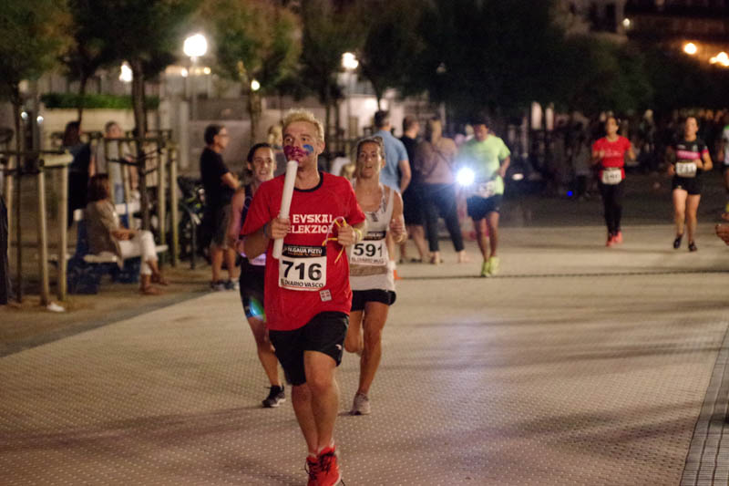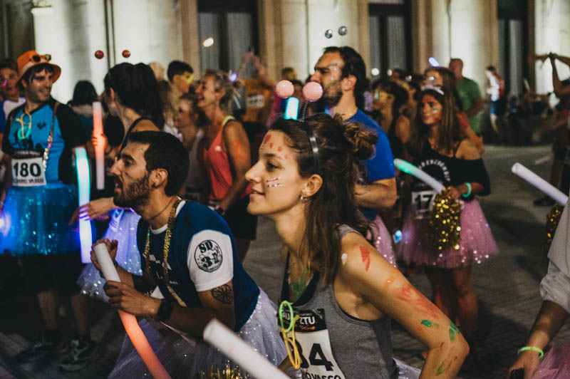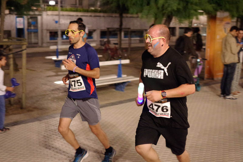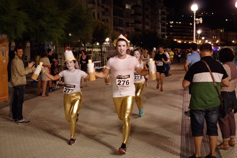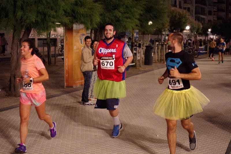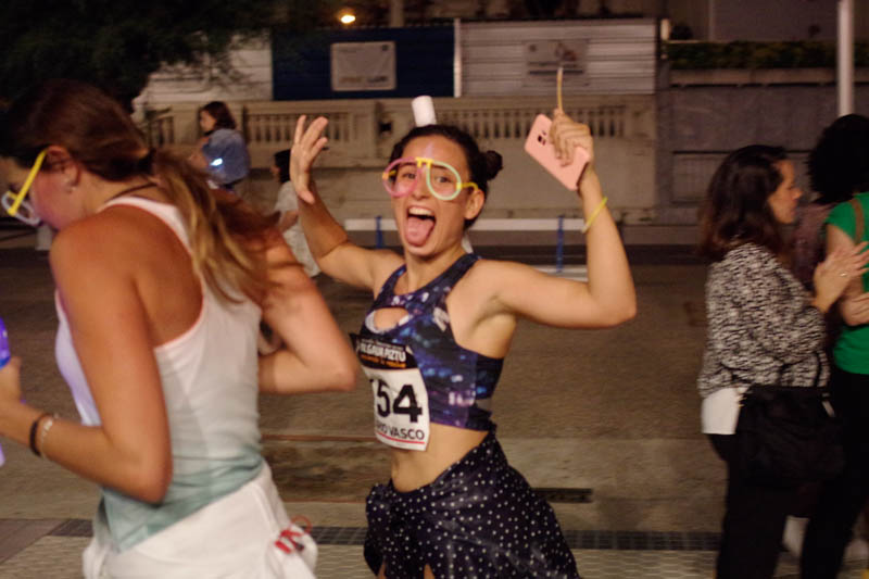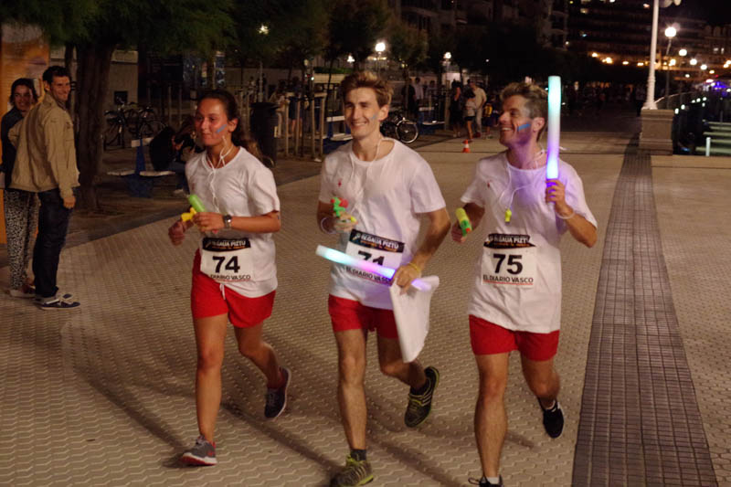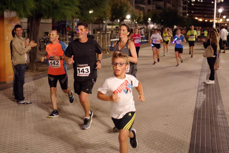 Cientos de personas mezclaron fiesta y deporte anoche en una Gaua Piztu (Enciende la noche) que gana adeptos y en que se vieron ‘atletas’ para todos los gustos: los ‘profesionales’ fieles a toda carrera que se precie, las cuadrillas que terminaron de bares por la Parte Vieja, familias con niños a paso tranquilo y galácticos, ¡claro que sí!, porque cada vez se anima más gente a disfrazarse.