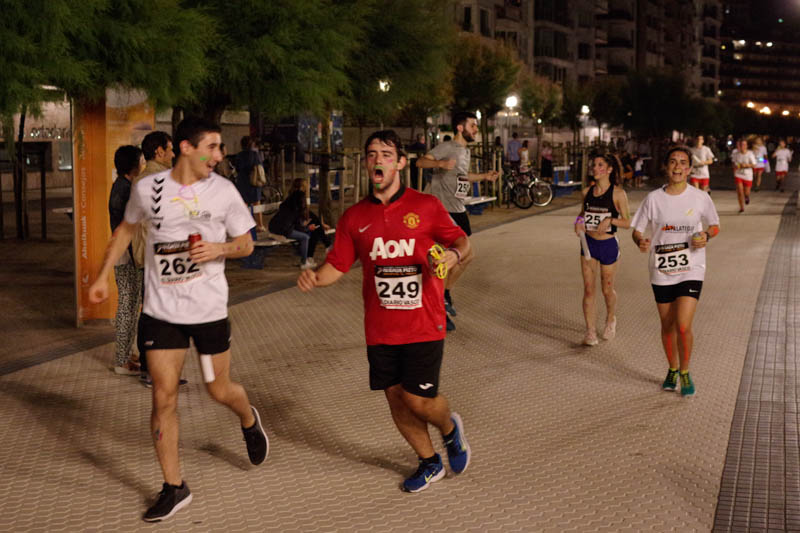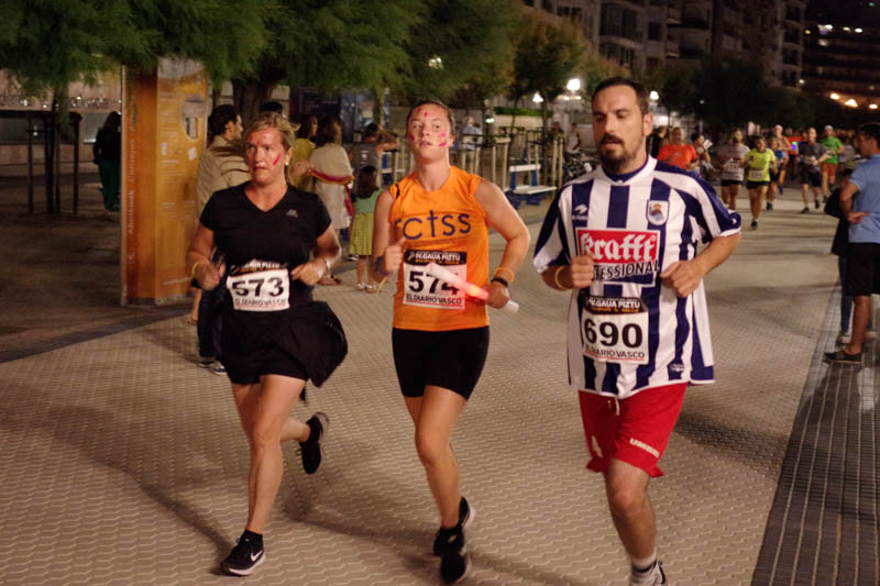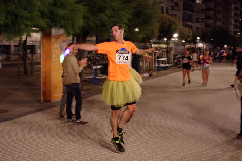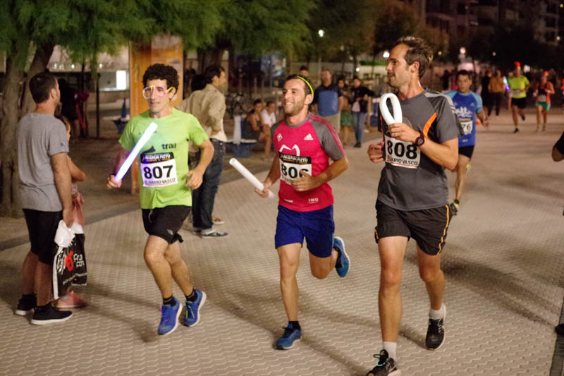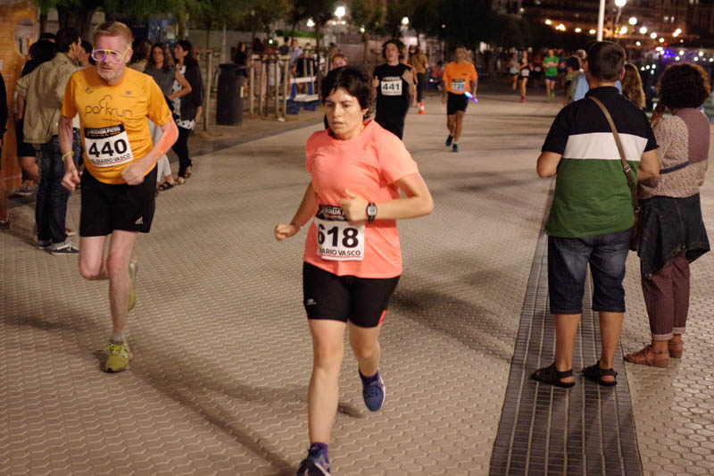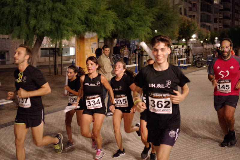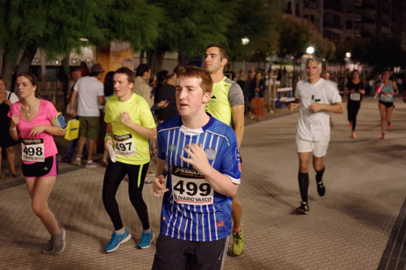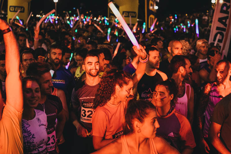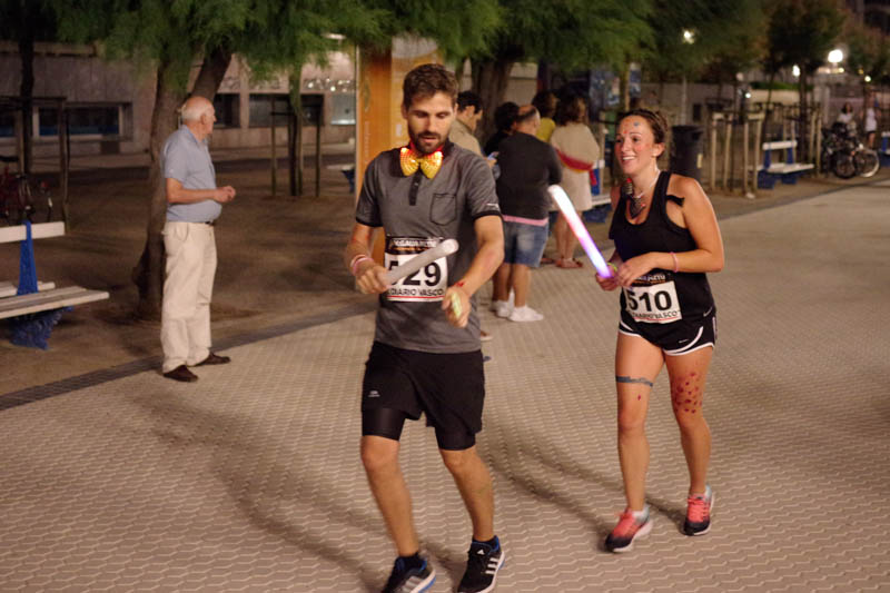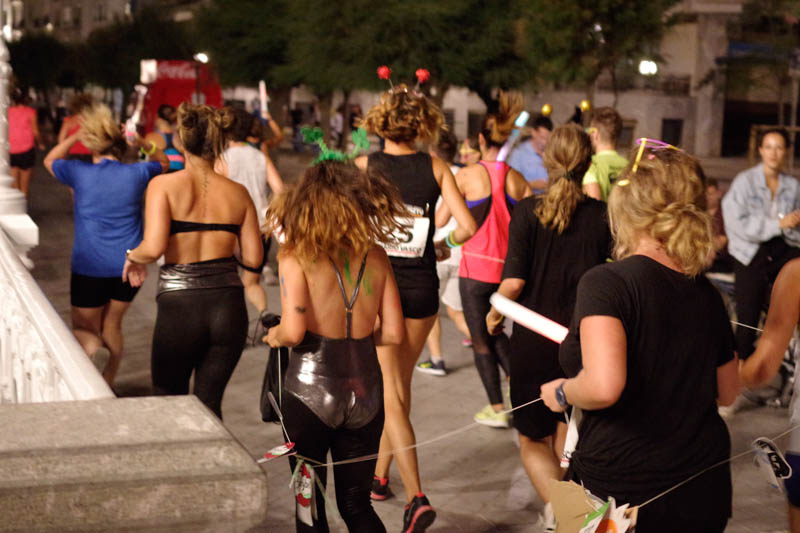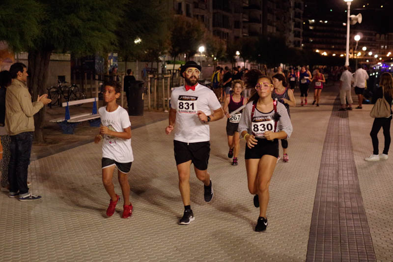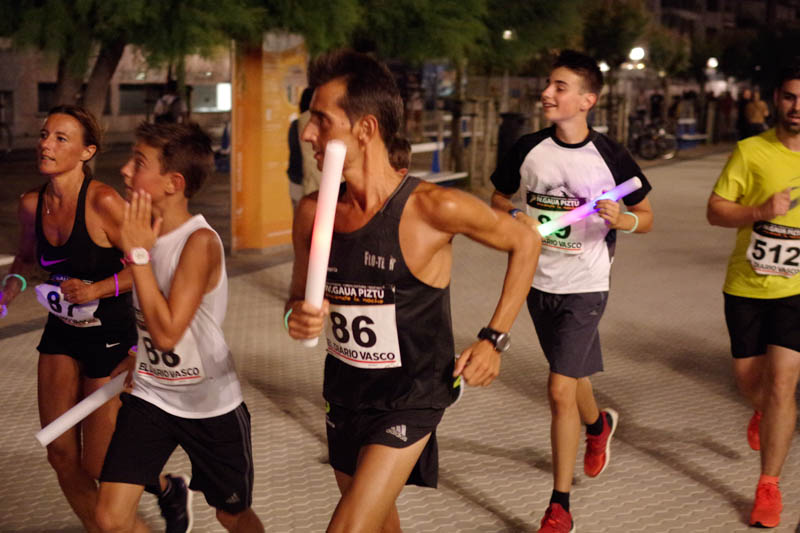 Cientos de personas mezclaron fiesta y deporte anoche en una Gaua Piztu (Enciende la noche) que gana adeptos y en que se vieron ‘atletas’ para todos los gustos: los ‘profesionales’ fieles a toda carrera que se precie, las cuadrillas que terminaron de bares por la Parte Vieja, familias con niños a paso tranquilo y galácticos, ¡claro que sí!, porque cada vez se anima más gente a disfrazarse.