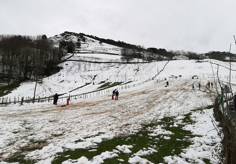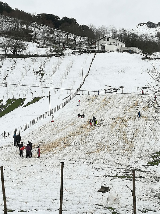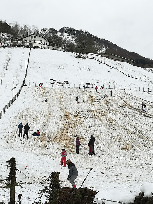 Mientras parte importante de los gipuzkoanos se sacude la nieve de estos dos días tan intensos, otros disfrutan de los últimos vestigios de la nevada, que también ha traído momentos muy lúdicos al Territorio.