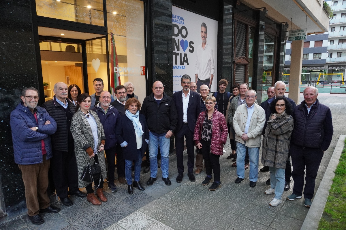 El alcalde de Donostia y candidato a la reelección por EAJ-PNV, Eneko Goia, compañado por el presidente del GBB Joseba Egibar, subrayó este viernes “la importancia del compromiso ciudadano para seguir construyendo de forma conjunta la Donostia del futuro”. A este respecto, recordó sus inicios de militancia con 16 años en el ahora renovado batzoki de Amara, “situado al lado de casa, donde nos formamos y participamos en innumerables actividades que se organizaban en el barrio”.