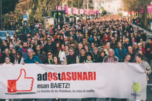 Con miles de personas en la calle, la plataforma GuraSOS ha vuelto a hacer gala de fuerza social esta tarde en Donostia. La manifestación anti incineradora de Zubieta ha partido del túnel del Antiguo pasadas las 17 y ha culminado una hora después en el Boulevard con el lema ‘Esan baietz adostasunari’. Son ya unas cuantas las marchas organizadas por GuraSOS para cambiar los planes de las instituciones y sin embargo, según lo previsto, la incineradora comenzará a funcionar en otoño. Con todo GuraSOS persiste en su empeño.