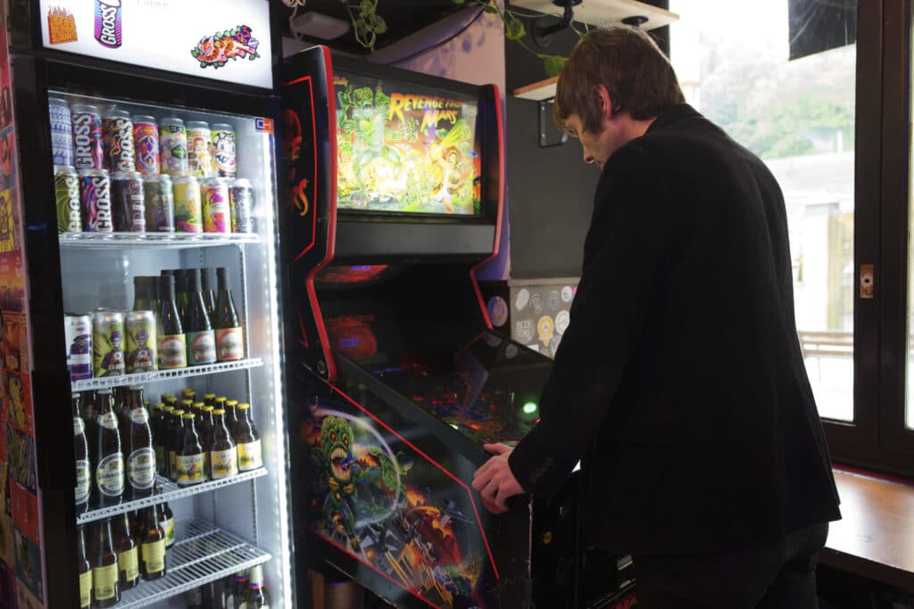 Con la calle San Bizente peatonalizada y las obras finiquitadas, la terraza es una de sus joyas. Ya en tiempos de pospandemia, se van a activar las propuestas musicales y habrá djs en el interior. El viernes pasado hubo un aperitivo con el dúo pinchadiscos Tworubias, ubicadas en una esquina del bar, entre la máquina de dardos y una bicicleta totalmente reciclada que asoma en el techo y está a la venta. Al otro lado hay una máquina recreativa pinball, junto a la ventana.