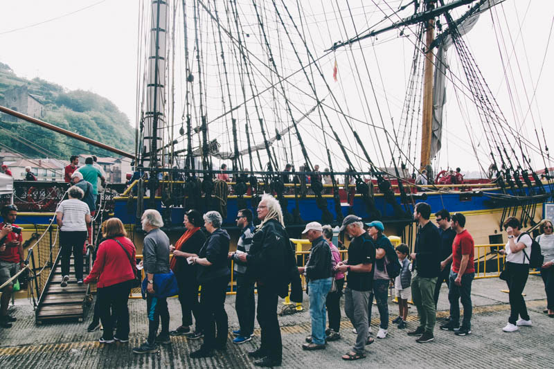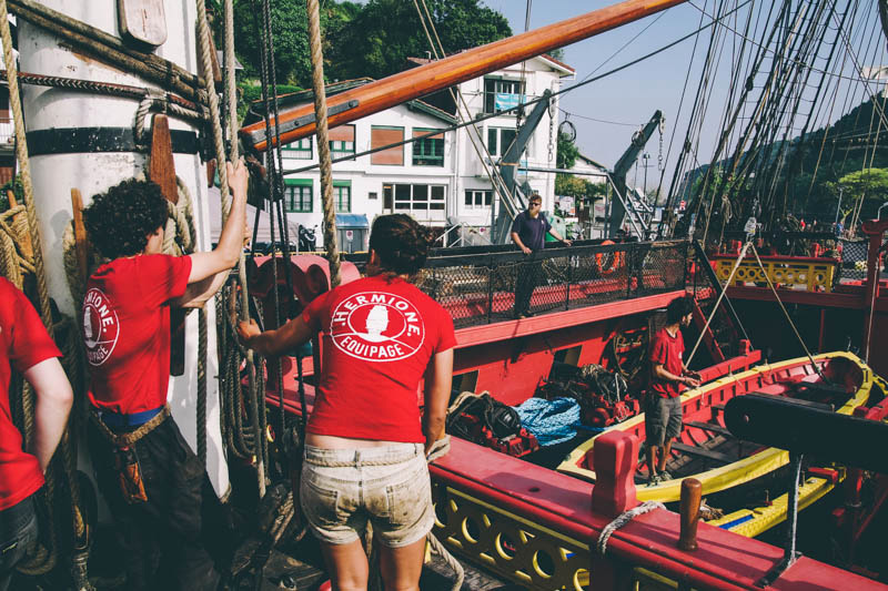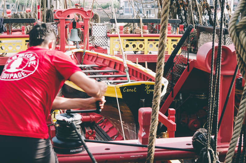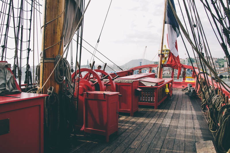 Las visitas al Hermione se reducen a la cubierta, con sus 26 cañones y sus enormes mástiles. Se trata de una nave de 66 metros de eslora, 11,24 metros de manga y 46,9 metros de calado aéreo. Y han salido 7.000 entradas a la venta para que el barco sea visitado de aquí al domingo (más información, aquí).
