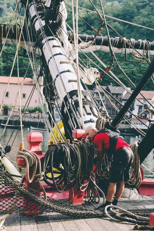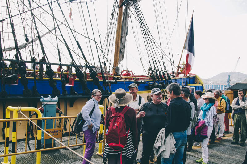 Han comenzado esta mañana las visitas al Hermione en Pasaia. «El más imponente de la colección de barcos históricos», ha expresado Xabier Agote, de Albaola, verdaderamente emocionado sobre la cubierta y con sobrados motivos. De hecho Albaola estuvo siempre muy pendiente de la reconstrucción de la nave, tal y como ha explicado Agote.