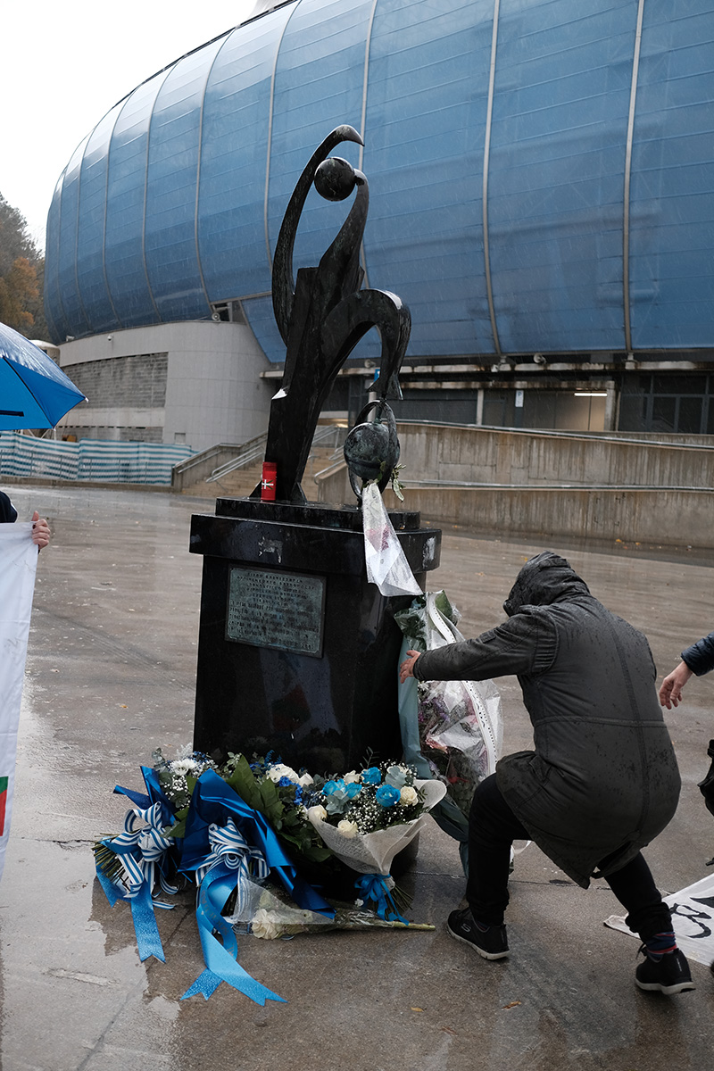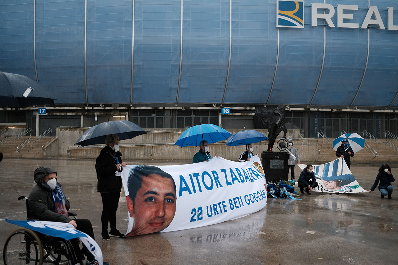 Han pasado 22 años desde su asesinato pero Aitor Zabaleta no se olvida. Realaren Lagun Taldeak ha vuelto a rendirle un homenaje este mediodía en el monolito en su memoria junto al estadio.