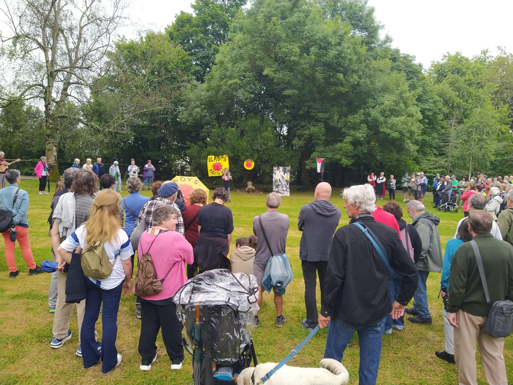 En esta ocasión el lema «Gerrarik ez!» (¡No a la guerra!) ha cobrado un especial protagonismo. El homenaje ha querido subrayar la vigencia del mensaje de Gladys frente a las violencias del presente, y en particular, ha recordado el genocidio que sufre el pueblo palestino en Gaza, como parte de un grito colectivo contra la barbarie y la impunidad.
