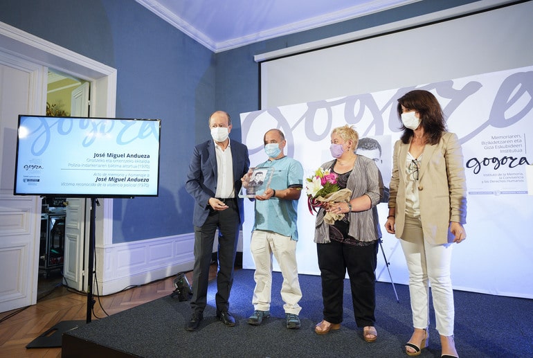 El Gobierno Vasco ha recordado y honrado en un acto celebrado junto a la familia a José Miguel Andueza, víctima reconocida de la violencia policial ilícita, en un acto organizado por el Instituto de la Memoria, la Convivencia y los Derechos Humanos Gogora, en la Casa de la Paz y los Derechos Humanos de Donostia. Andueza fue asesinado hace 50 años por un guardia civil tras una discusión motivada por un accidente de tráfico.
