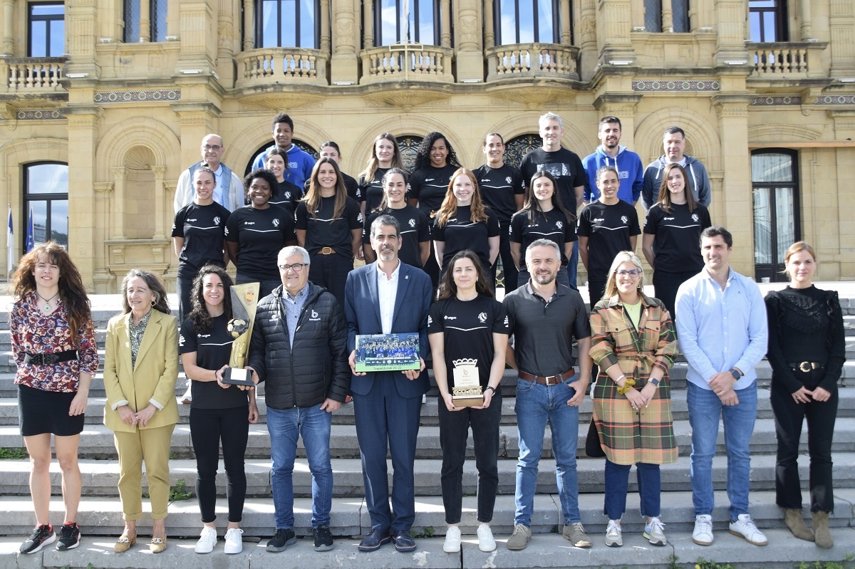 El Ayuntamiento de Donostia ha homenajeado esta tarde al equipo de balonmano femenino Super Amara Bera Bera. El acto, que ha tenido lugar en el salón de plenosn ha contado con la presencia del alcalde Eneko Goia y representantes de los distintos grupos municipales.