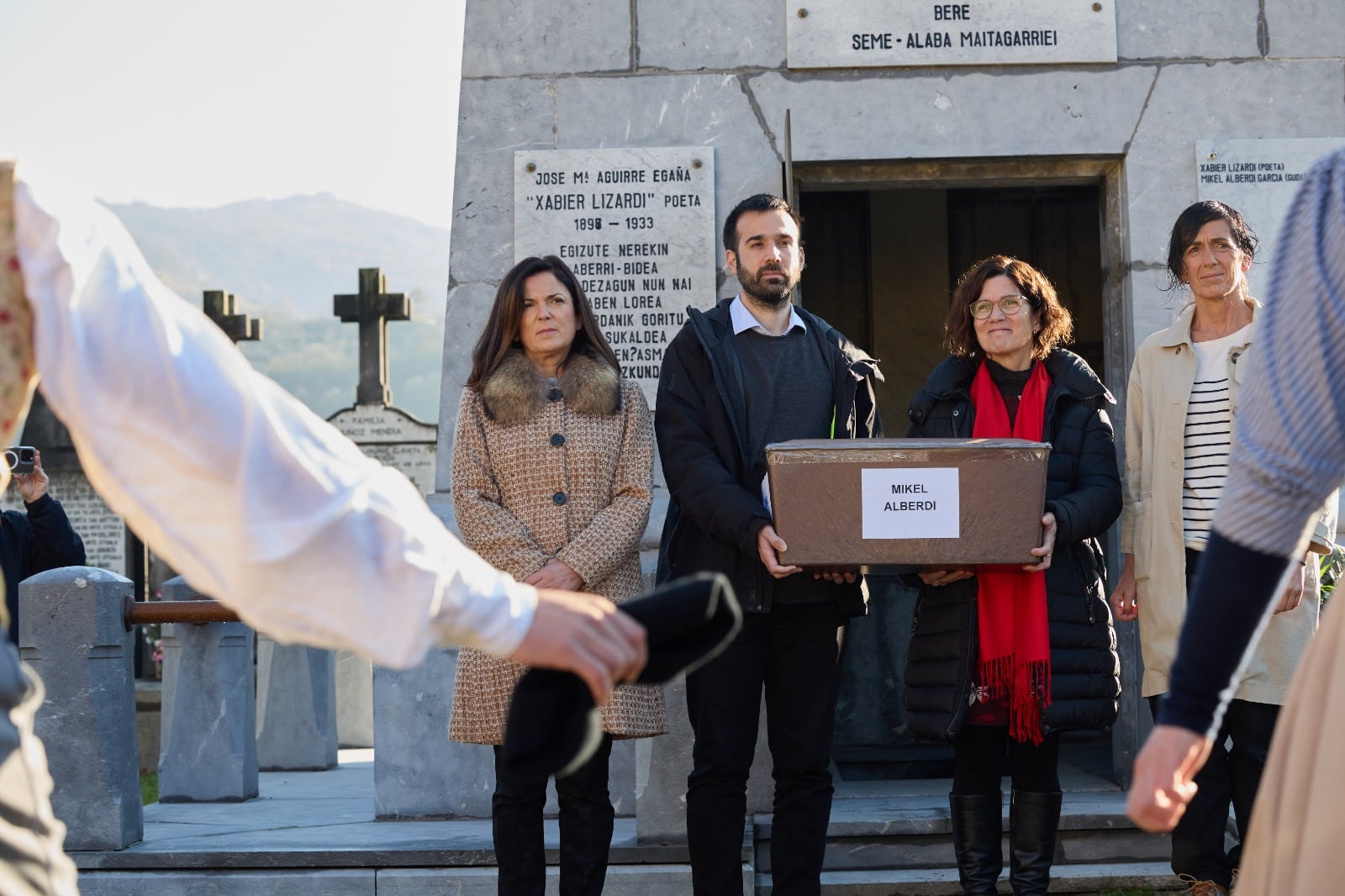 En el acto han intervenido también la alcaldesa de la localidad, Olatz Peon, y Nuria Alberdi, una de las nietas de Mikel Alberdi, que ha agradecido en nombre de la familia el que se hayan recuperado los restos de su abuelo, lo que les permite asimismo «recuperar su memoria y su historia personal».