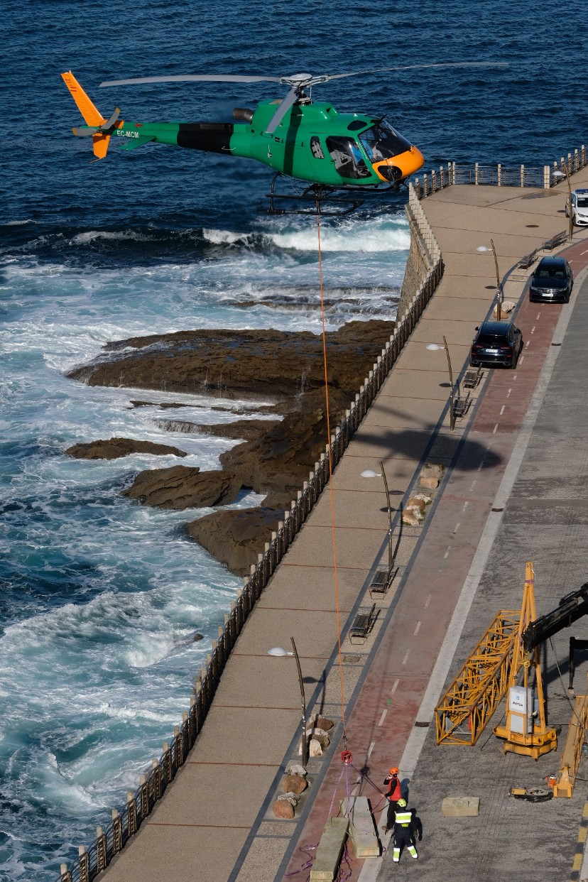 Un helicóptero está retirando desde primera hora la grúa con la que se han realizado los trabajos para la intervención artística de Cristina Iglesias en el interior del faro de la isla Santa Clara.