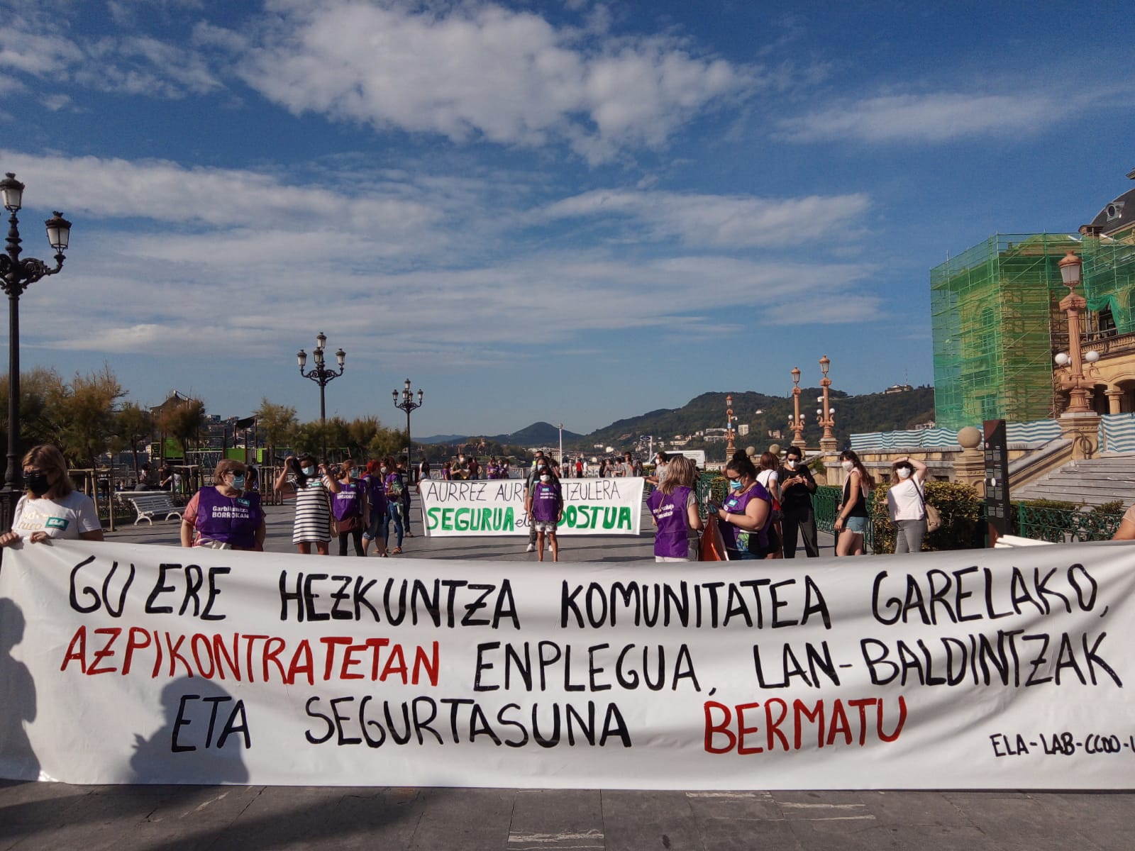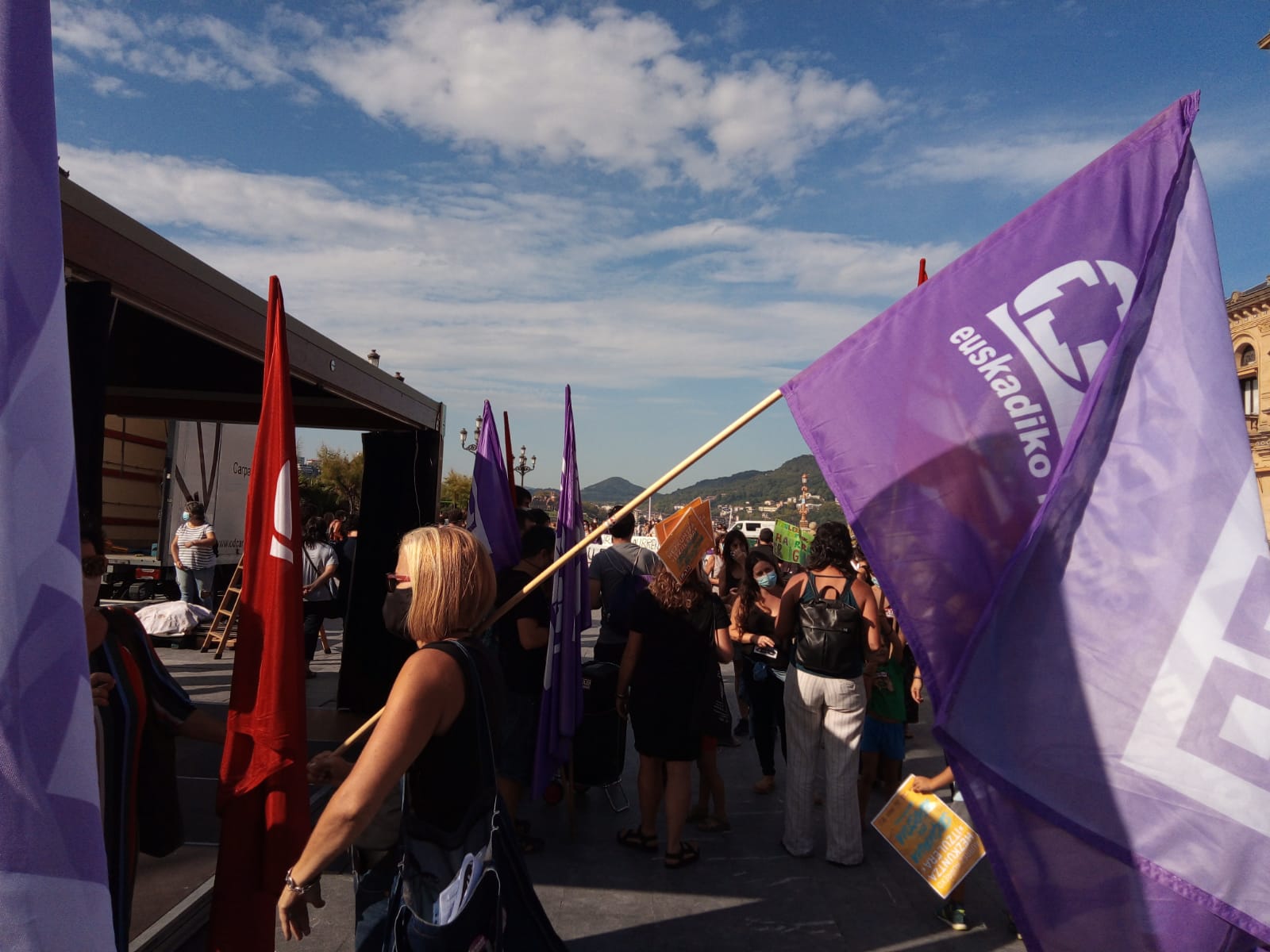 «Han hablado de contratar a mil profesores que no sabemos dónde están y de invertir 87 millones que tampoco aparecen», ha expresado poco antes de la manifestación celebrada en Donostia Nagore Iturrioz, de Steilas, quien ha añadido que en los centros educativos «no hay EPIs, hay caos».