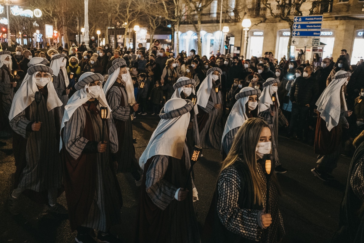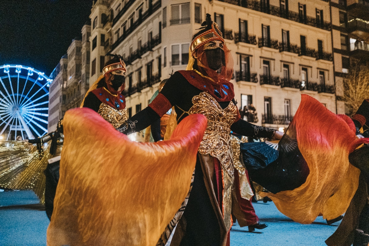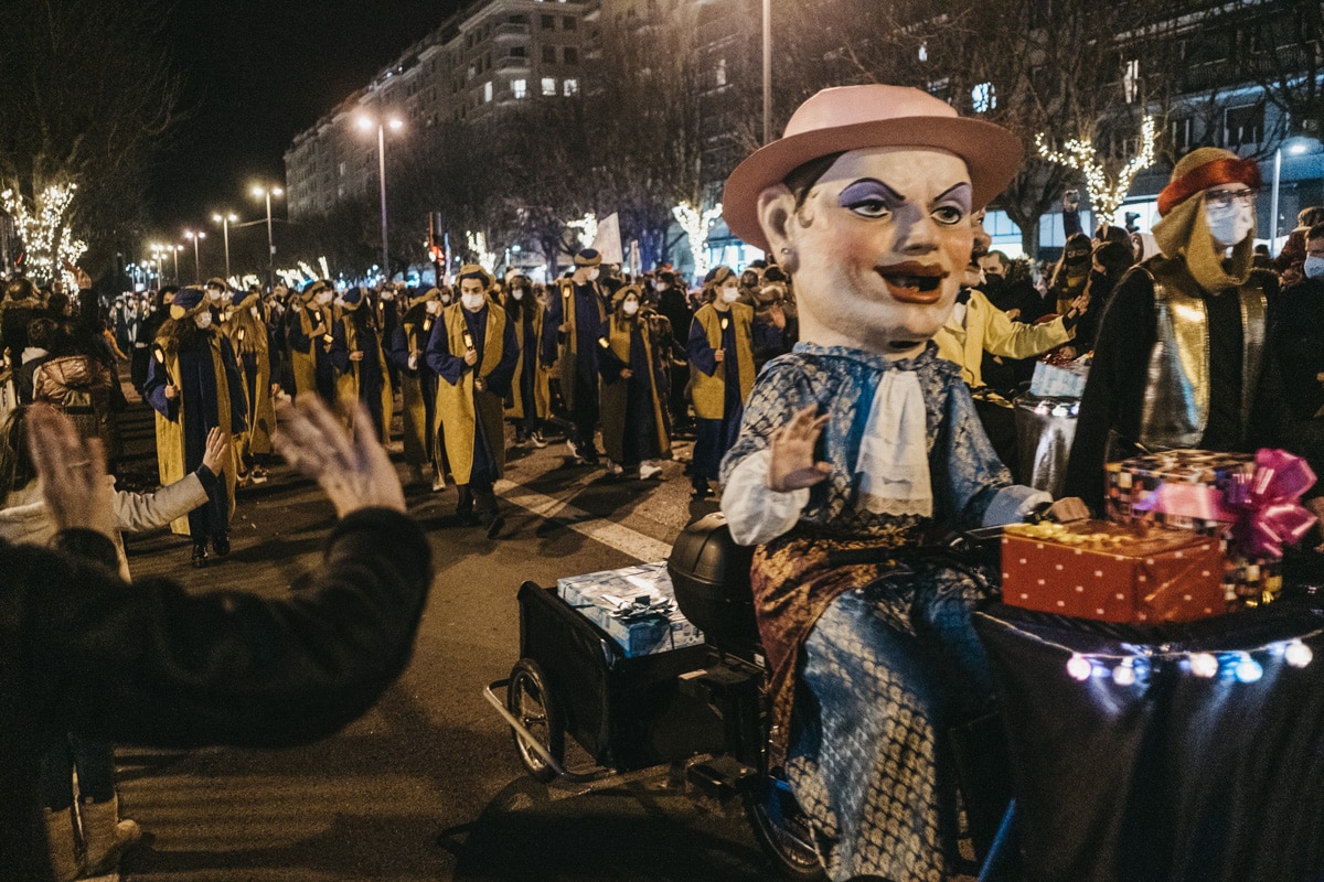 Tras una mañana ajetreada por los barrios y la recogida de las cartas, sus Majestades han encarado el desfile desde Ijentea hasta Amara Berri en una tarde gélida, la verdad, y que además contaba con un séquito más reducido que años anteriores a causa del coronavirus. Pero muy pocos donostiarras se han quedado en casa y las imágenes navideñas, las últimas de estas fiestas marcadas otra vez por el covid, se han agradecido.