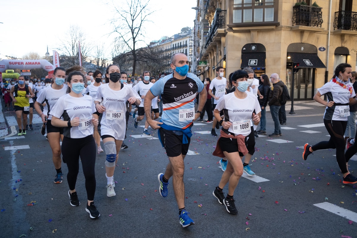 La 36ª San Silvestre de San Sebastián pasará a la posteridad por haber superado el escollo del coronavirus, que hasta el último momento hacía dudar a algunos de su celebración, y que sin embargo ha vuelto a recorrer las calles de Donostia el último día del año. Con mascarillas en el inicio, eso sí, y con salidas paulatinas por grupos. Y con menos fiesta, quizá, pero con muchas ganas. Amara Kirol Elkartea ha logrado que la carrera haya transcurrido como un reloj. Clasificación completa, aquí.