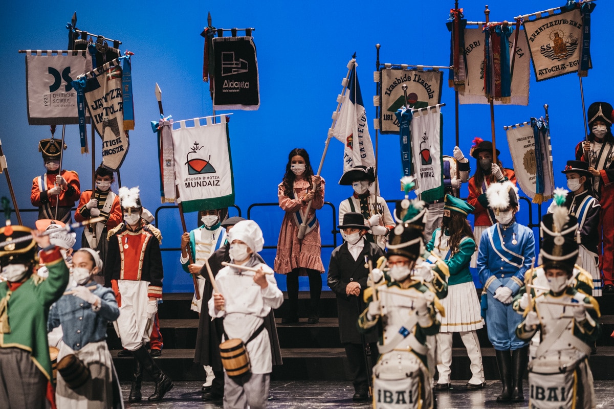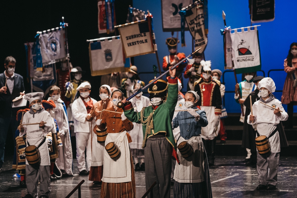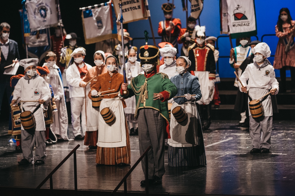 Este día 20, fiesta de San Sebastián, entre las 12 horas y las 13 y en cinco trayectos diferenciados tomarán las calles casi 3.000 pequeños donostiarras de 26 centros. Será una Tamborrada infantil distinta, discreta, ordenada e ‘higiénica’ a causa de la covid. Pero seguro que los escolares disfrutan de esa jornada como han disfrutado hoy los que han tenido la suerte de representar a sus colegios en el Teatro Victoria Eugenia.