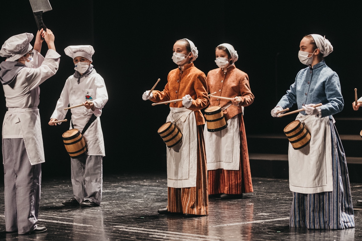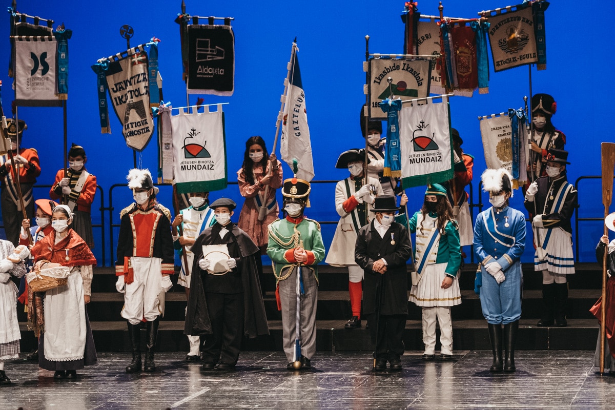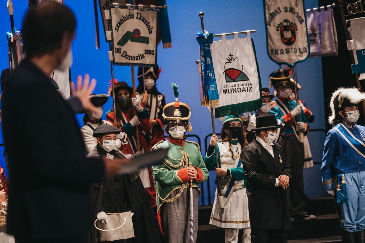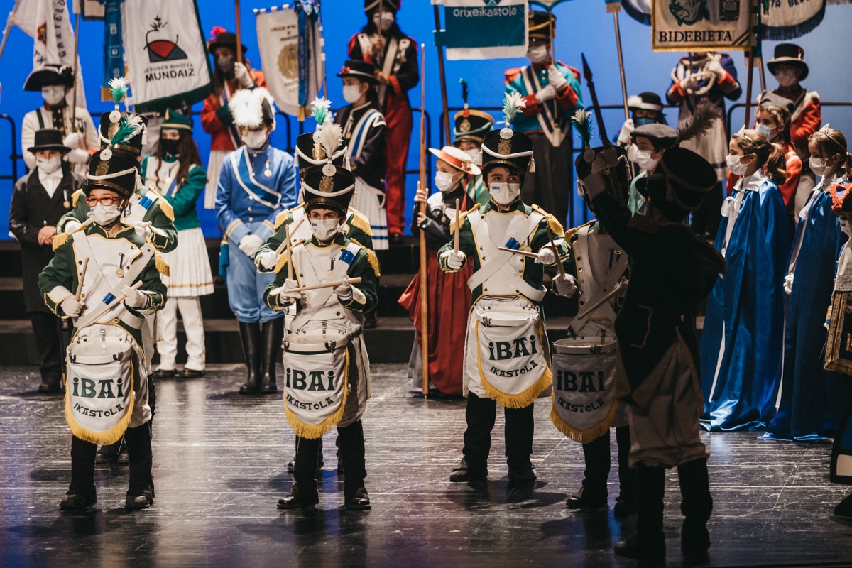 Este día 20, fiesta de San Sebastián, entre las 12 horas y las 13 y en cinco trayectos diferenciados tomarán las calles casi 3.000 pequeños donostiarras de 26 centros. Será una Tamborrada infantil distinta, discreta, ordenada e ‘higiénica’ a causa de la covid. Pero seguro que los escolares disfrutan de esa jornada como han disfrutado hoy los que han tenido la suerte de representar a sus colegios en el Teatro Victoria Eugenia.