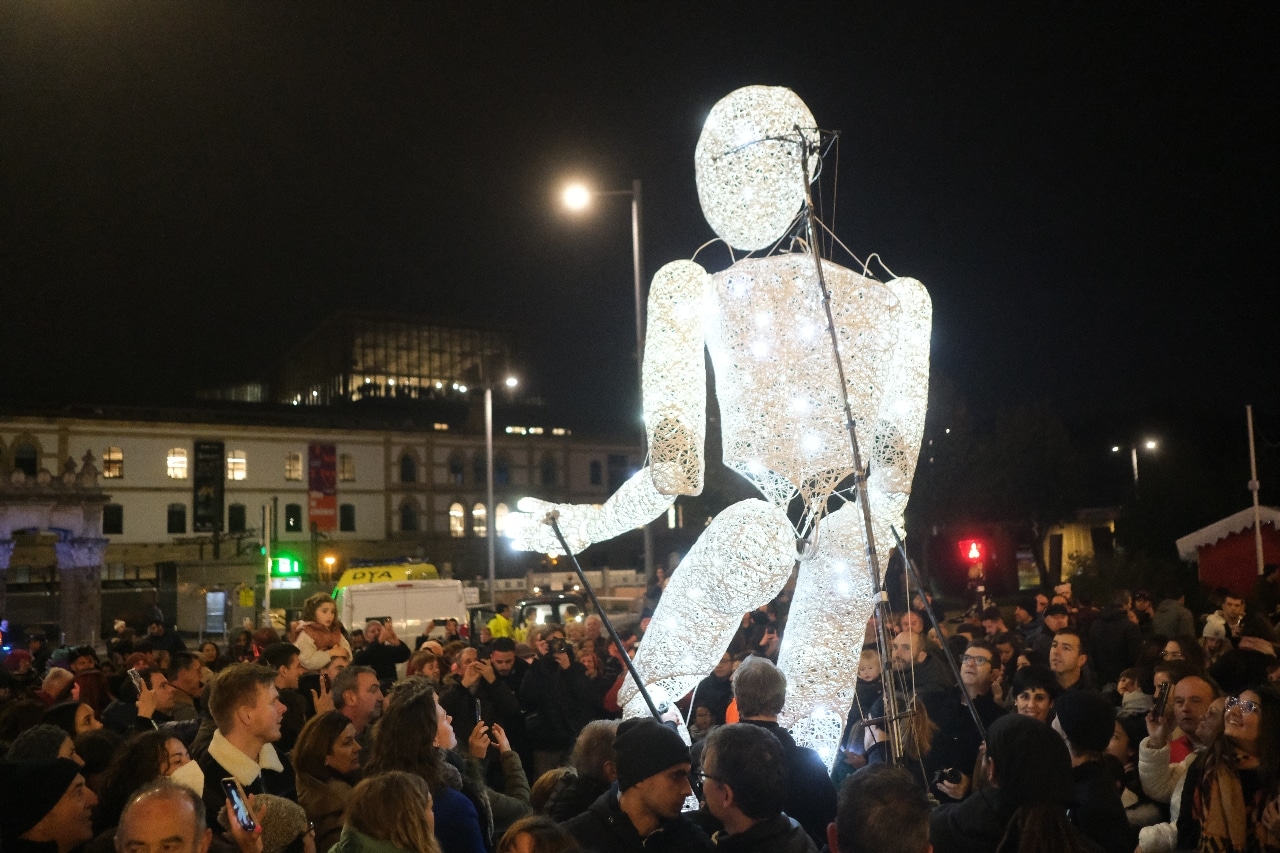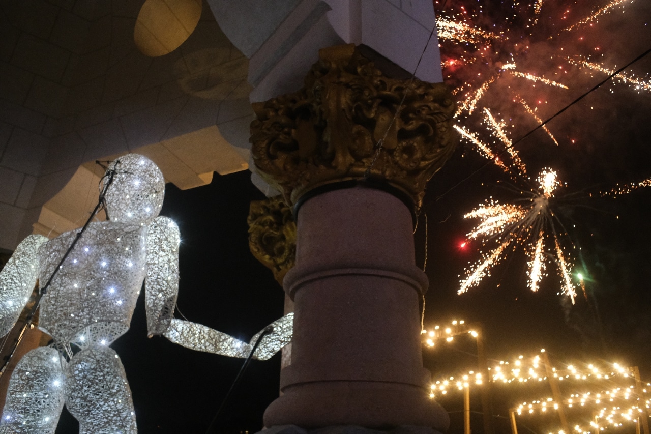 Luces láser con banda sonora y los ejercicios del gigante Dundu con una pelota han despertado la admiración de los presentes, que han despedido con aplausos la colección de fuegos artificiales. A continuación ha comenzado a funcionar el Mercado de Navidad.