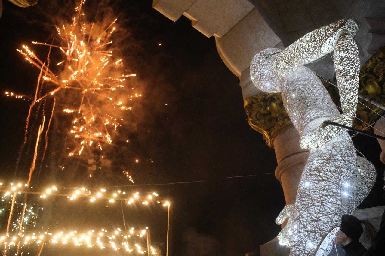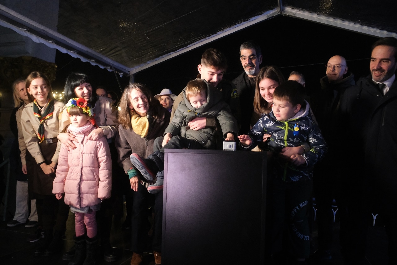 El encendido oficial de las luces navideñas ha corrido a cargo de dos niños ucranianos, refugiados en San Sebastián, quienes han pulsado el botón que ha activado el espectáculo pirotécnico.