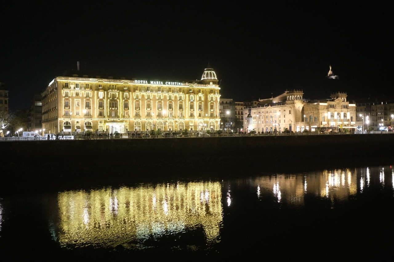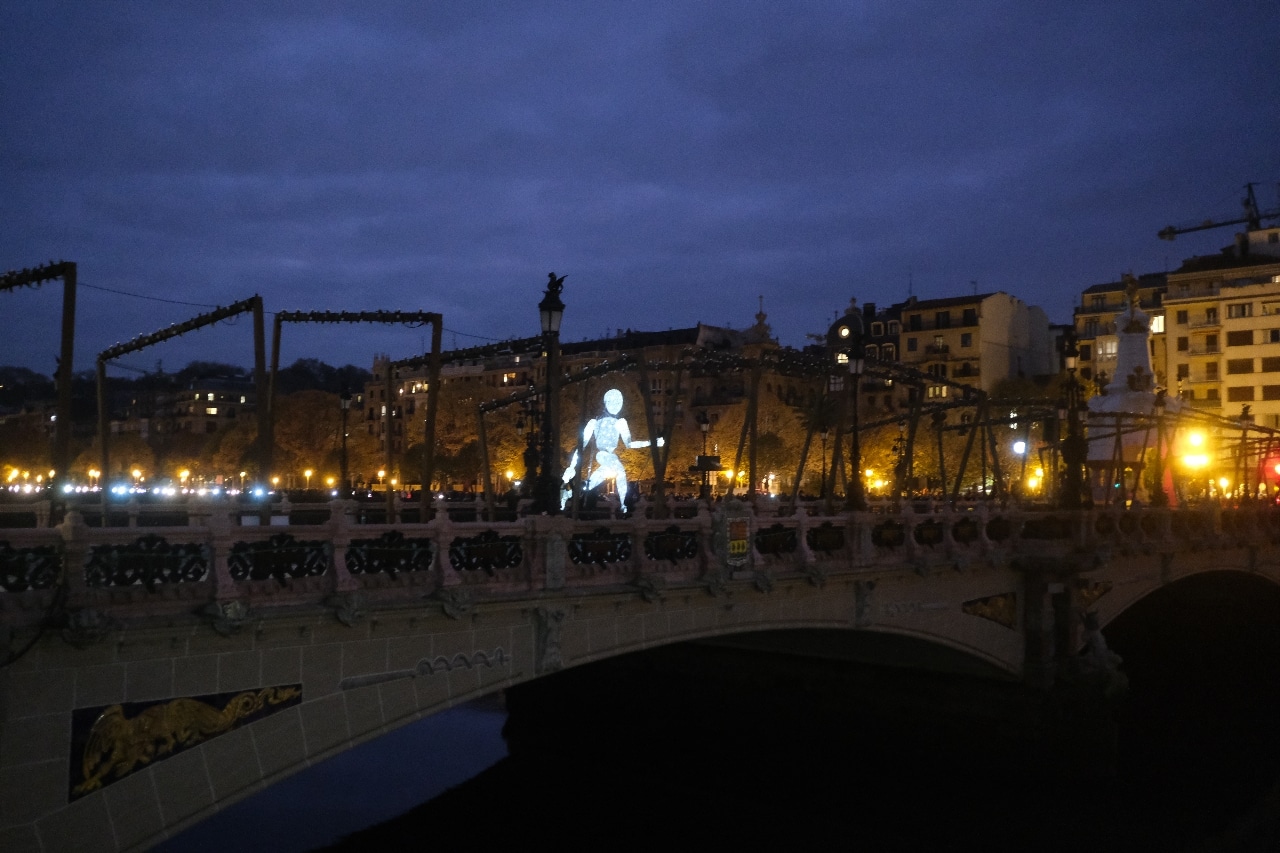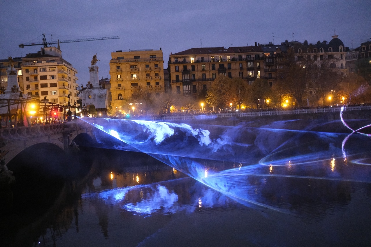 Miles de personas se han apostado en las cercanías del puente María Cristina, a ambos lados del río, para ver el espectáculo de luz y sonido que ha dado el pistoletazo de salida a las Navidades donostiarras.